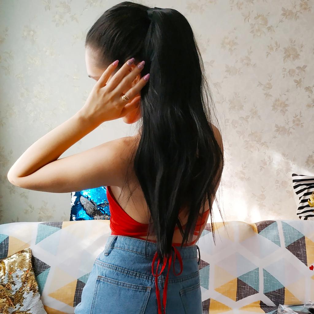XINRAN 22" Long Silky Straight Synthetic Drawstring Ponytail