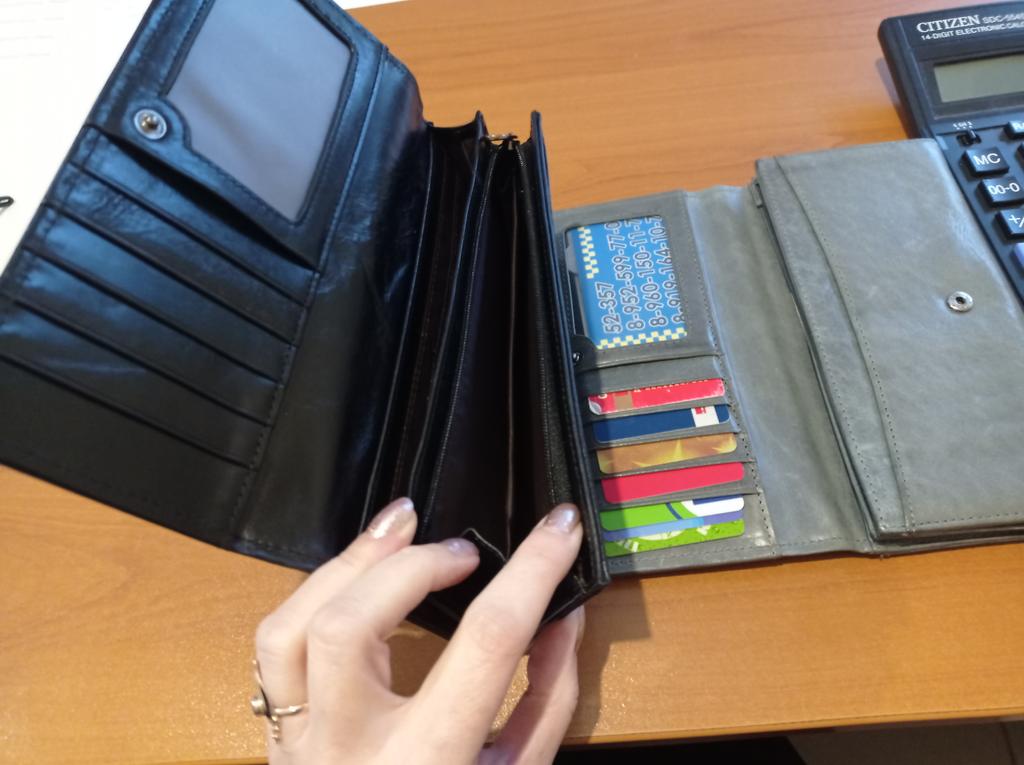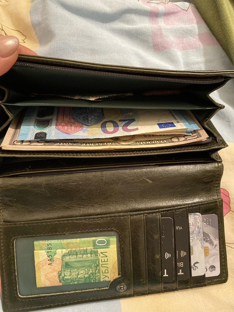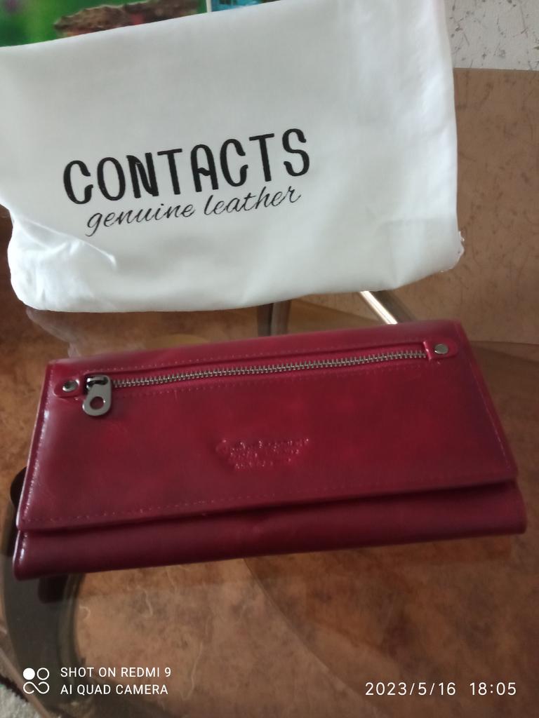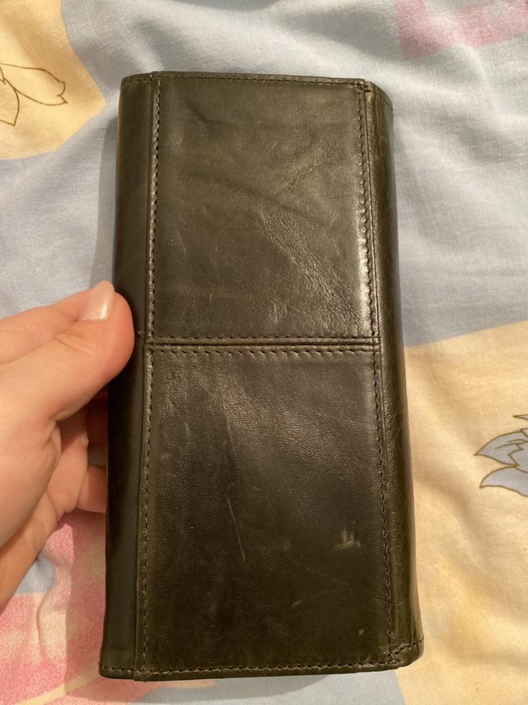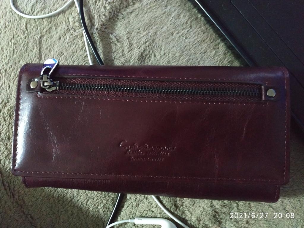 Leather wallet, but not very comfortable, as for me. The quality is excellent