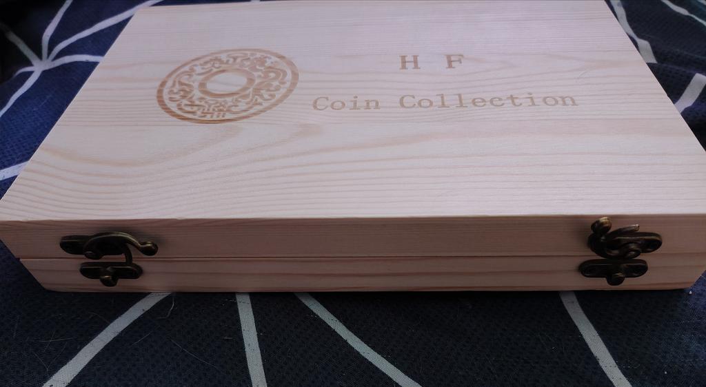 This is a kind of pine wood coins storage box, moisture-proof and can provides long service time. Vintage hardware lock, easy to open and close, exquisite gift box for commemorative coins medals collection. Polished and smooth surface, full of texture. You can have a try.