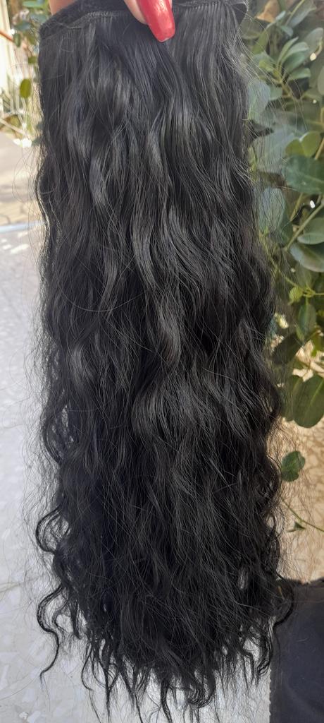 Curly Hair Extensions This ponytail is great for the price Yes it's made of synthetic but it doesn't have shiny look, even in the sun it looks natural After installation, it looks like a real hair.. And this is very easy to wear and it's easy to get off In this extension you will not need any other hand help that you can put it yourself In this, from where the ponytail starts, there is a fabric drawstring Which you can fully wrap up in your real ponytail and make a knot in it And add some bobby pin and it will become secure on it. And also it has flannel and clip, so when you wrap fabric drawstring in your hair that time flannel weft wrap make extension more secure and four comb clip make extension more sturdy. Seller has 3 colors for choice and i chose 1B According to the shipping it's came in 15days after the order.