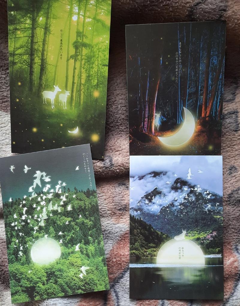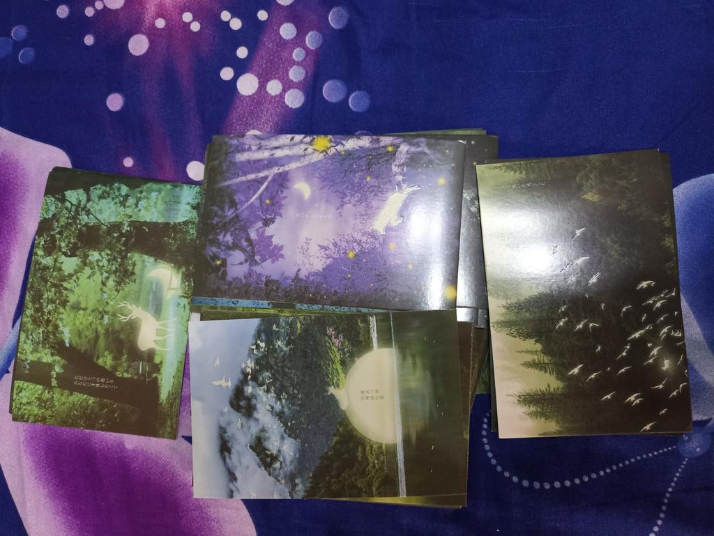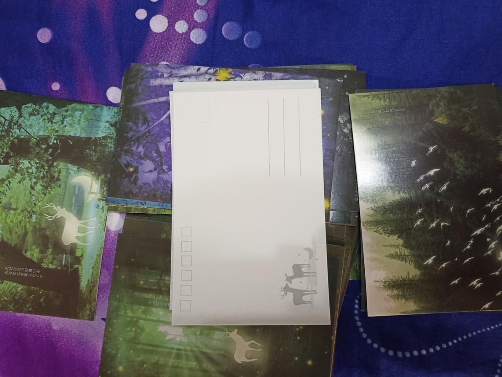 The postcards arrived in Ukraine in three weeks. The truth of the description does not quite match. Instead of the declared 10x15, it is actually 9'3x14.3 cm. Everything else is fine, 30 pieces, glow in the dark.