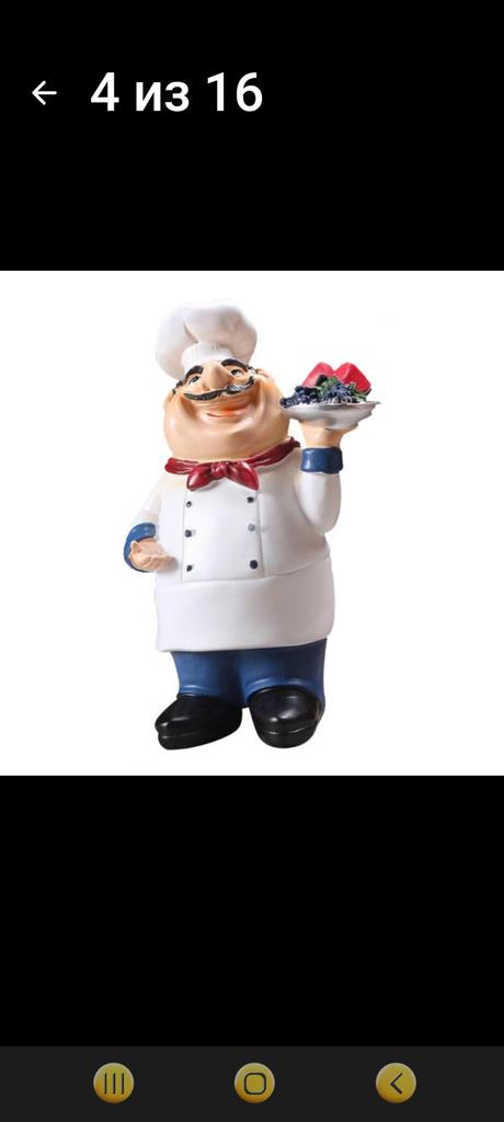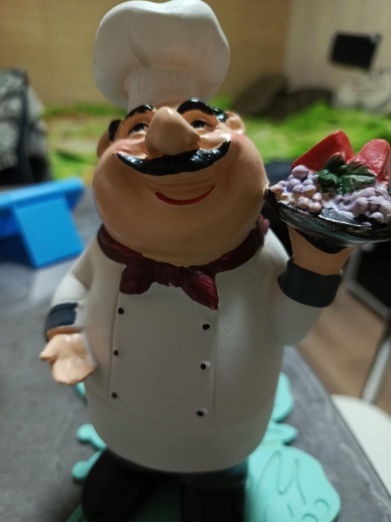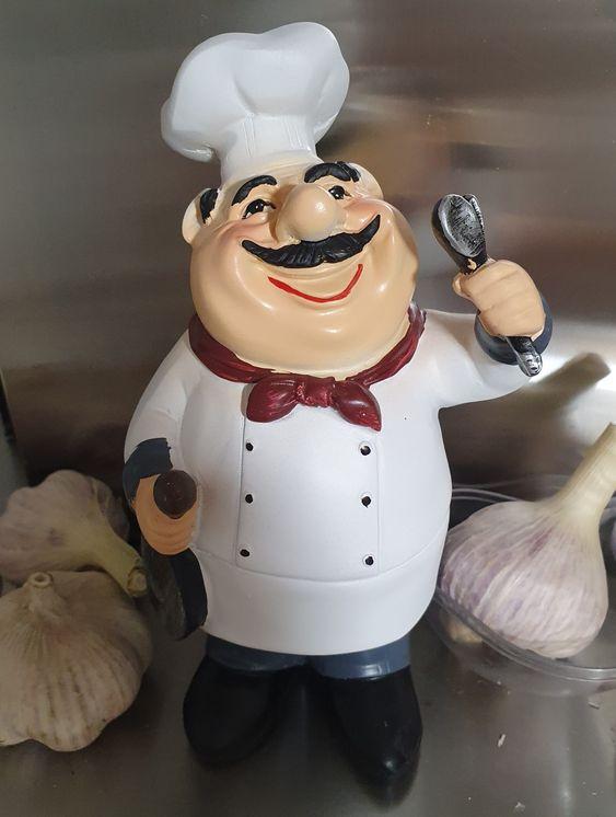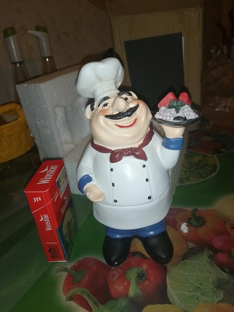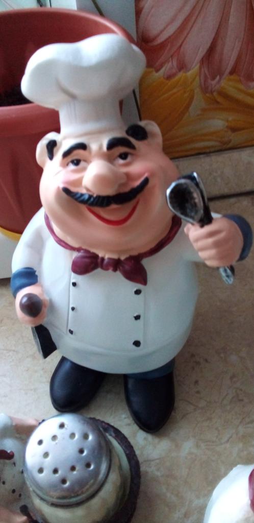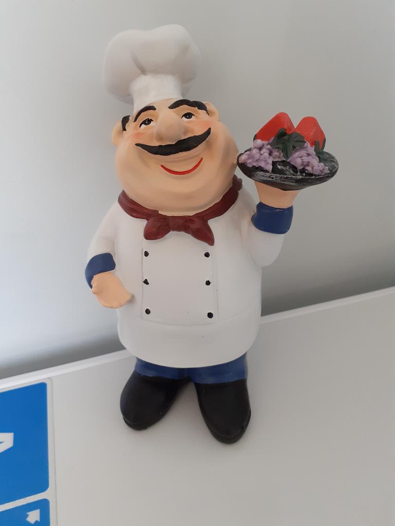 I am very pleased with this adorable Chef! It is the very Chef I was looking for as decor in my kitchen. It looks perfect and keeps me company while I am cooking. Thank you, Joom.