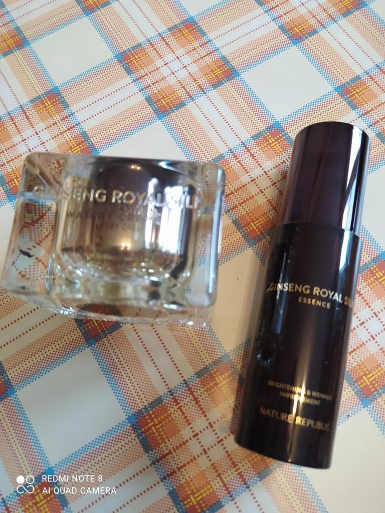 Water, Caprylic/Capric Triglyceride, C12-20 Acid PEG-8 Esters, Glycerin, Niacinamide, Pentylene Glycol, Red Ginseng Extract, Royal Jelly Extract, Hydrolyzed Red Ginseng Saponin, Silk Amino Acids, PEG-8, Polysorbate 60, Hydroxyethyl Acrylate/Sodium Acryloyldimethyl Taurate Copolymer, 1,2-Hexanediol, Hydrogenated Lecithin, Silica, Dimethicone, Butylene Glycol, Caprylyl Glycol, Propanediol, Dimethicone/Vinyl Dimethicone Crosspolymer, Tromethamine, Tocopheryl Acetate, Ethylhexylglycerin, Adenosine, Sorbitan Isostearate, Cyclohexasiloxane, Glyceryl Acrylate/Acrylic Acid Copolymer, Biosaccharide Gum-1, Ethylhexanediol, Dipropylene Glycol, Polyglyceryl-10 Laurate, Phosphatidylcholine, Tocopherol, Carbomer, Xanthan Gum, Disodium EDTA, Tin Oxide (CI 77861), Fragrance, Hexyl Cinnamal, Linalool, Benzyl Benzoate, Alpha-Isomethyl Ionone, Limonene, Mica (CI 77019), Titanium Dioxide (CI 77891), Gold (CI 77480), Yellow 5 Lake (CI 15985), Yellow 4 Lake (CI 19140)