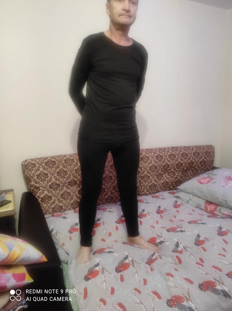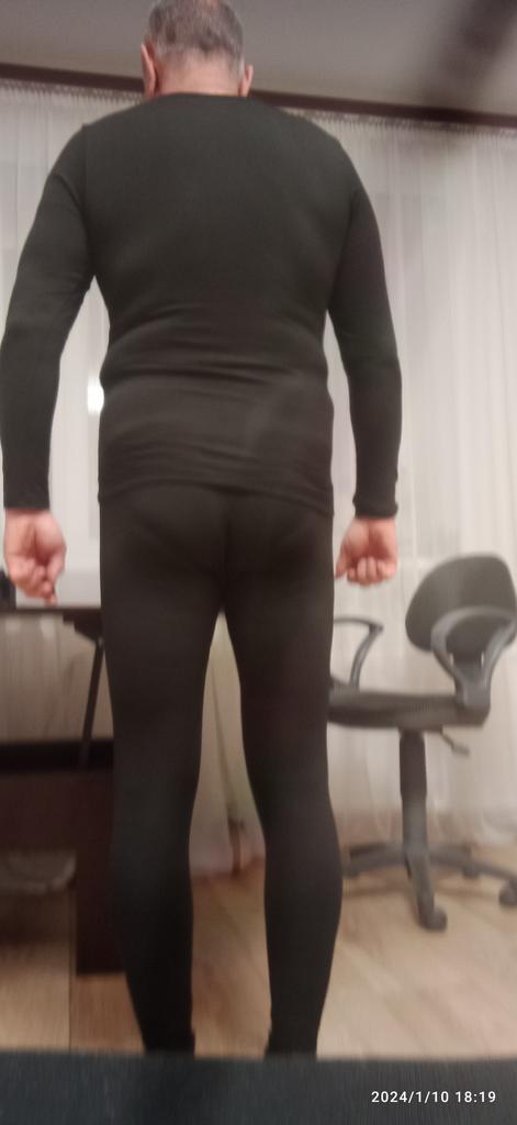 I don't know yet if the size is suitable for a man. His height is 175. I ordered two - for myself and my husband. Two XL sizes came together. For my height 170 (hips 98, waist 75, chest 88), the pants are a little short - you can see in the photo. The men's has a fly. The fabric is quite thin, stretches well, at first glance not for winter. In damp weather, it even steams under a sweater. How do I wear it in winter - let's add to the review. Thanks, Joom!
