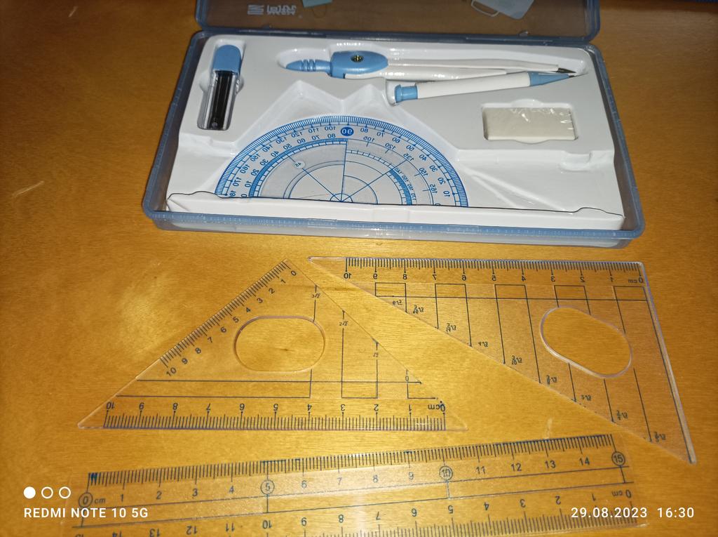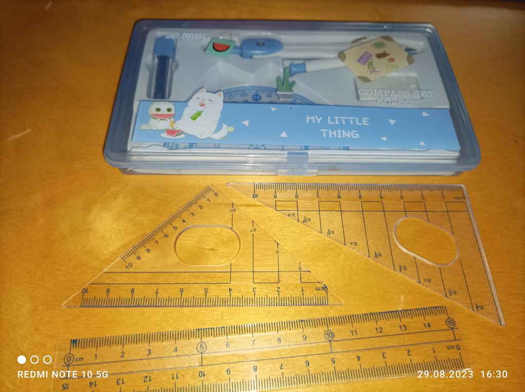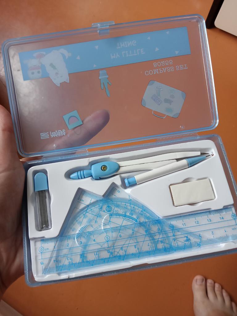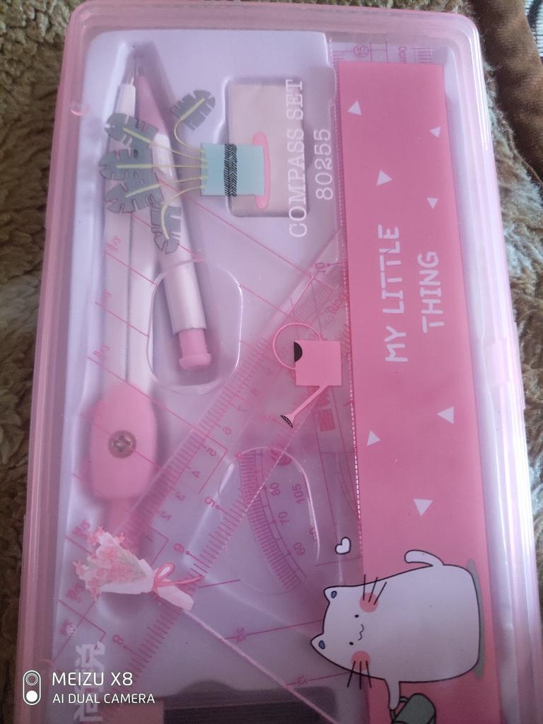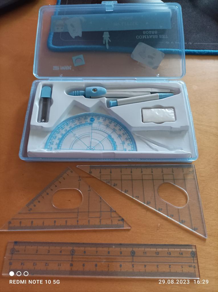 🛍️Set of drawing tools🛍️ ✨The set is very beautiful! They are in a special way and I really liked them! ✨The set includes a ruler, 2 triangular rulers, an eraser, one navigator, a compass, and interchangeable tips. You can also bring them as a gift. ✨Suitable for school, made of PP material ✨I really liked the style of the drawing tool because it is very beautiful! ✨The kit came to me in protected delivery.