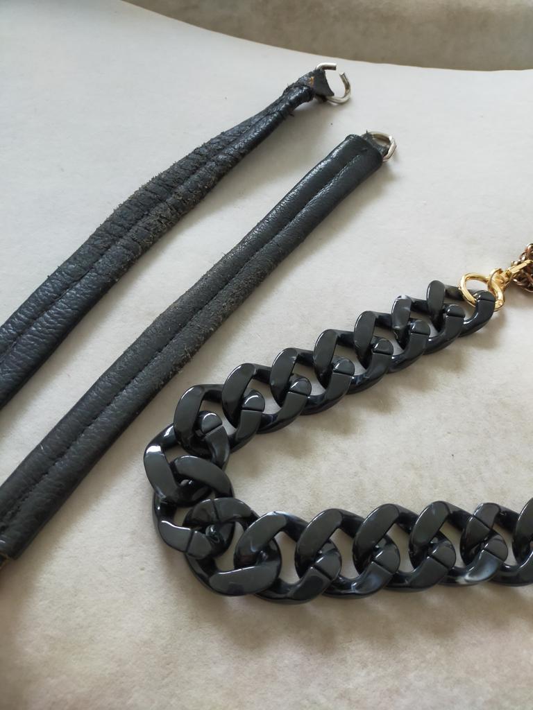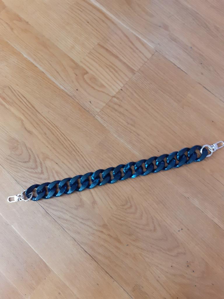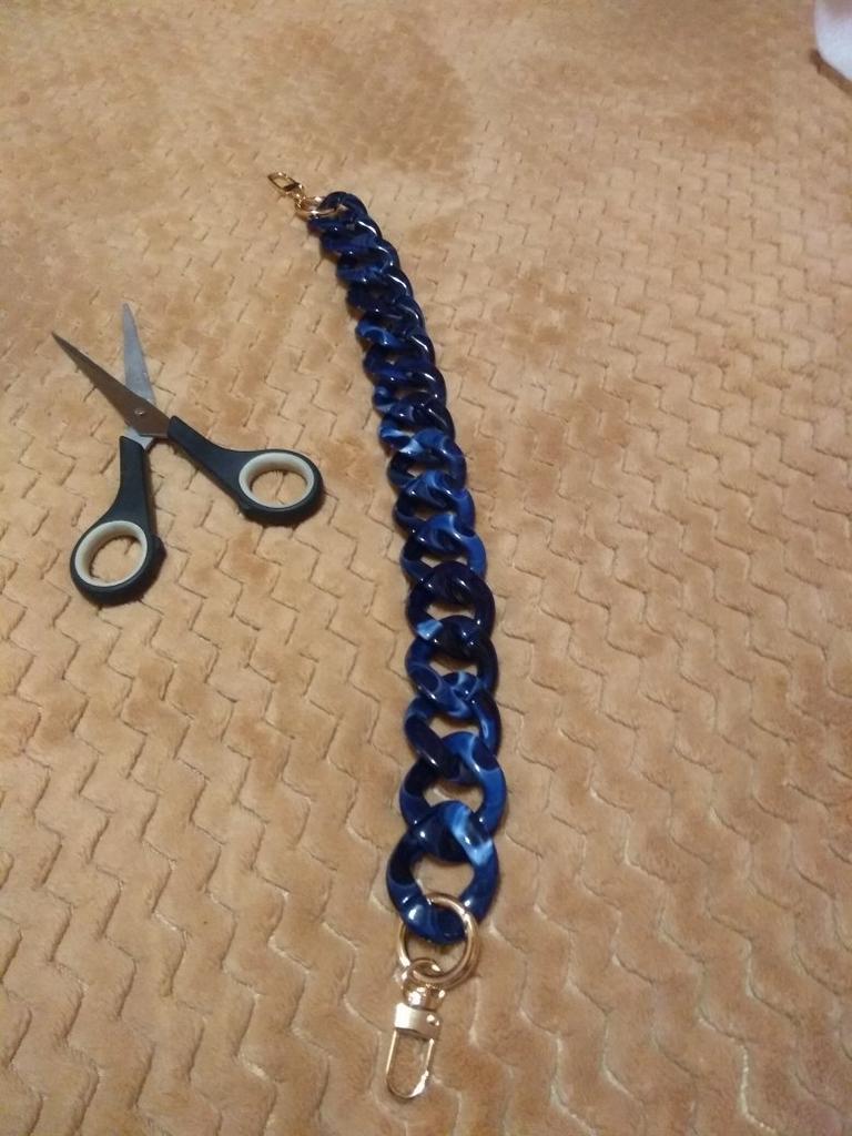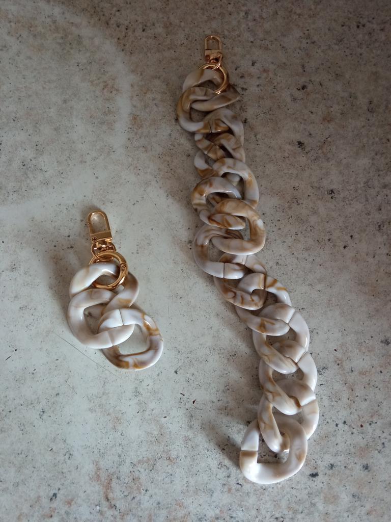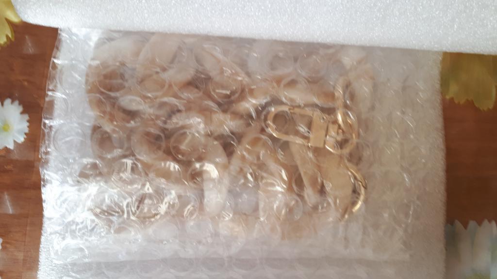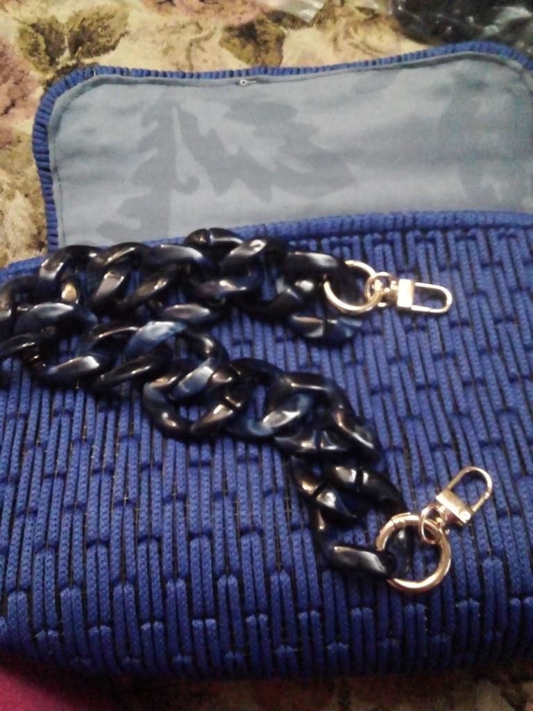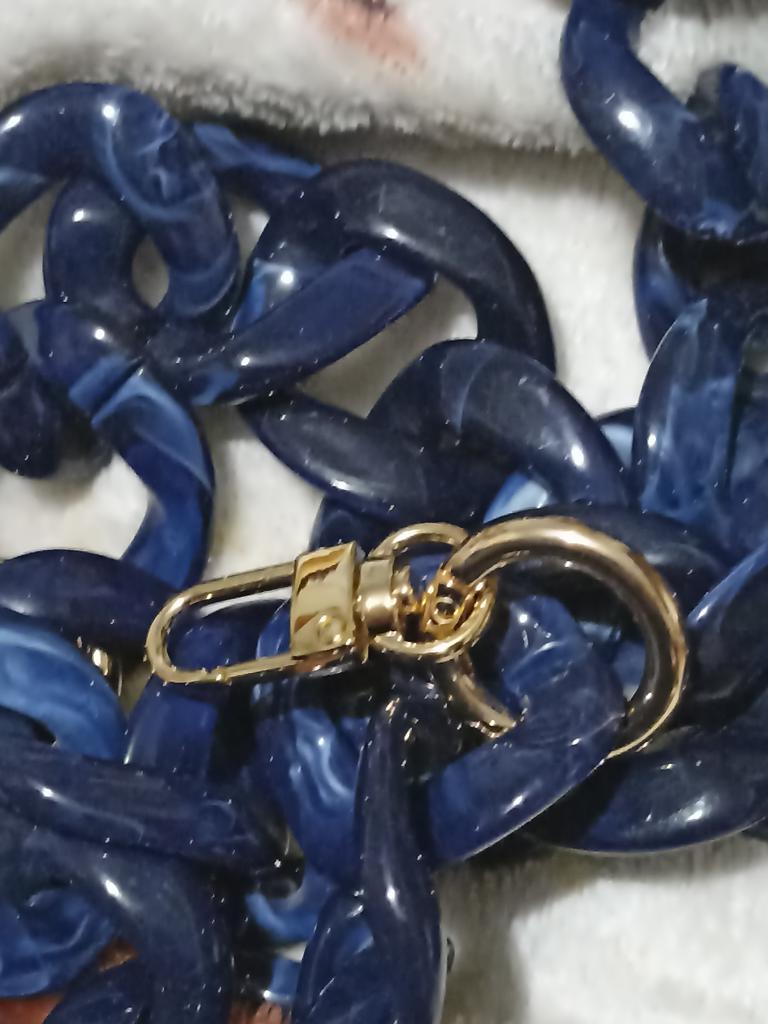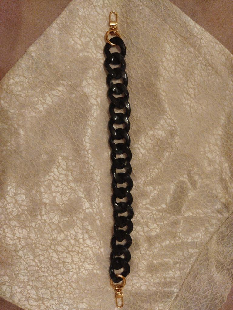 Received a replacement bag chain. The chain is acrylic, beautiful, but the pink color is more like beige. Didn't fit for me. I recommend you are lucky.