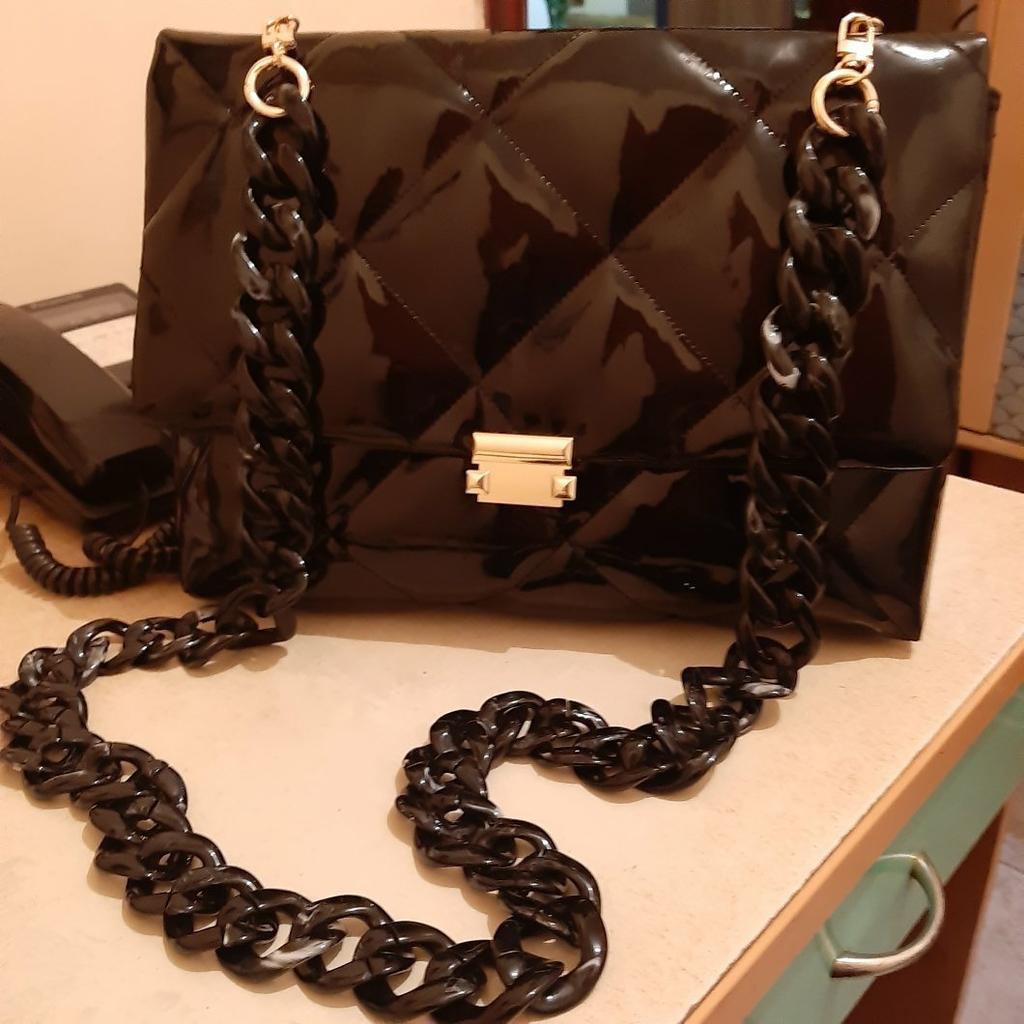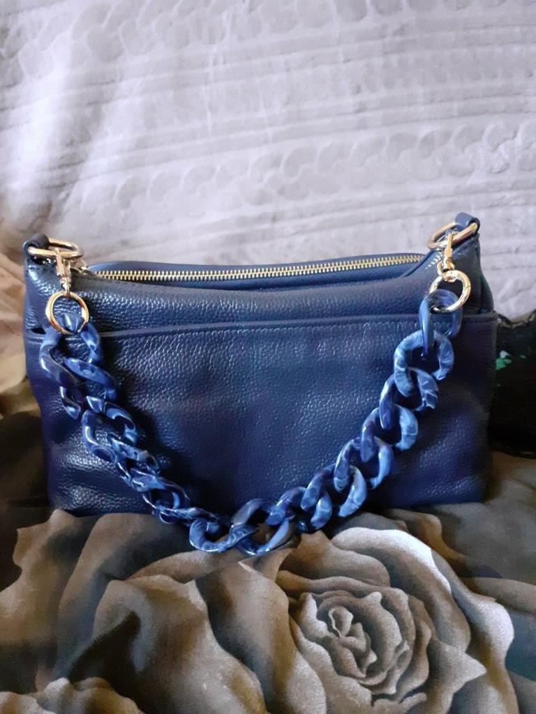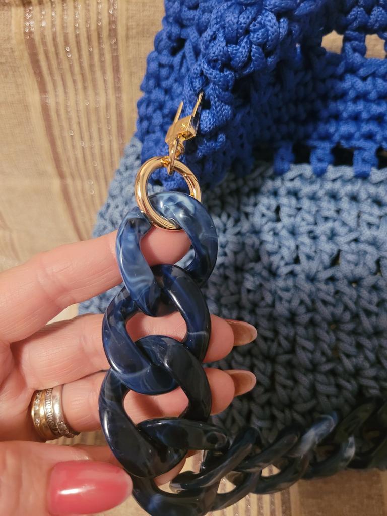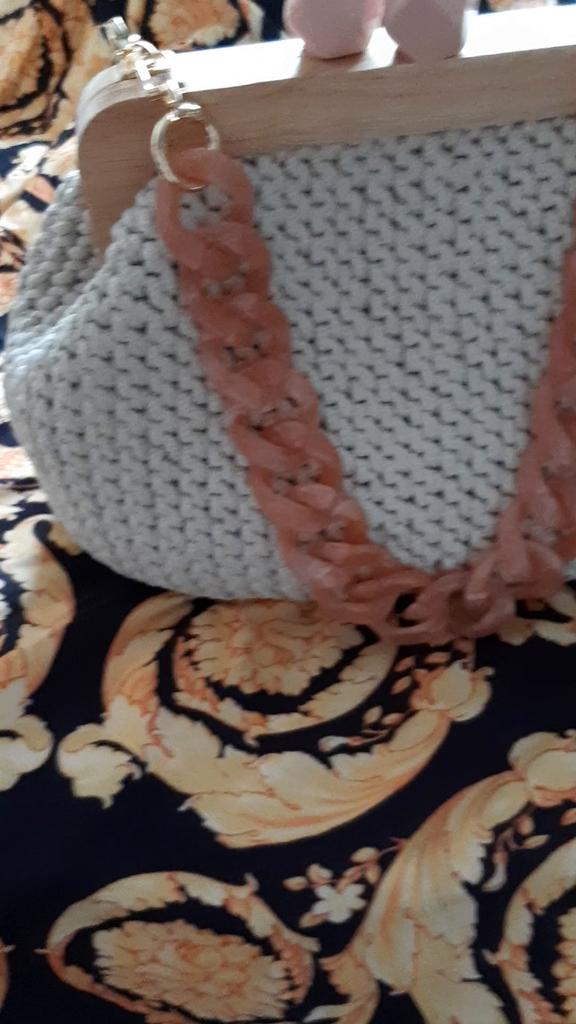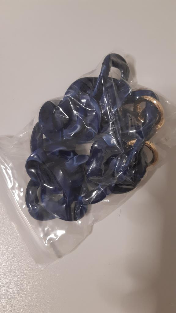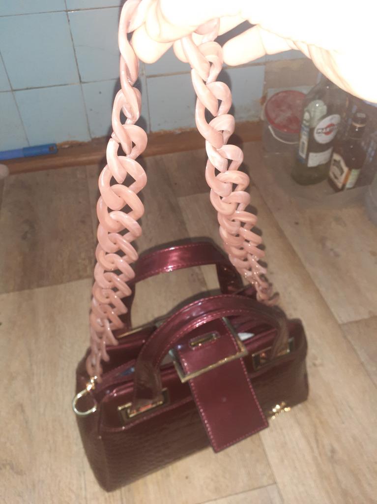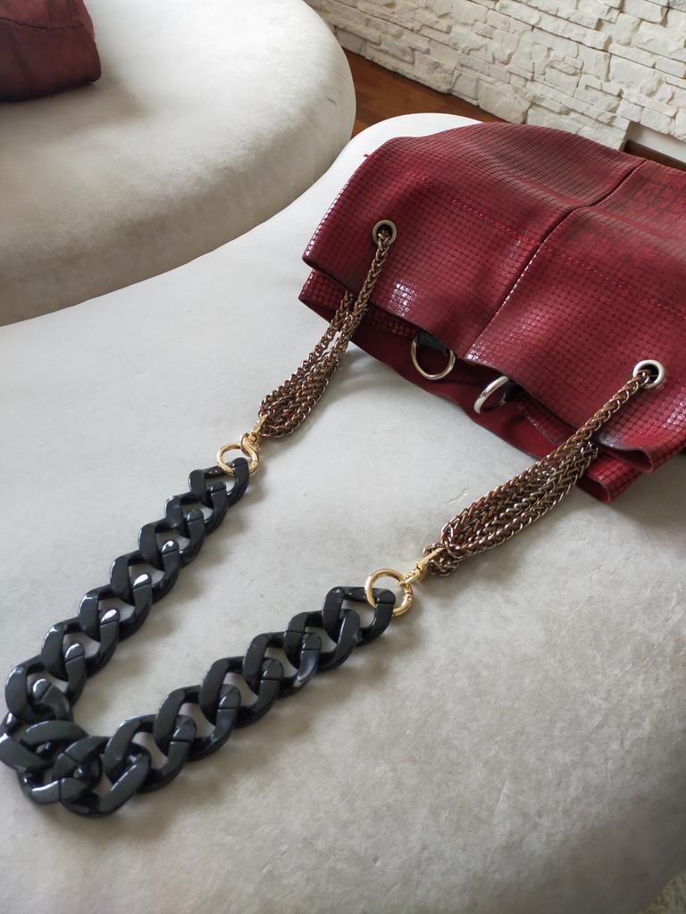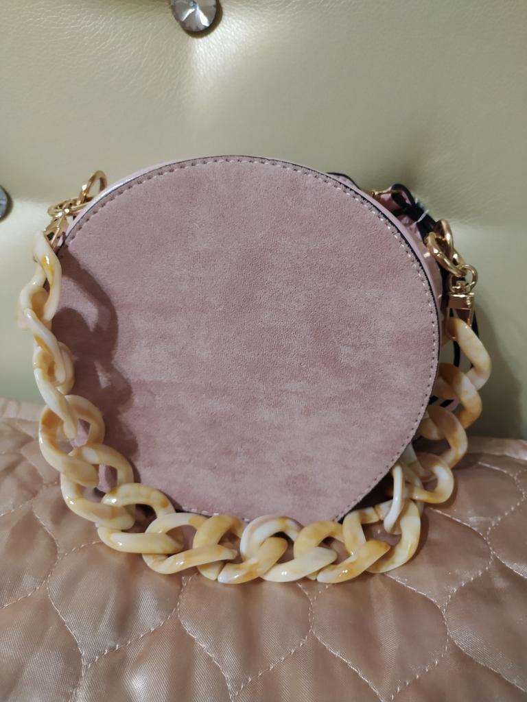 Received a replacement bag chain. The chain is acrylic, beautiful, but the pink color is more like beige. Didn't fit for me. I recommend you are lucky.