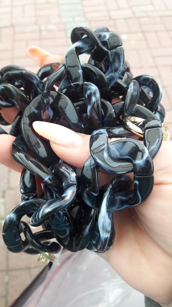 Very big chain! Plastic .... I donβt understand what bag I can fasten on ... As for cows .....