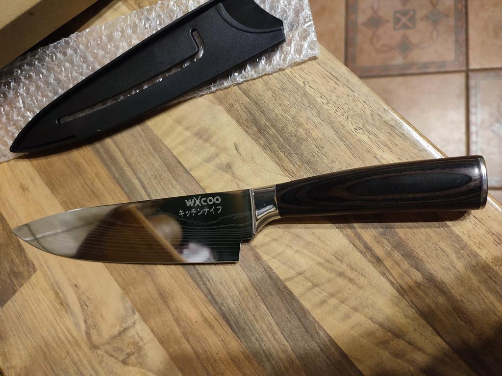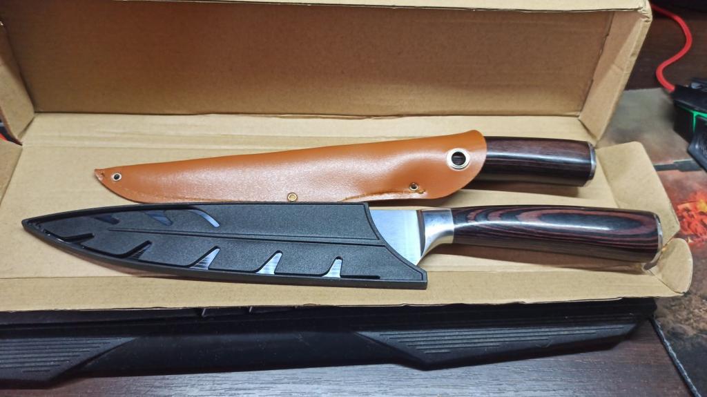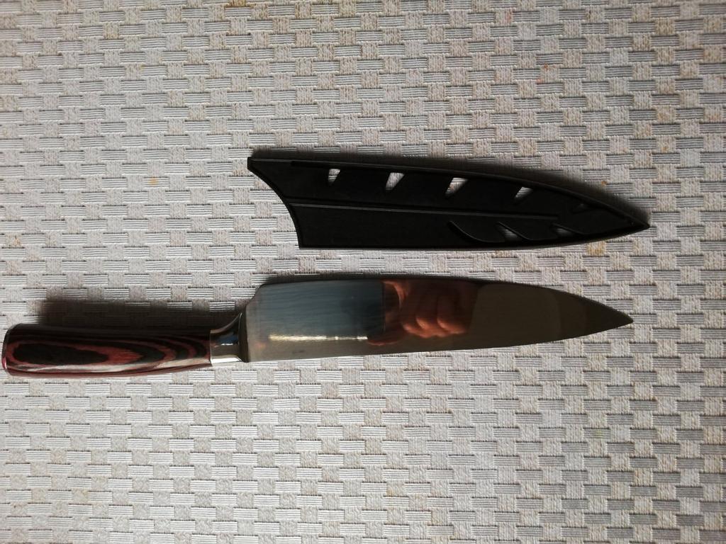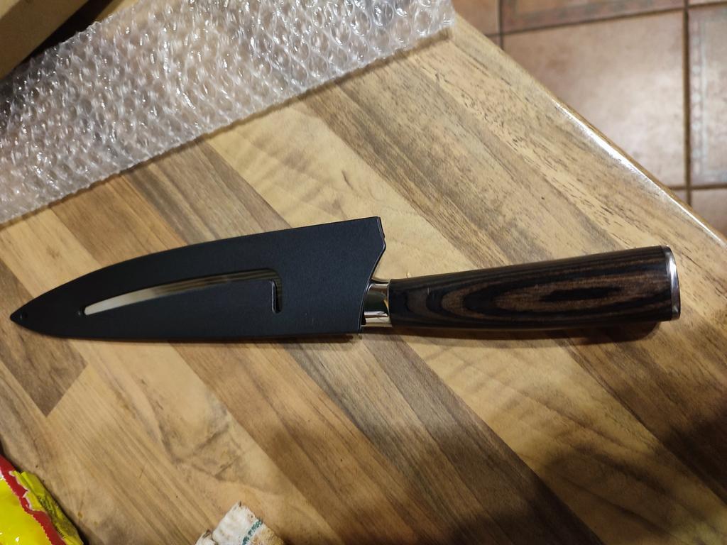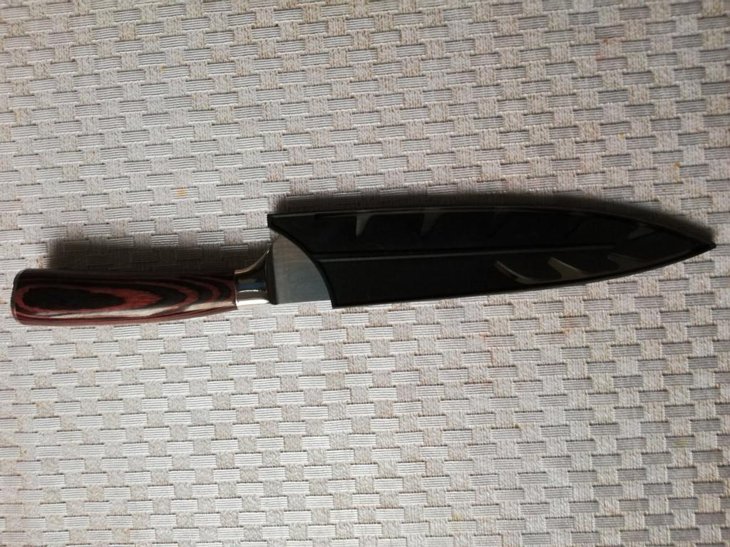 I liked the knife. Ergonomic one-piece handle, sharp and visually appealing. Worth the money. I wonder how it will show itself after a year of use.