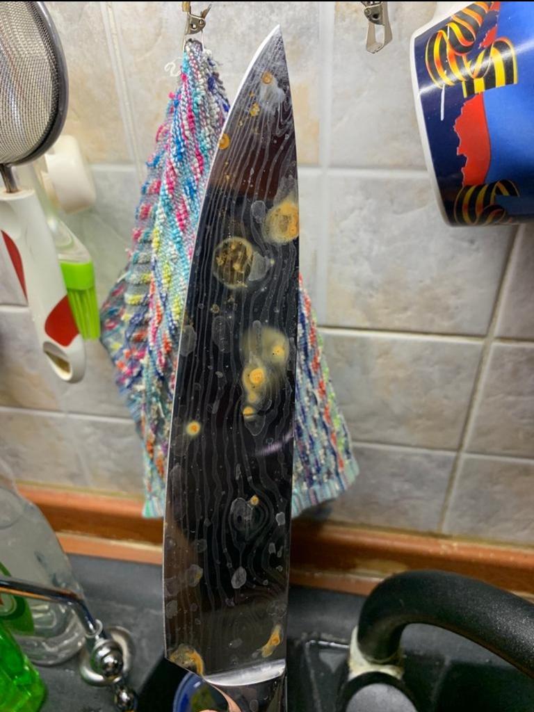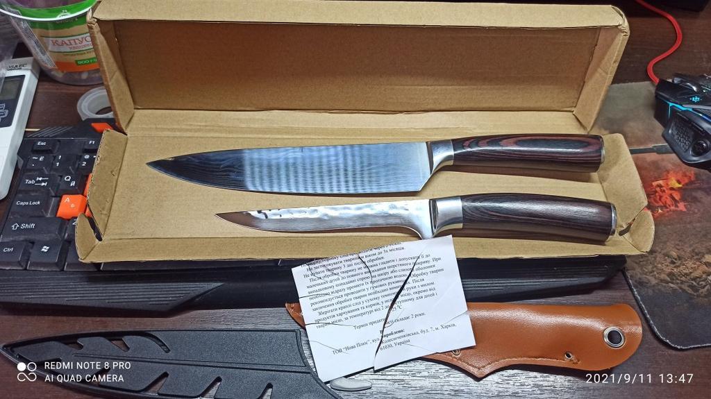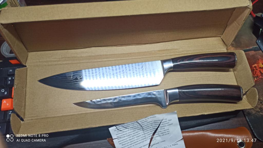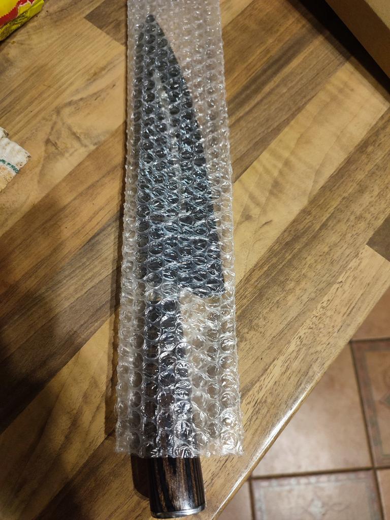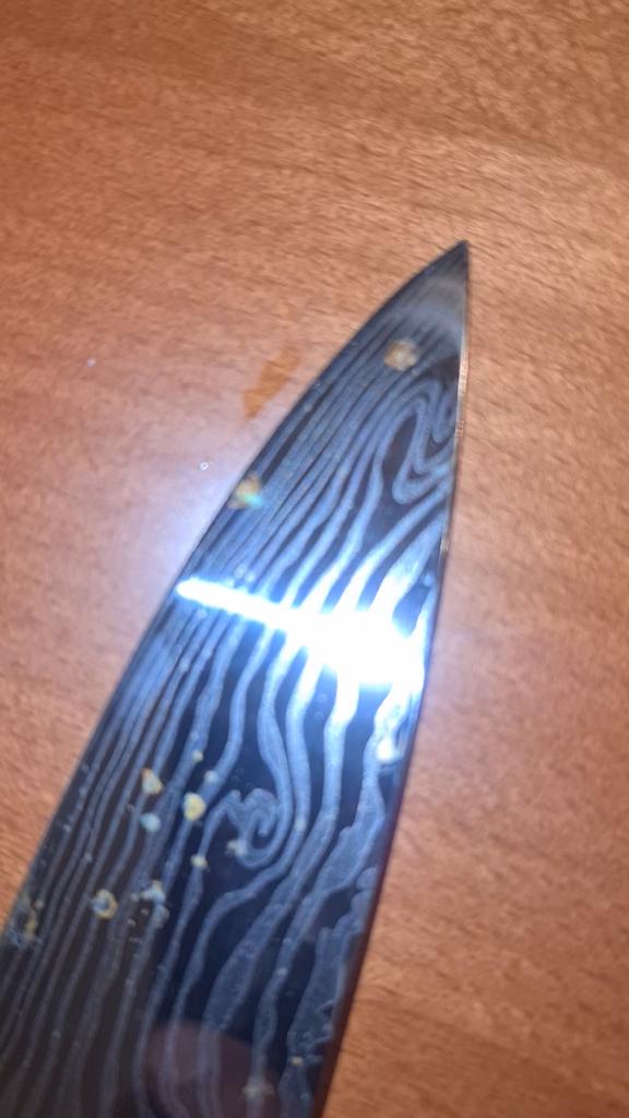 I liked the knife. Ergonomic one-piece handle, sharp and visually appealing. Worth the money. I wonder how it will show itself after a year of use.