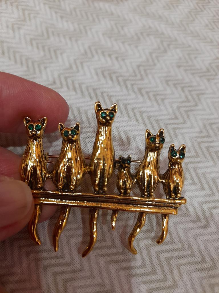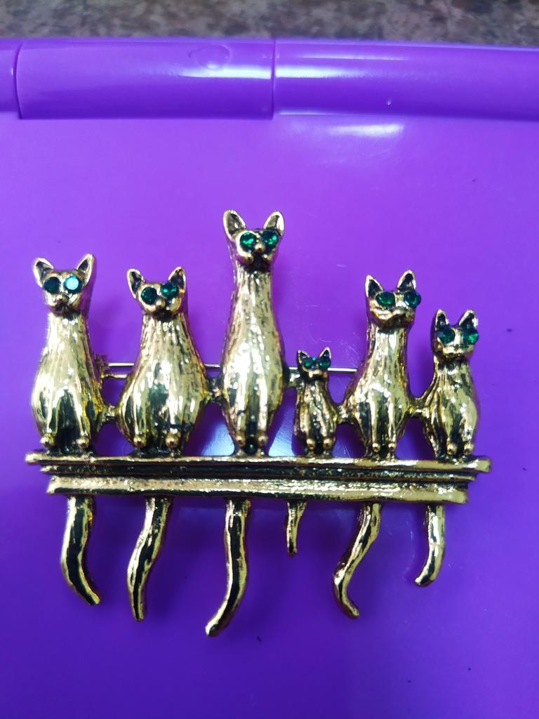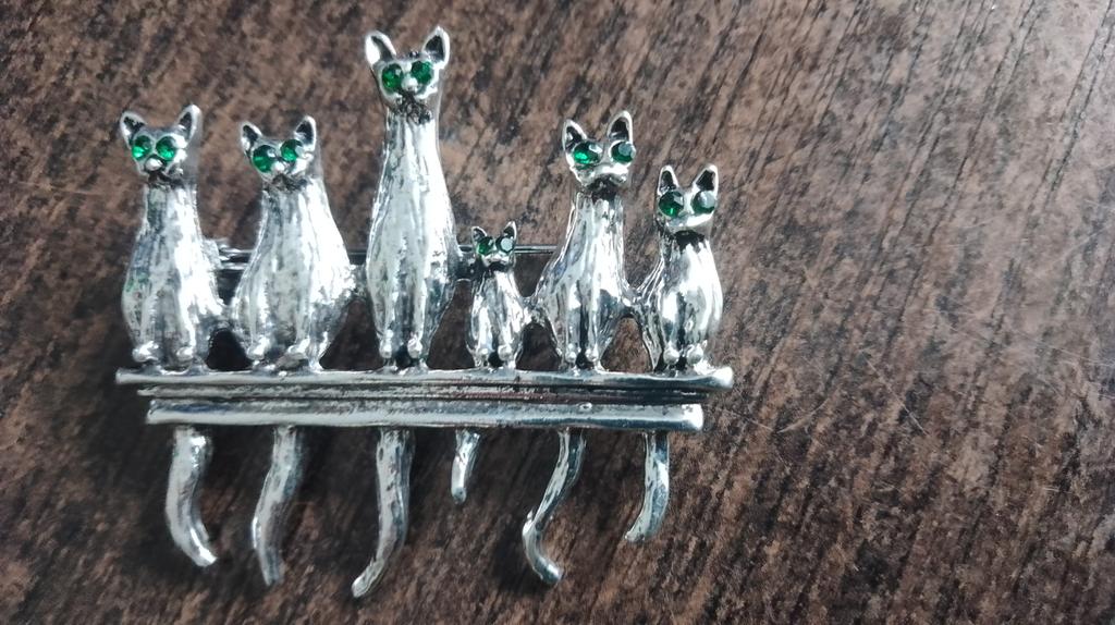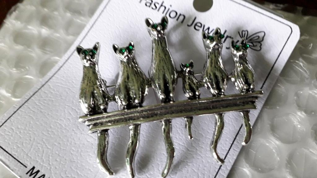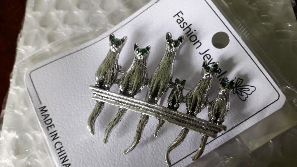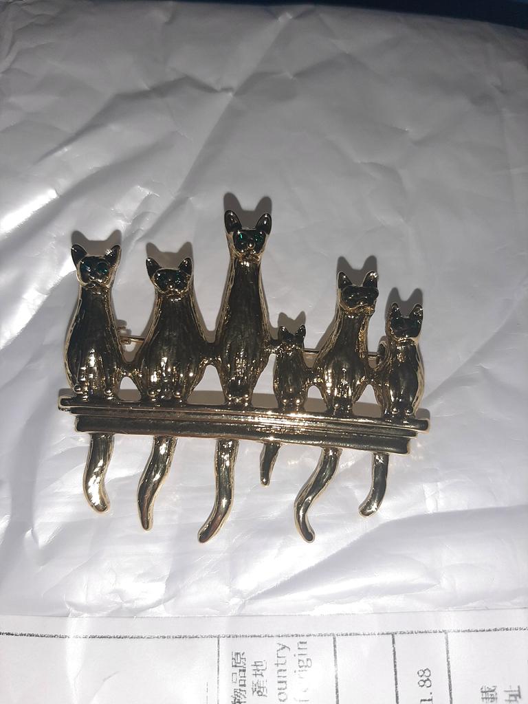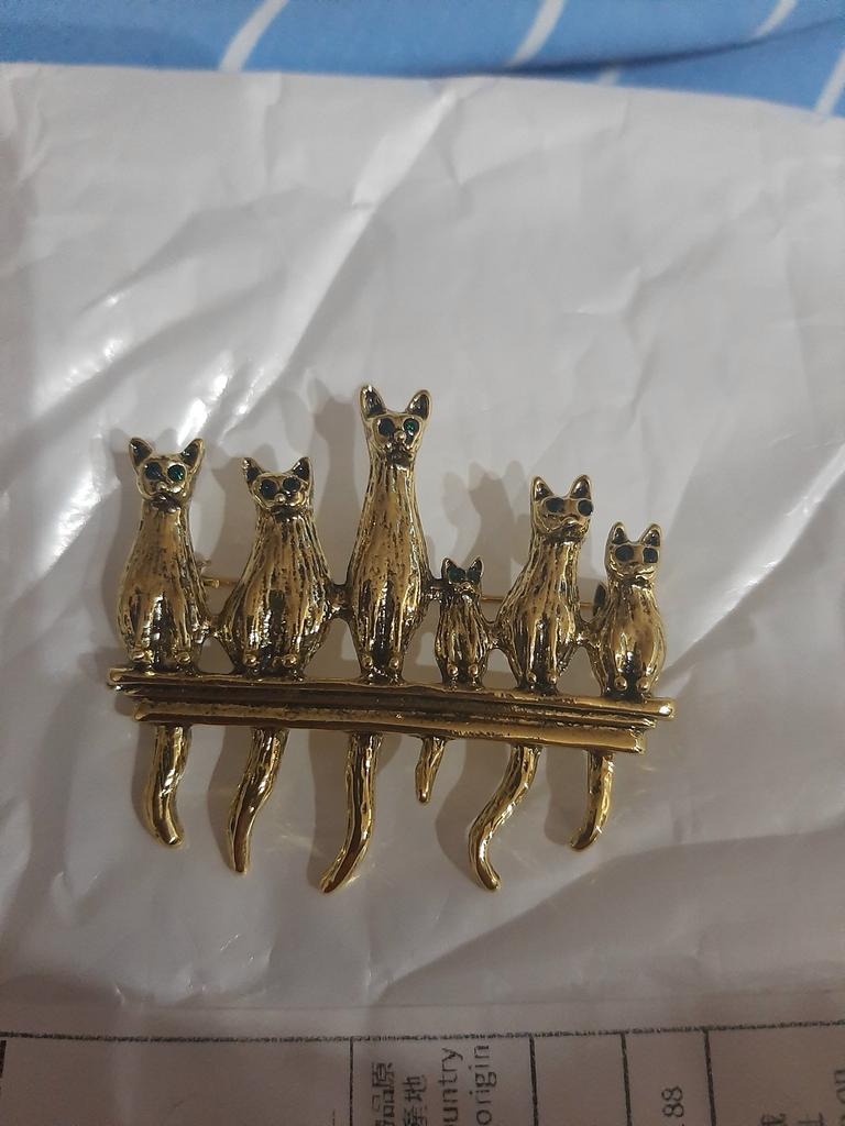 A very beautiful brooch. Satisfied The camera does not convey how beautifully the cats' green eyes sparkle. Thank you.