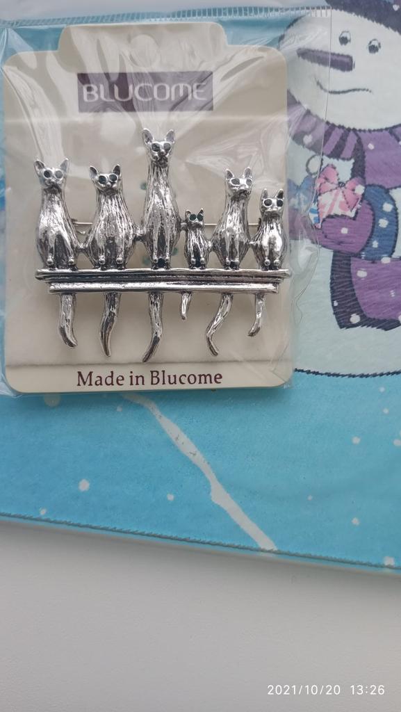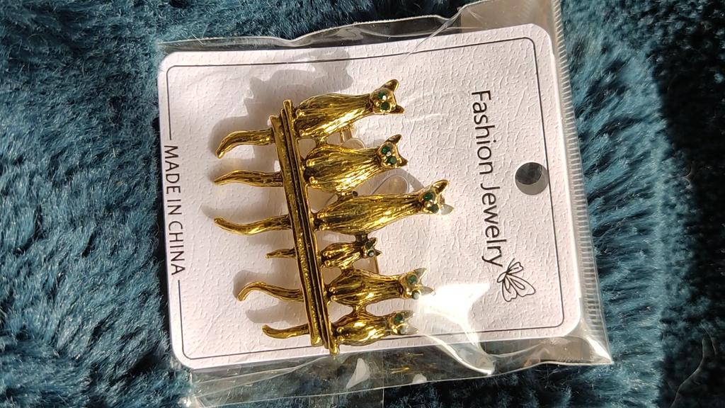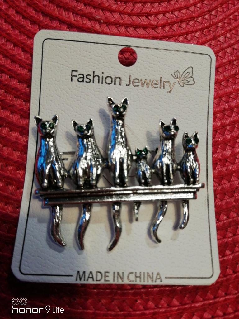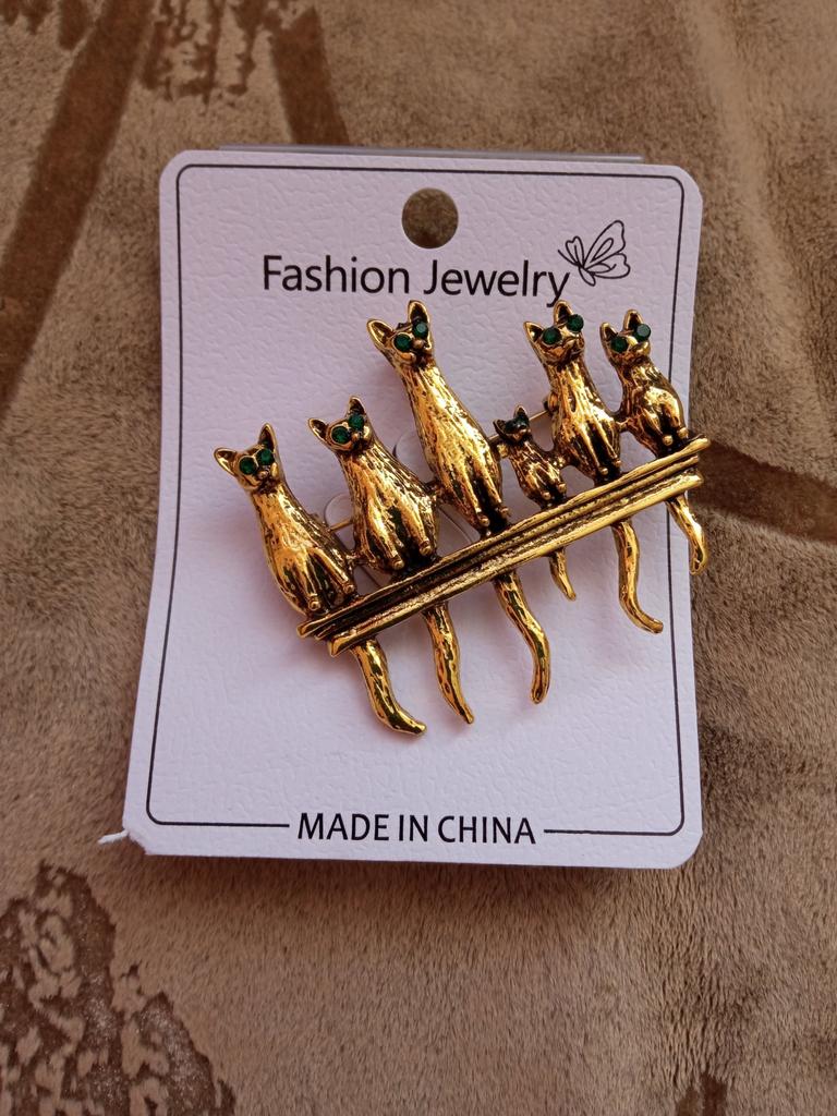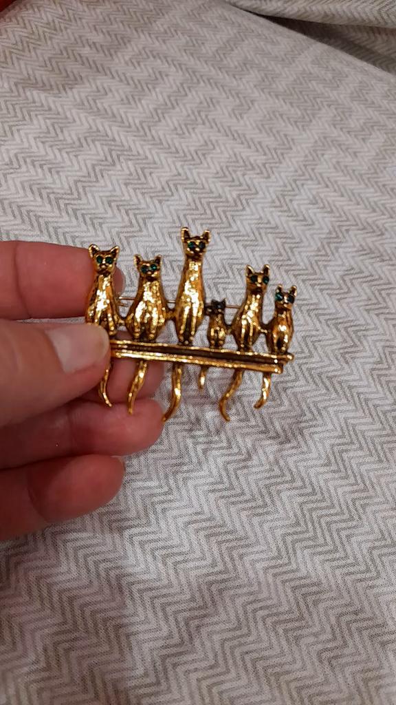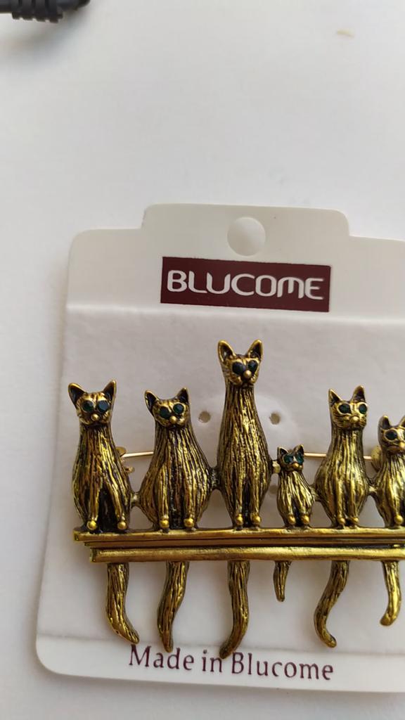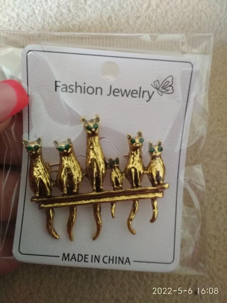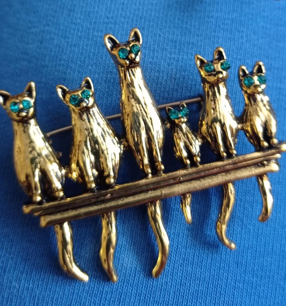 A very beautiful brooch. Satisfied The camera does not convey how beautifully the cats' green eyes sparkle. Thank you.