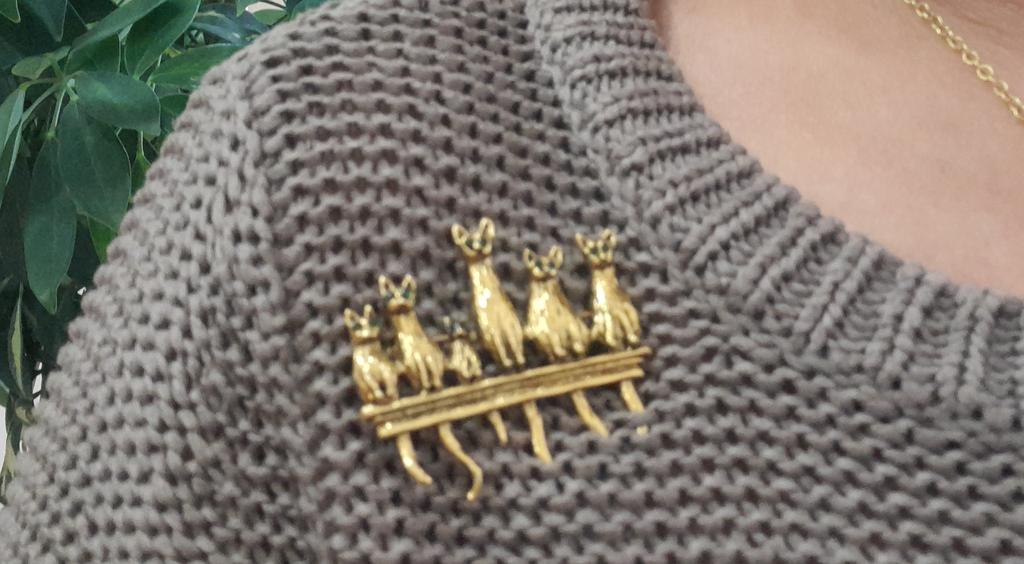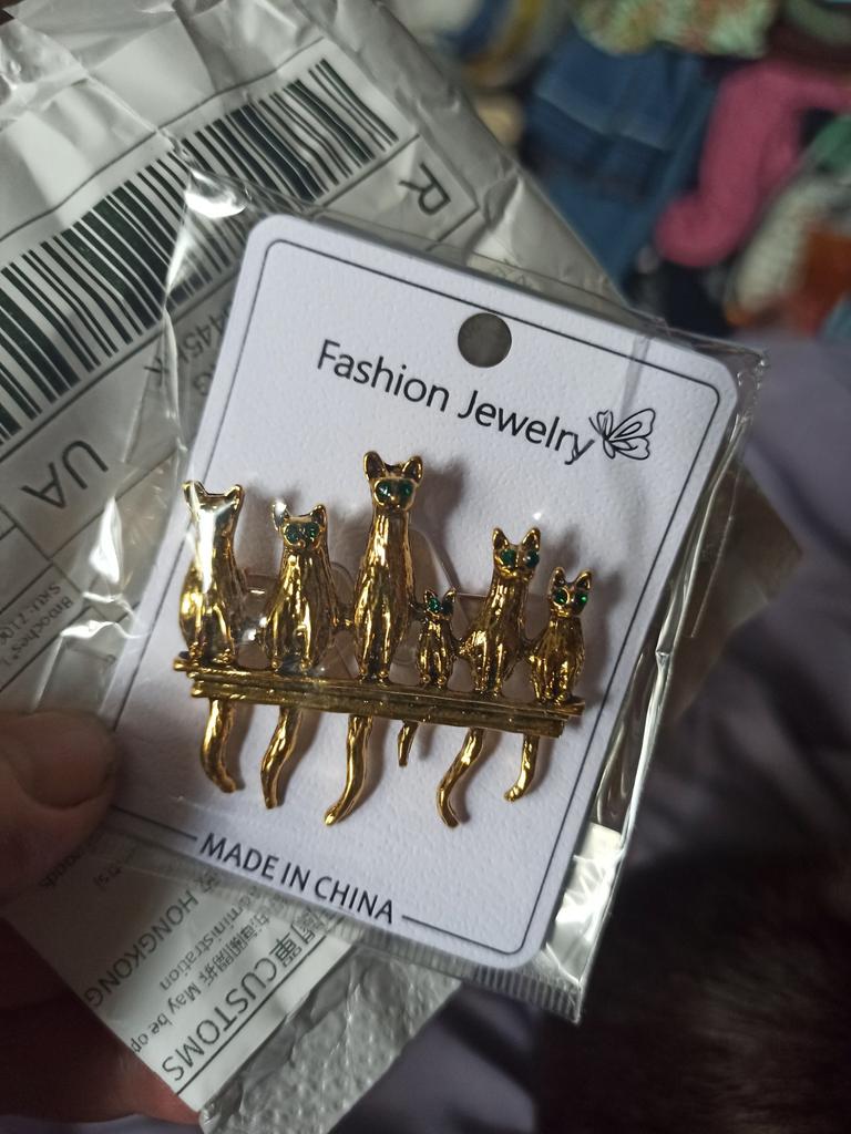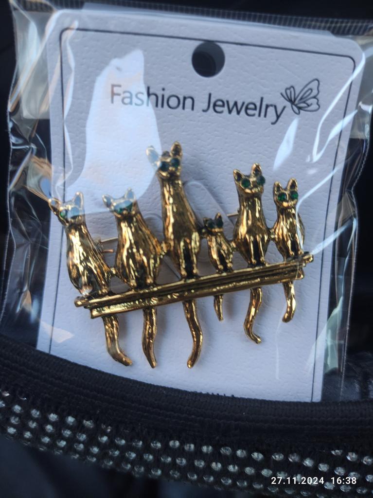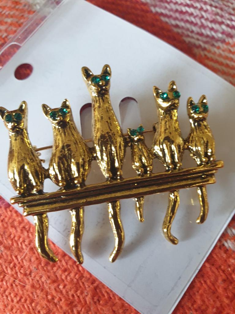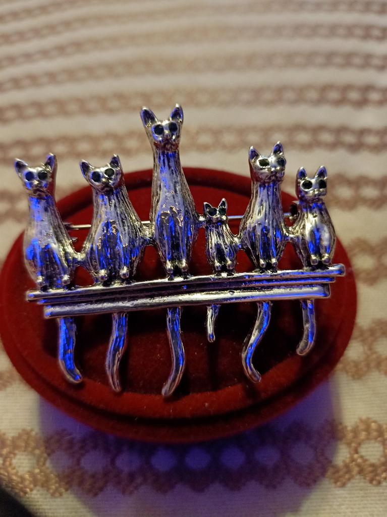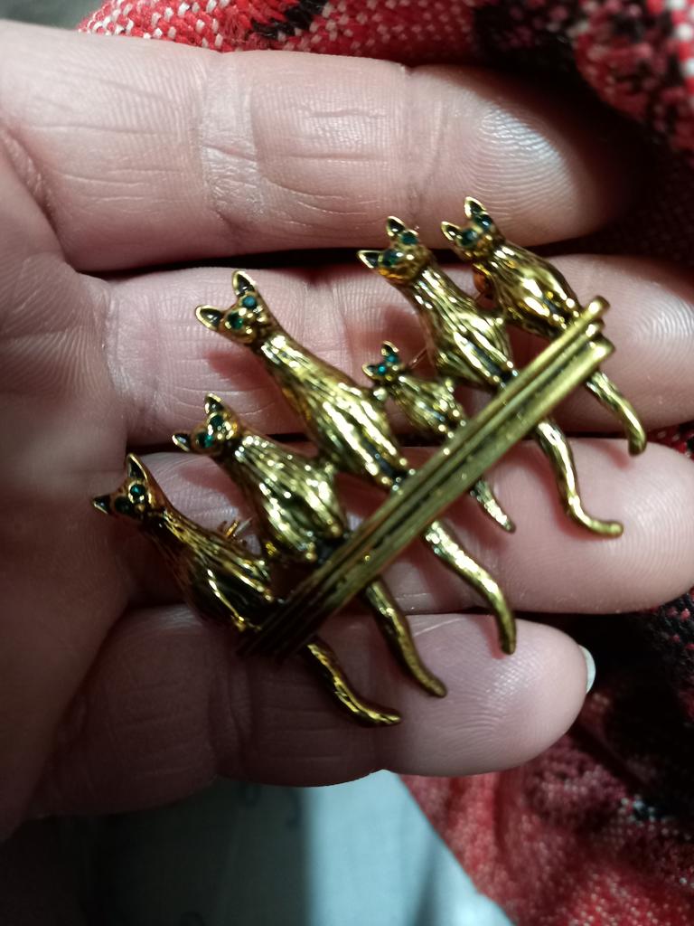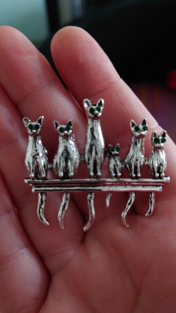 A very beautiful brooch. Satisfied The camera does not convey how beautifully the cats' green eyes sparkle. Thank you.