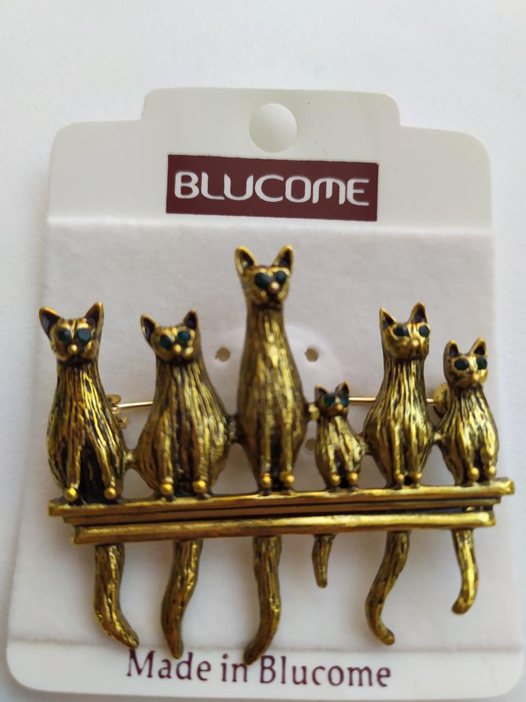Blucome Vintage Green Eyes Cats Shape Brooches Antique Gold Animal Family Pins Brooch Suit Scarf Collar Clips For Women Men Kids