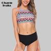 CHARMLEAKS Women Bikini Set Halter Swimwear High Neck Swimsuit Printed Bathing Suit Beachwear