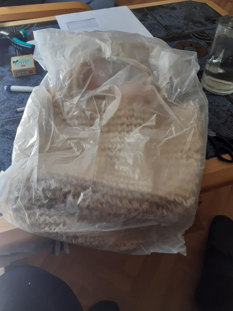 It took more than the scheduled time, the material looks good quality. It is a small bag but it is very nice and it is not rough