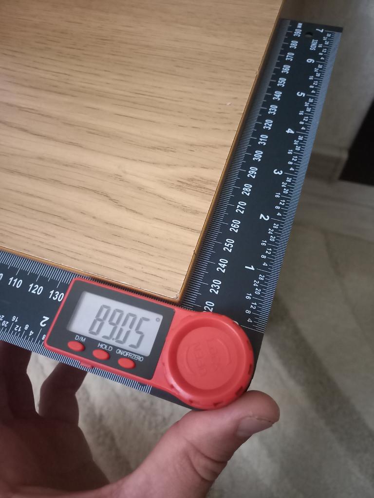 Thighs unfortunately not the same width! That means on one side e.g. 90° reversed then 90.3° or 89.7° . Sufficient for approximate measurement.