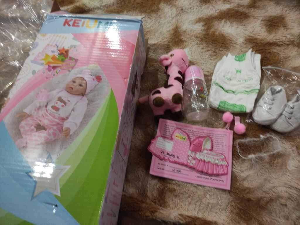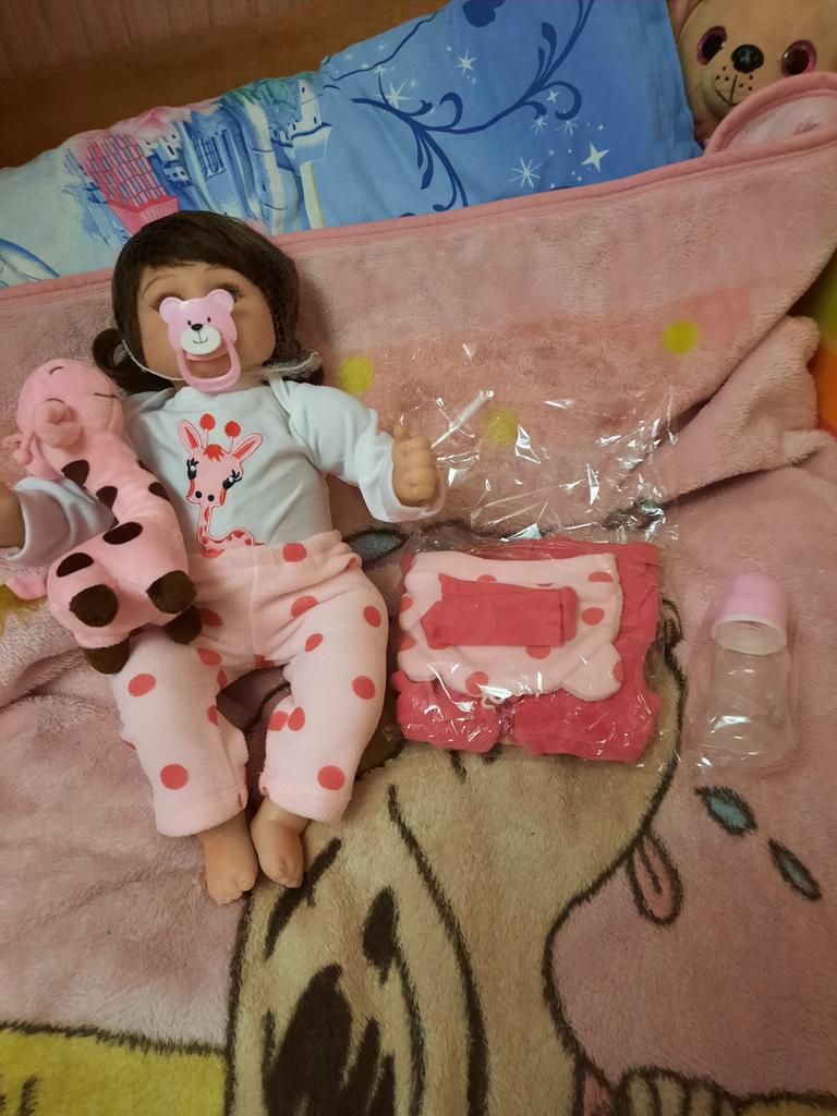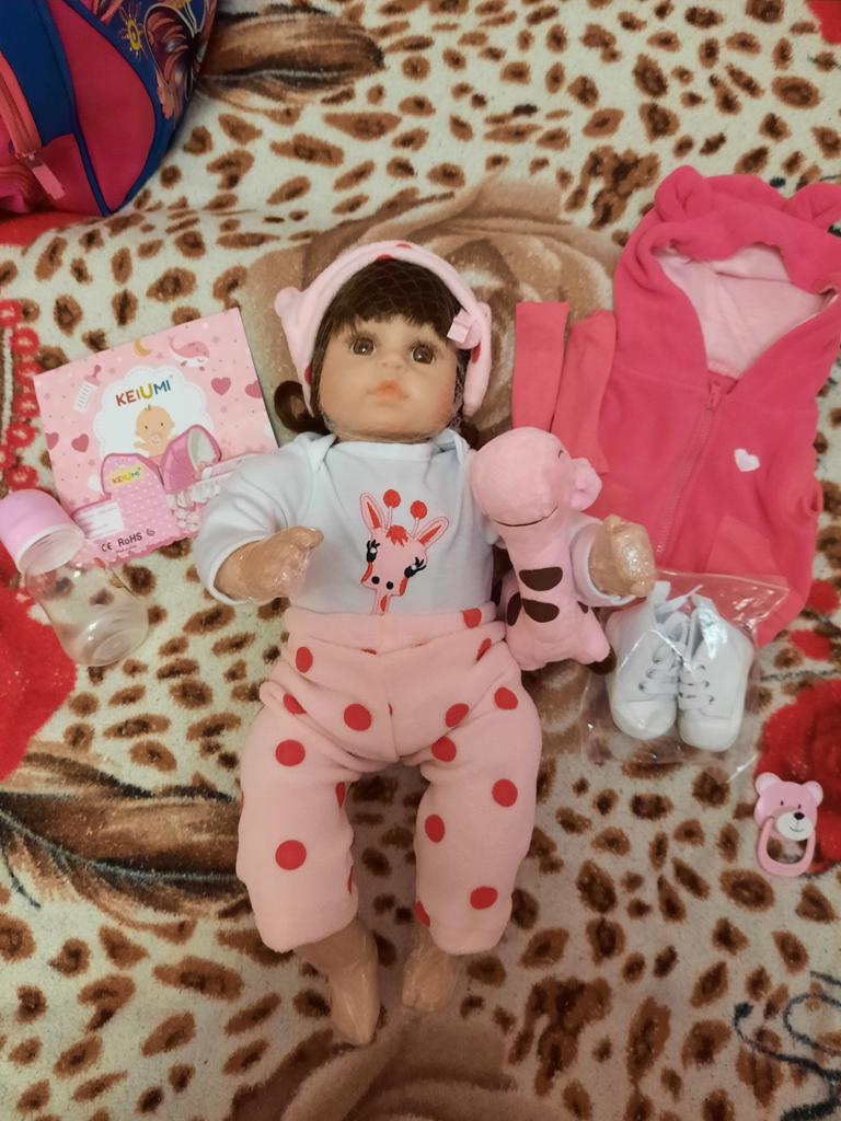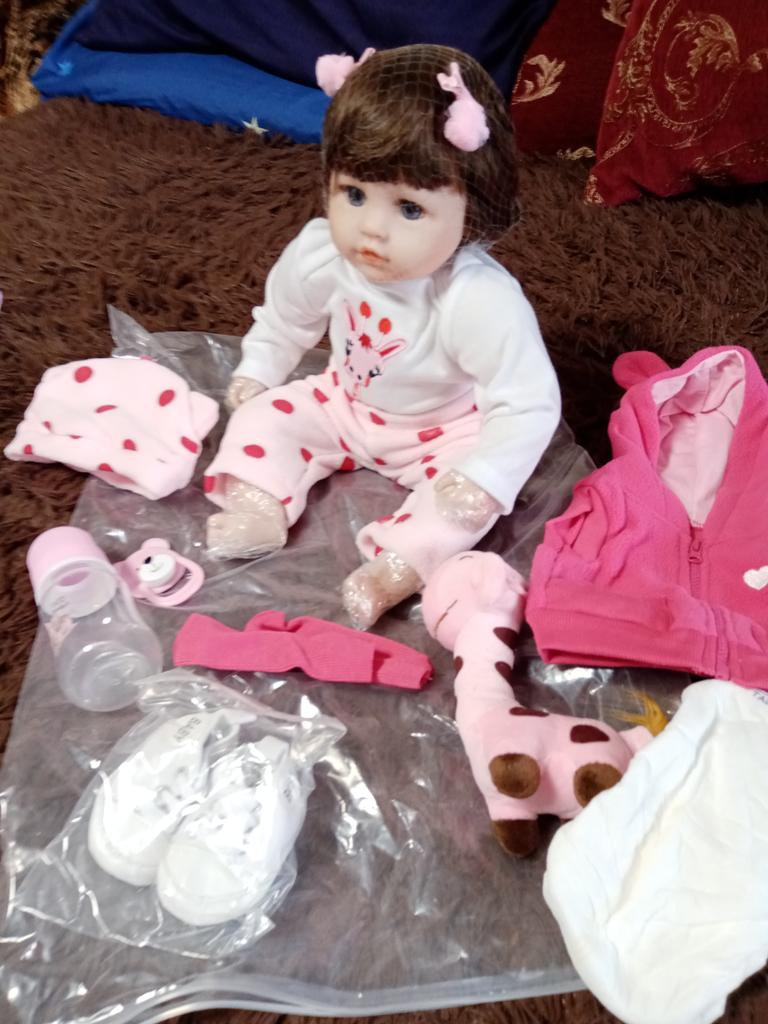 Stunningly high quality, beautiful doll with a dowry. Perfectly packaged, the hairs are reinforced with a hairnet. Lots of extra clothes and accessories for the baby. I bought 2 dolls for my granddaughters. I recommend to grandmothers and mothers for gifts✌🤗