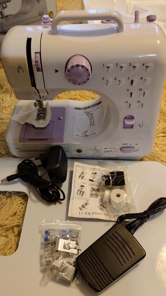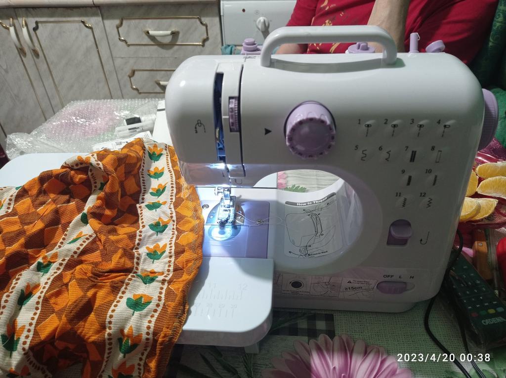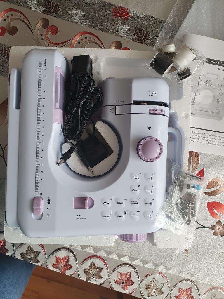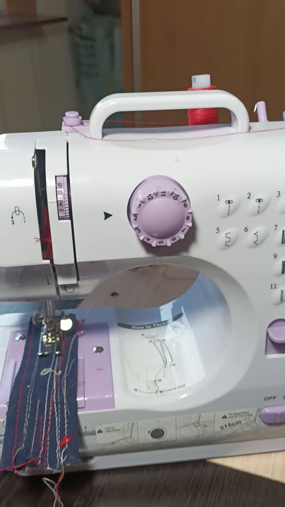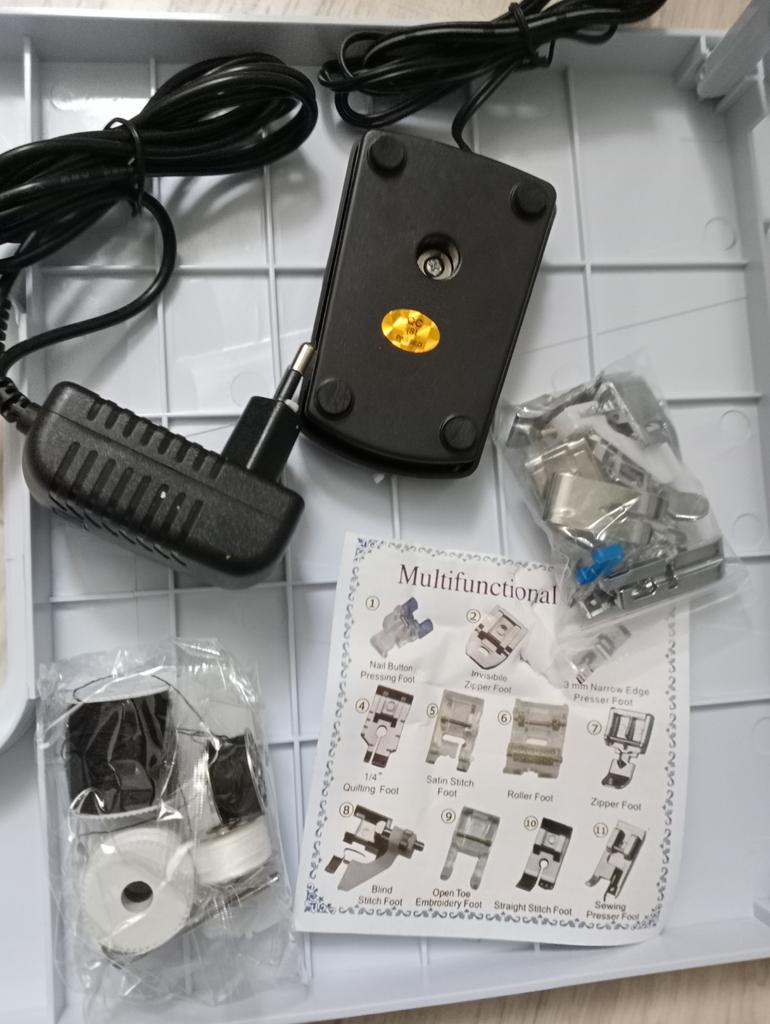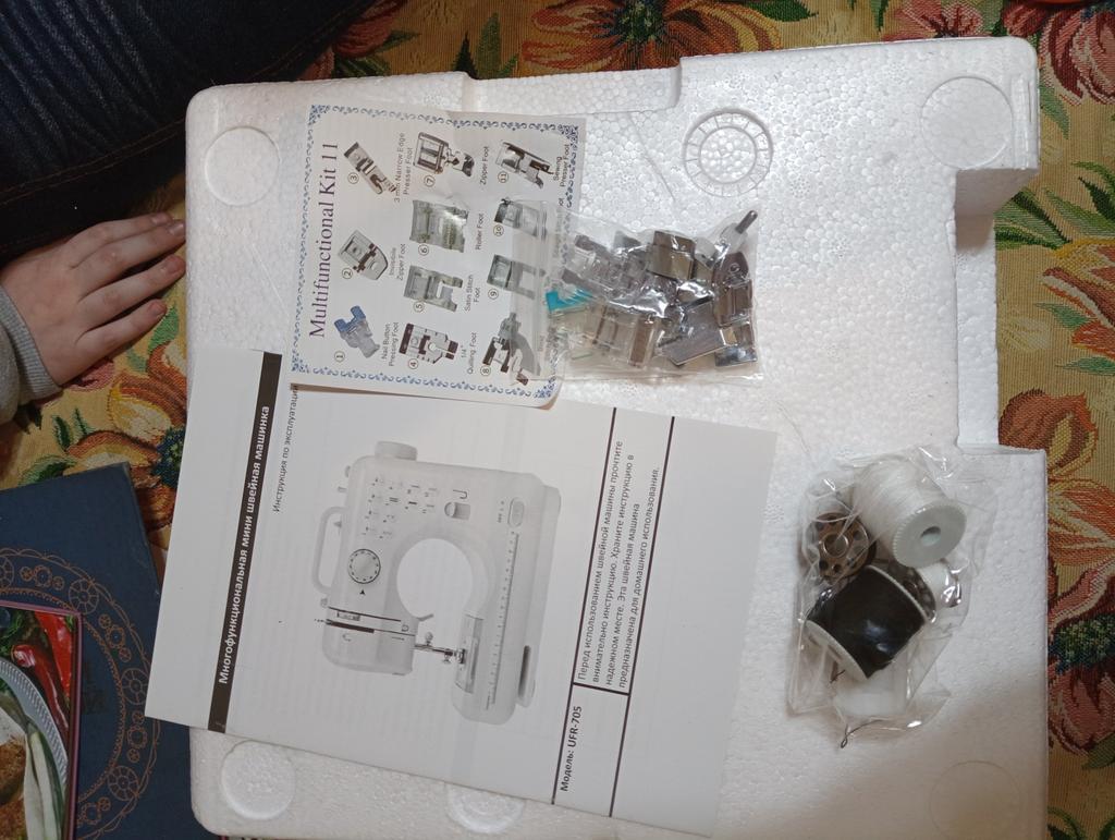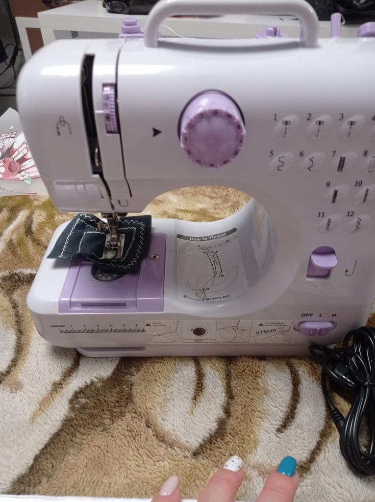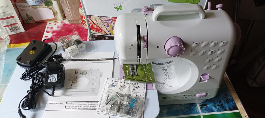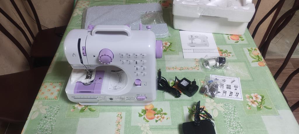 A good machine, compact, but the adapter burned out, and didn’t work for a month, I contacted the support service, they compensated, you can sew on it using thin fabrics.