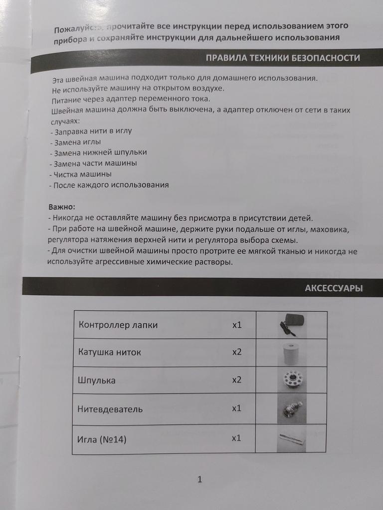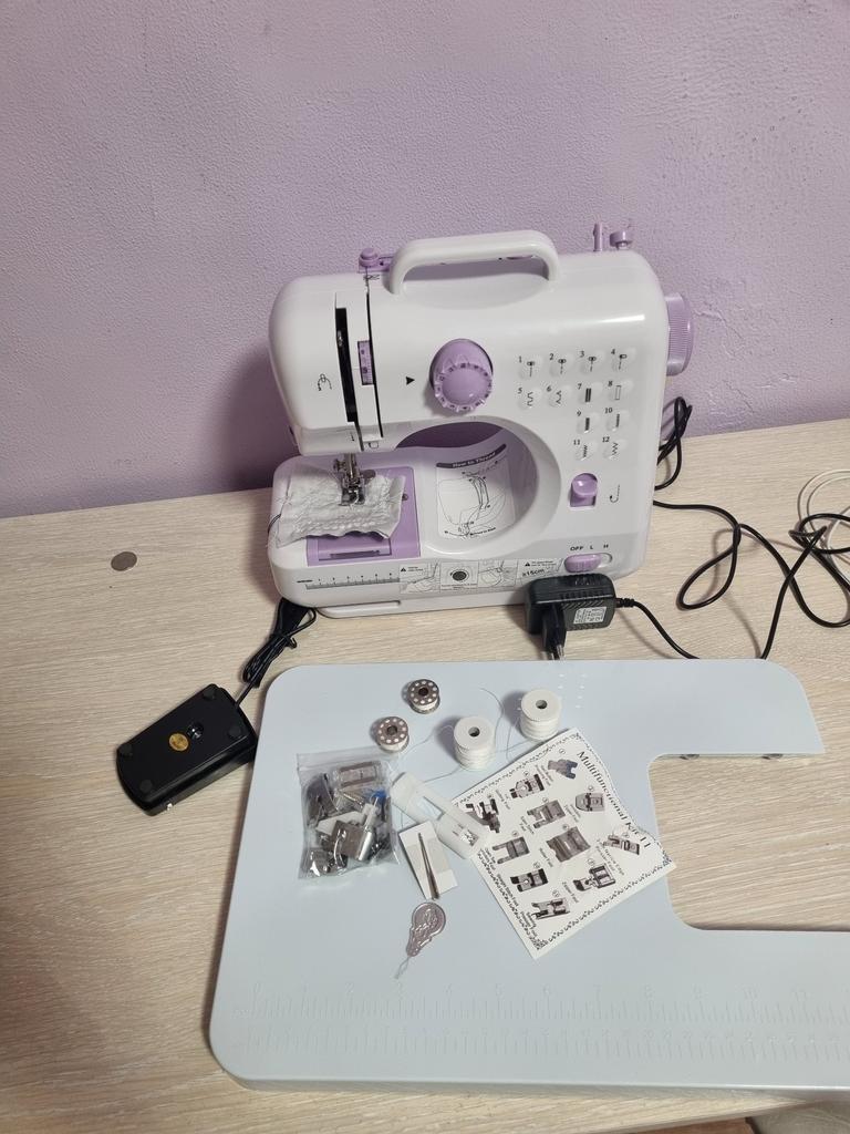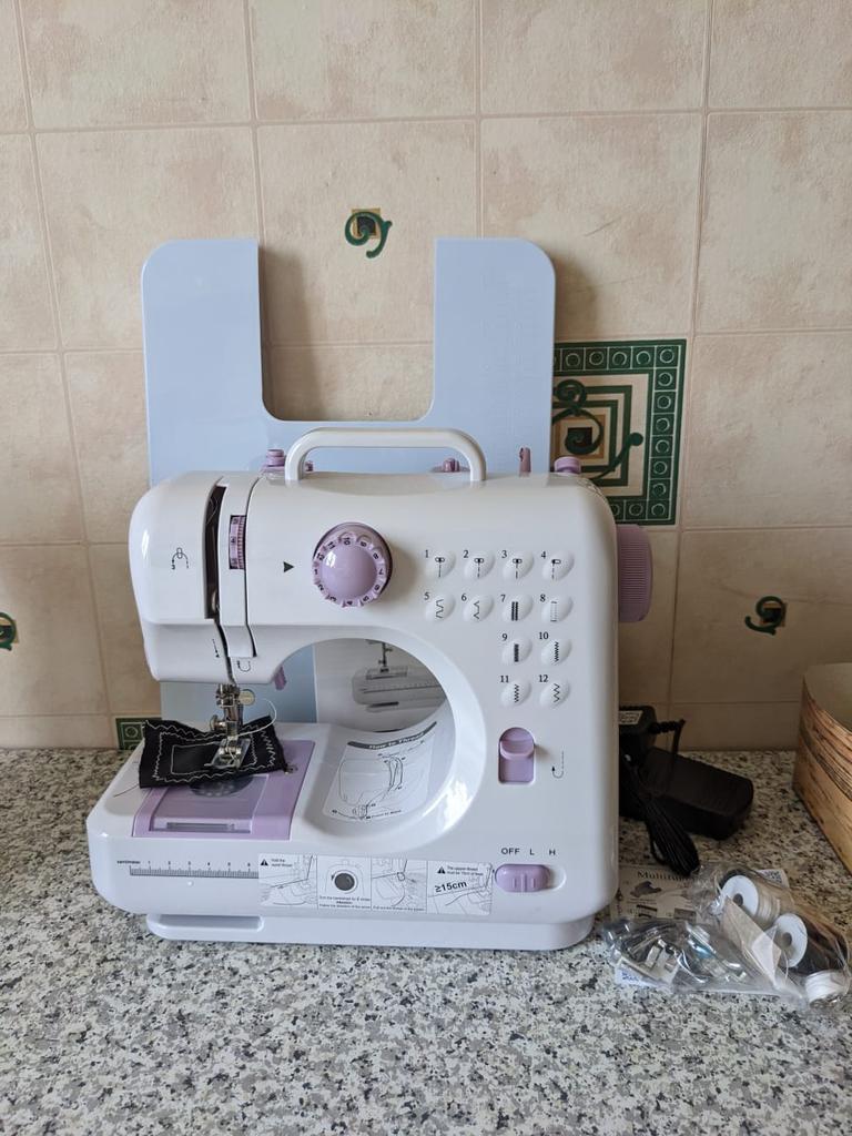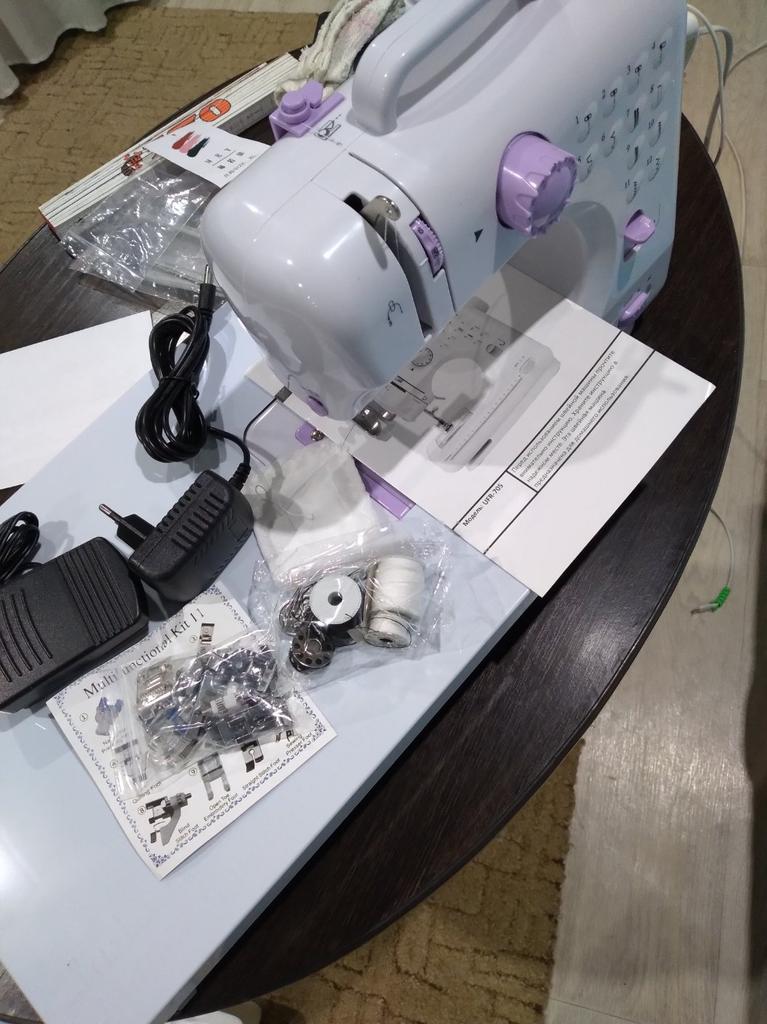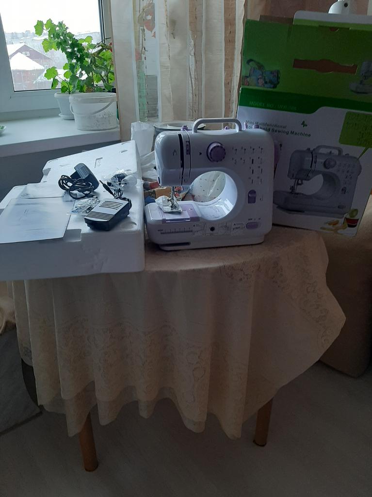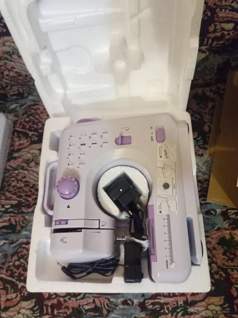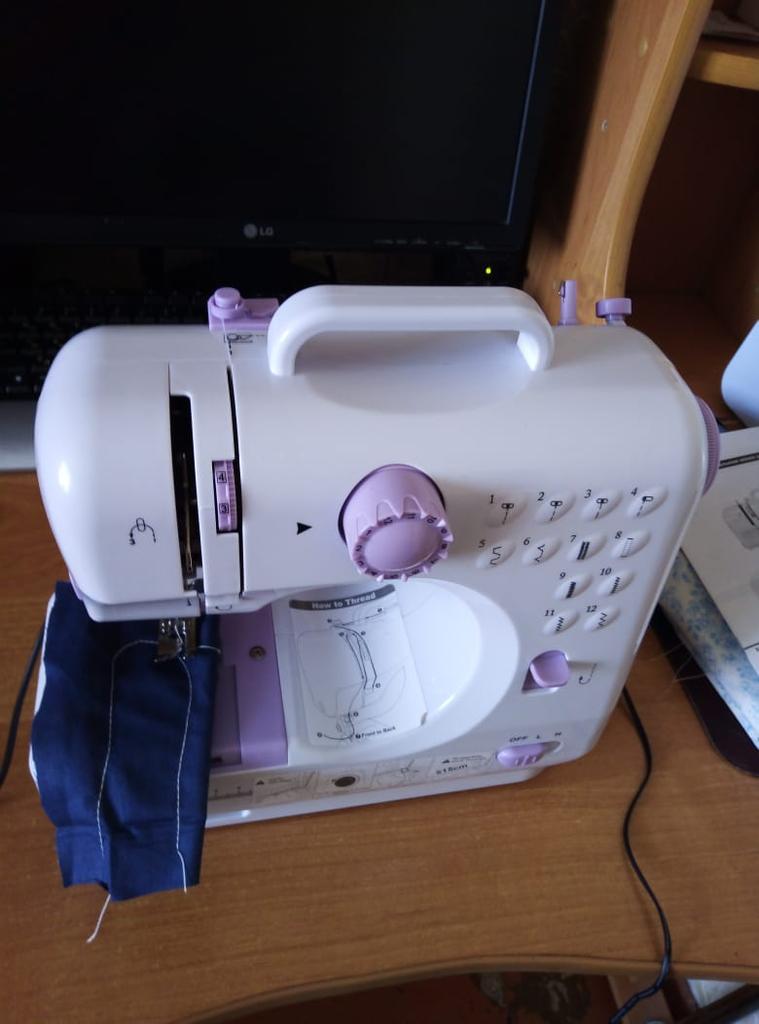 A good machine, compact, but the adapter burned out, and didn’t work for a month, I contacted the support service, they compensated, you can sew on it using thin fabrics.