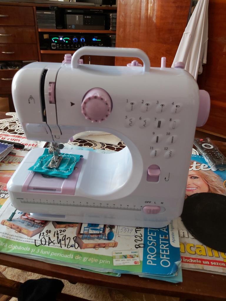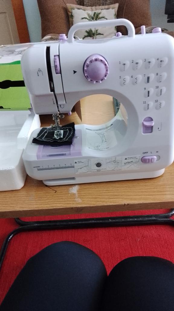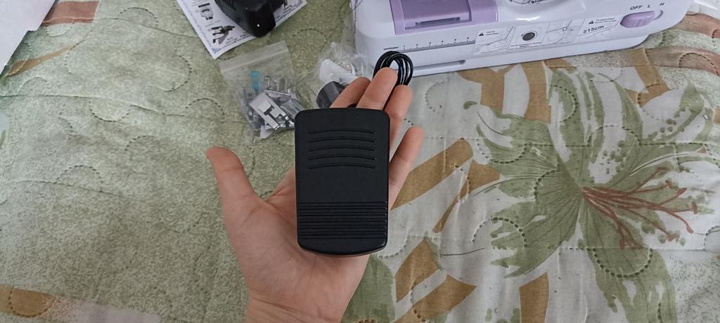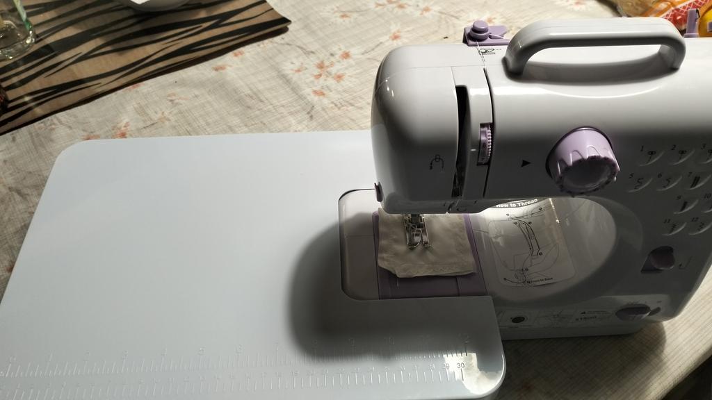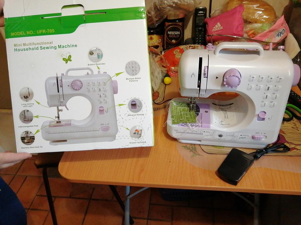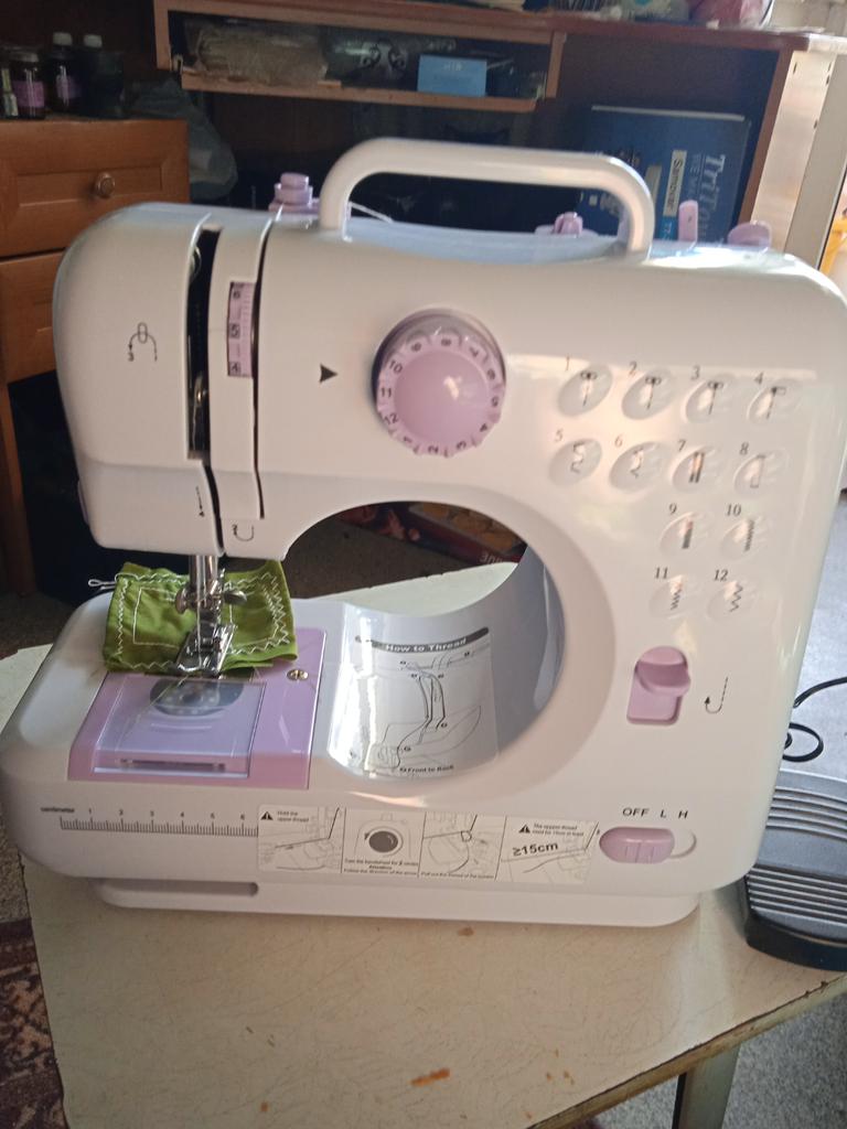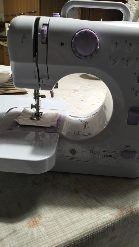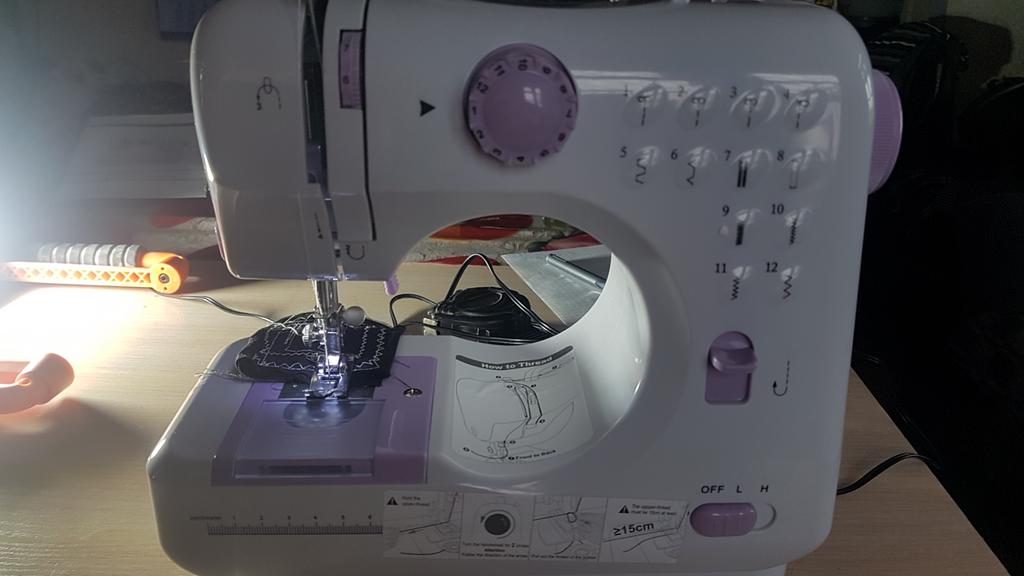 The baby is doing well. Very handy for small jobs. Works both from batteries and from a network. There is a start button on the machine and you can work with a foot pedal. Various types of seams. Very good for such a small machine.