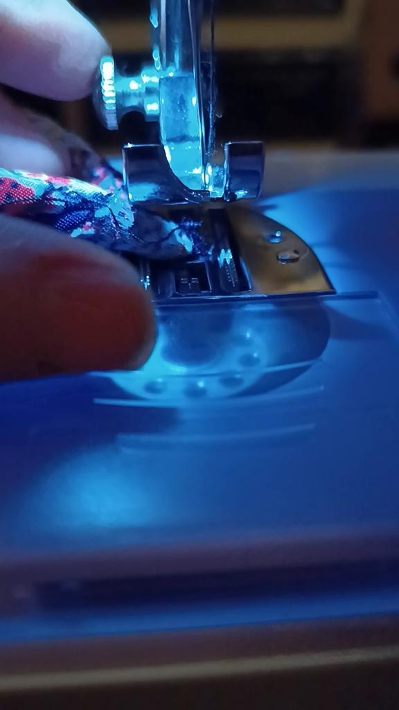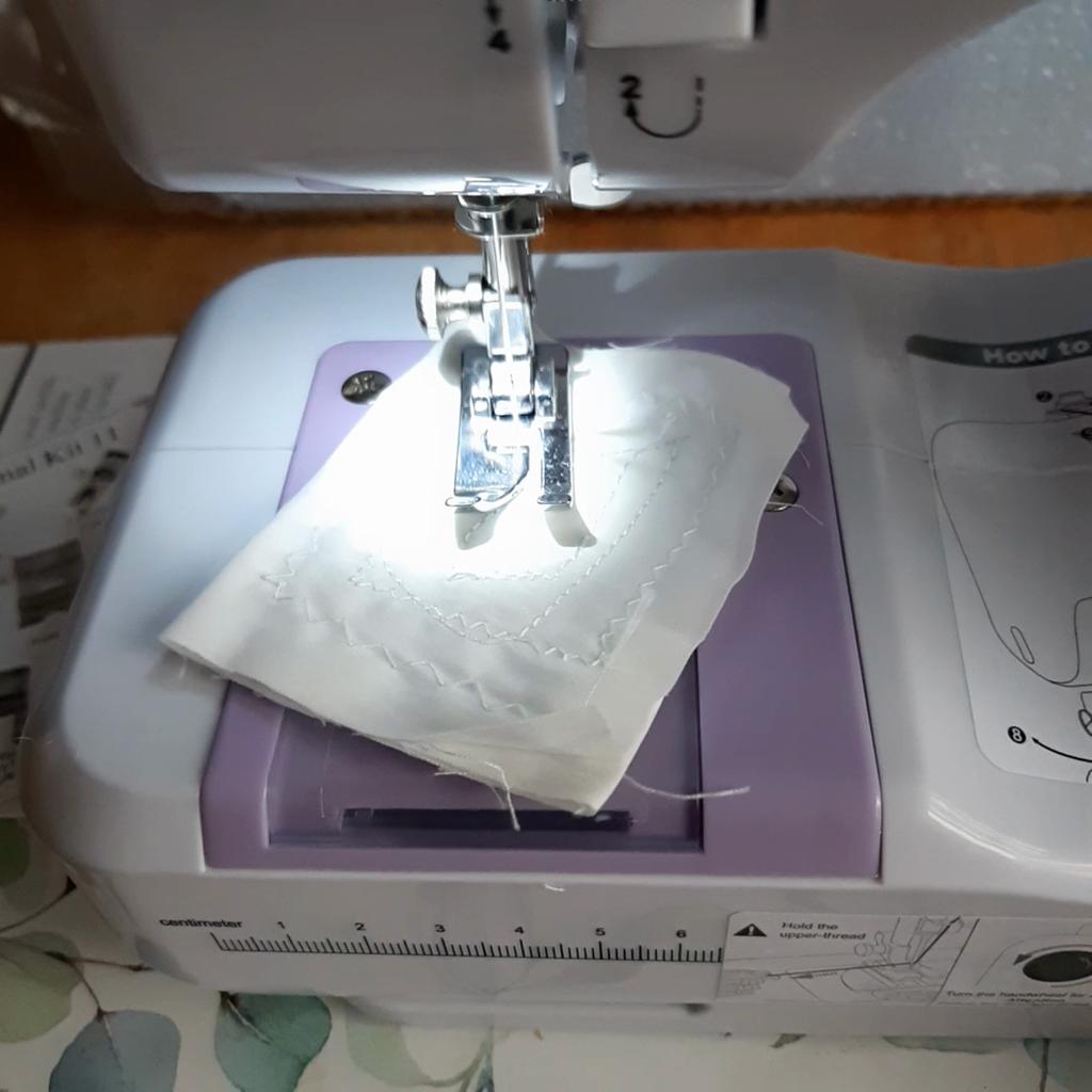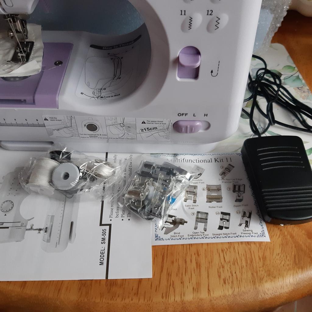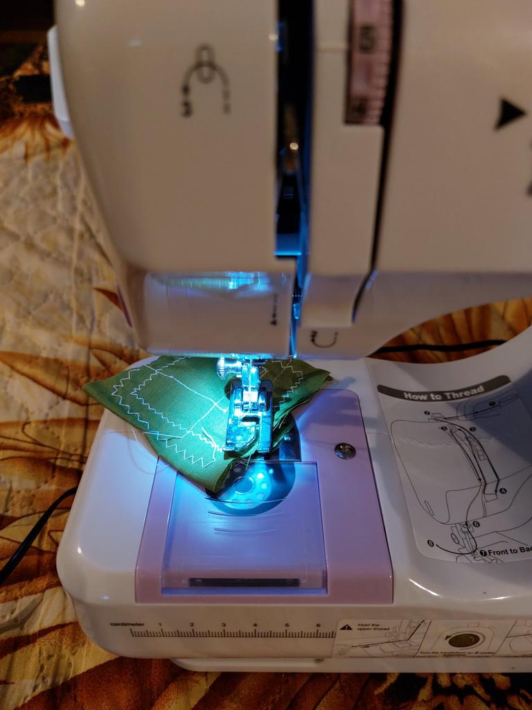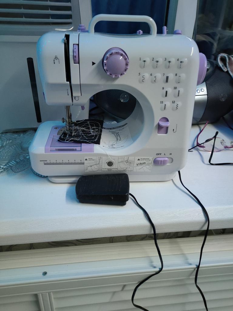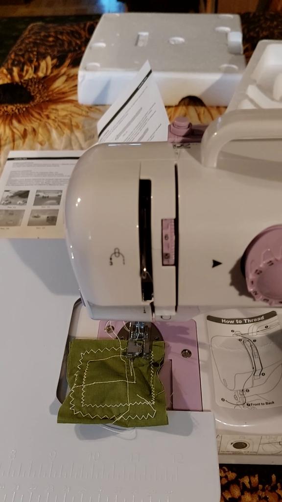 The baby is doing well. Very handy for small jobs. Works both from batteries and from a network. There is a start button on the machine and you can work with a foot pedal. Various types of seams. Very good for such a small machine.