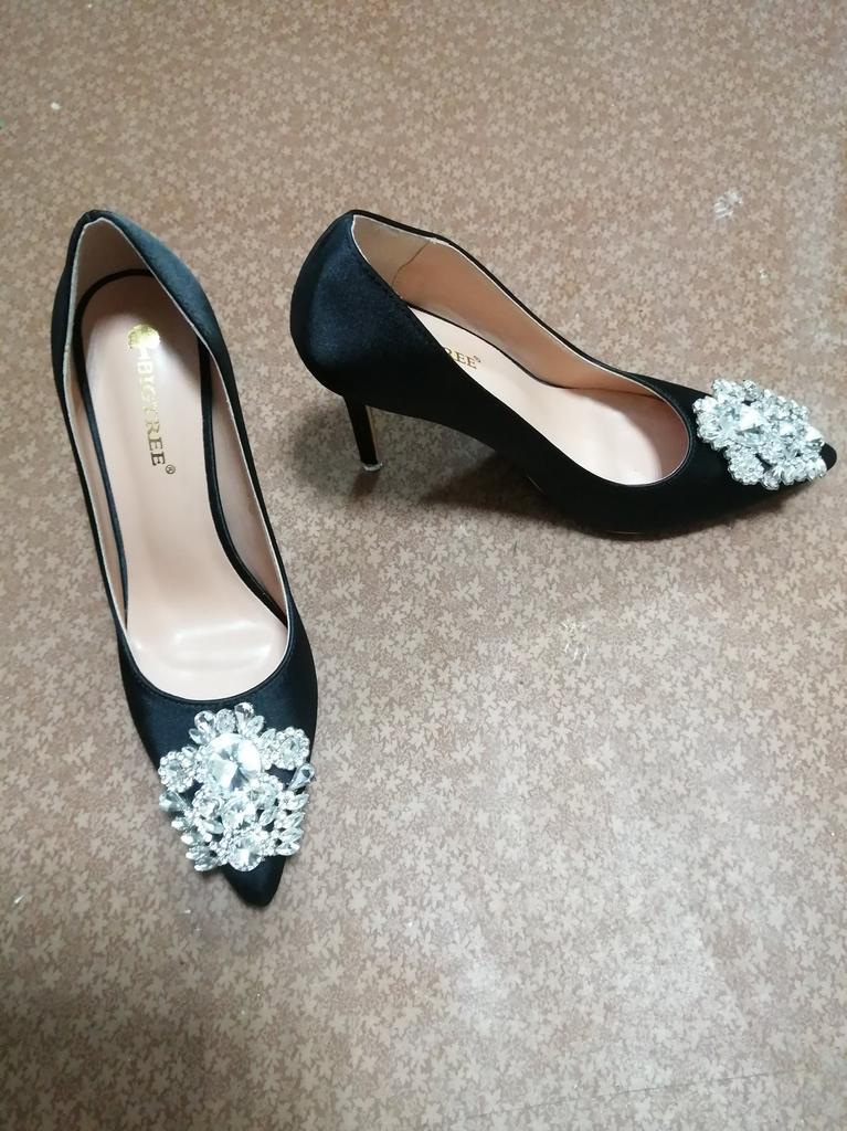 Bigtree Rhinestone Women's Shoes Fine Heel 10cm High Heel Sexy Thin Shallow Mouth Pointed Shiny Rhinestone Buckle Single Shoe