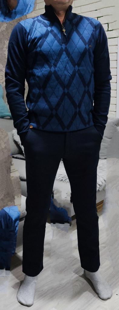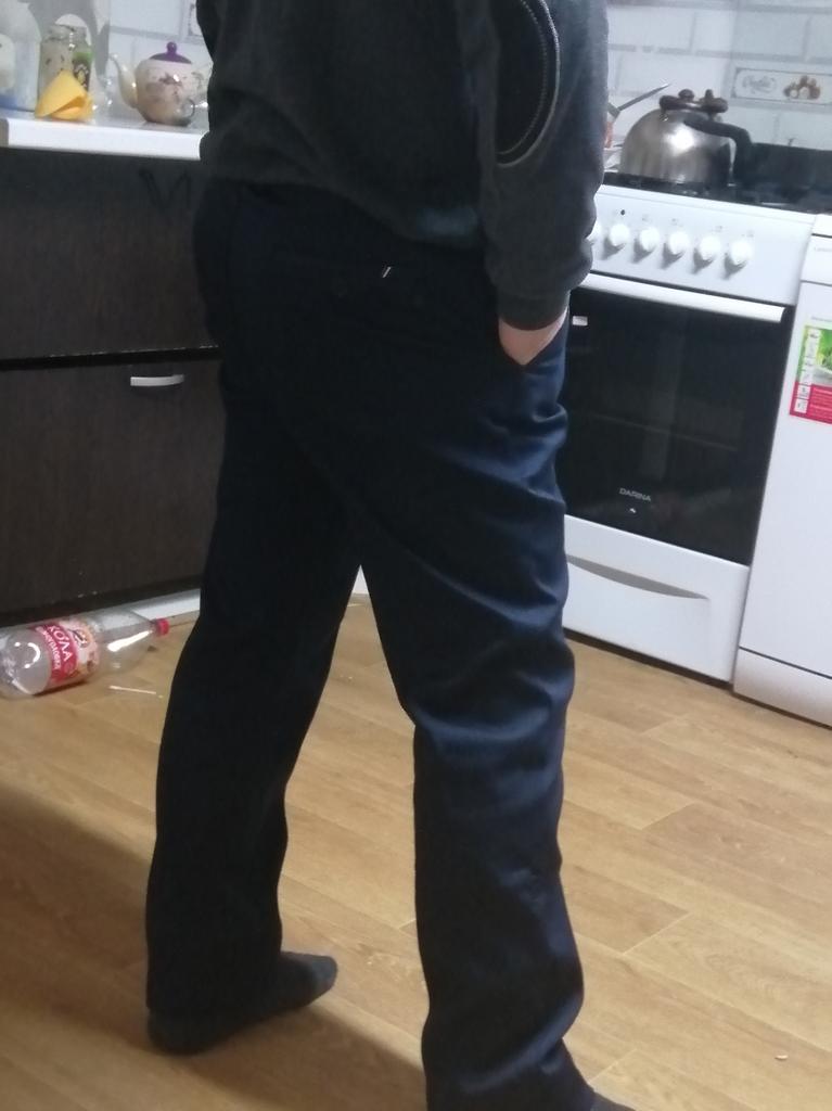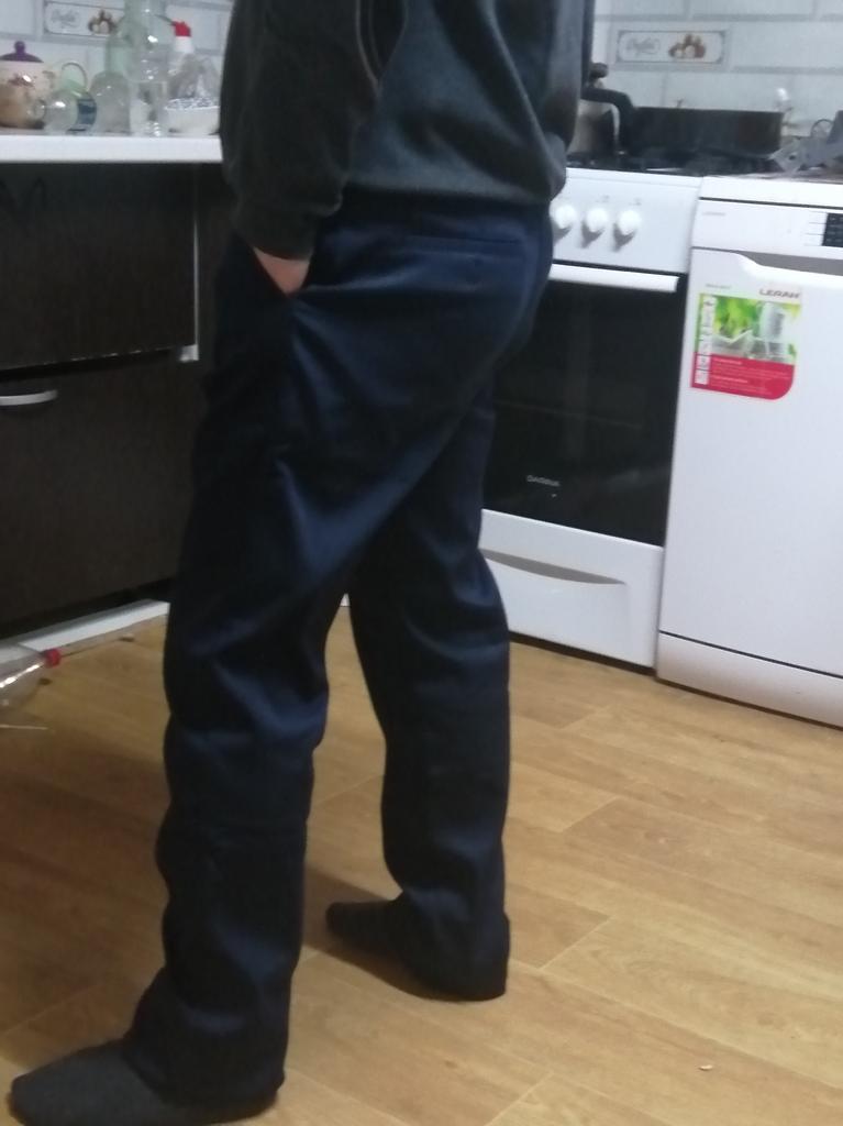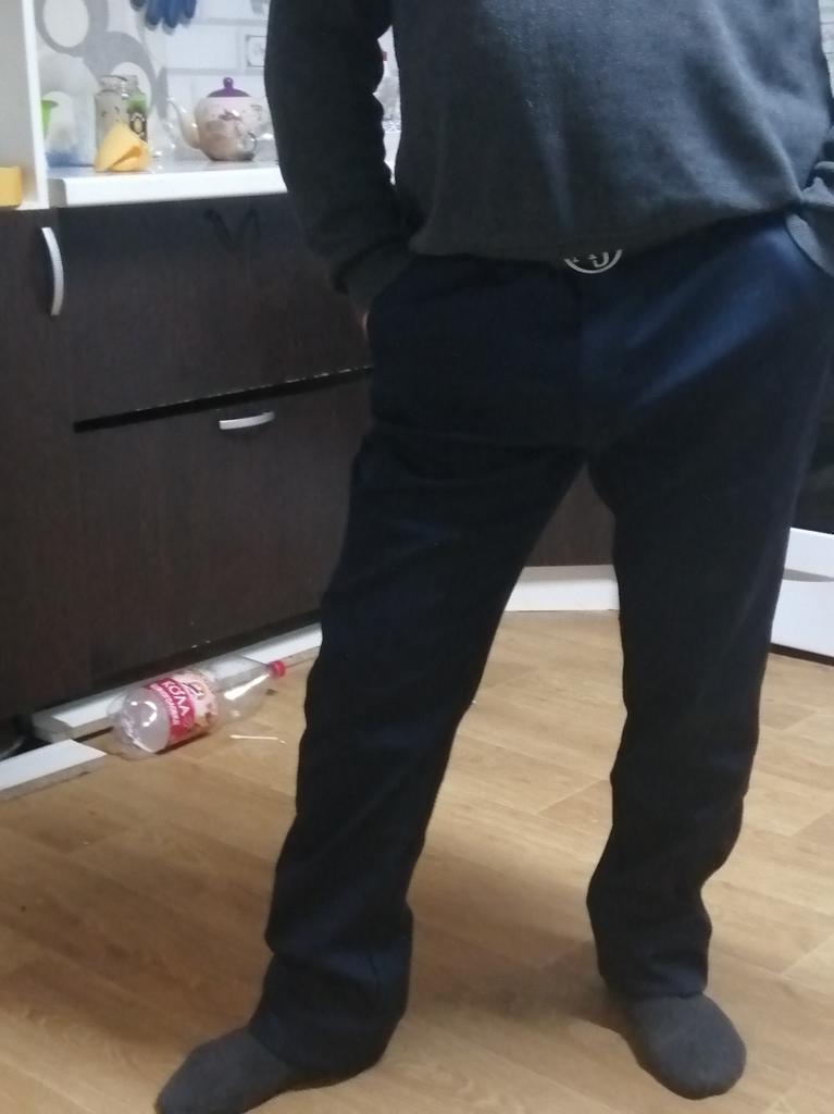 34 fits 48-50. The trousers are of normal quality, you won’t be ashamed to wear them.