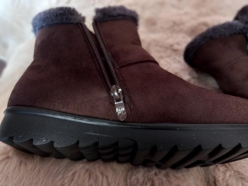 I ordered the boots for my mother. But because of the protruding bones on her feet, my mother couldn't wear them (they could have been a little wider). I'm wearing them. They are very light, warm, BUT THE SOLE IS SLIPPERY.