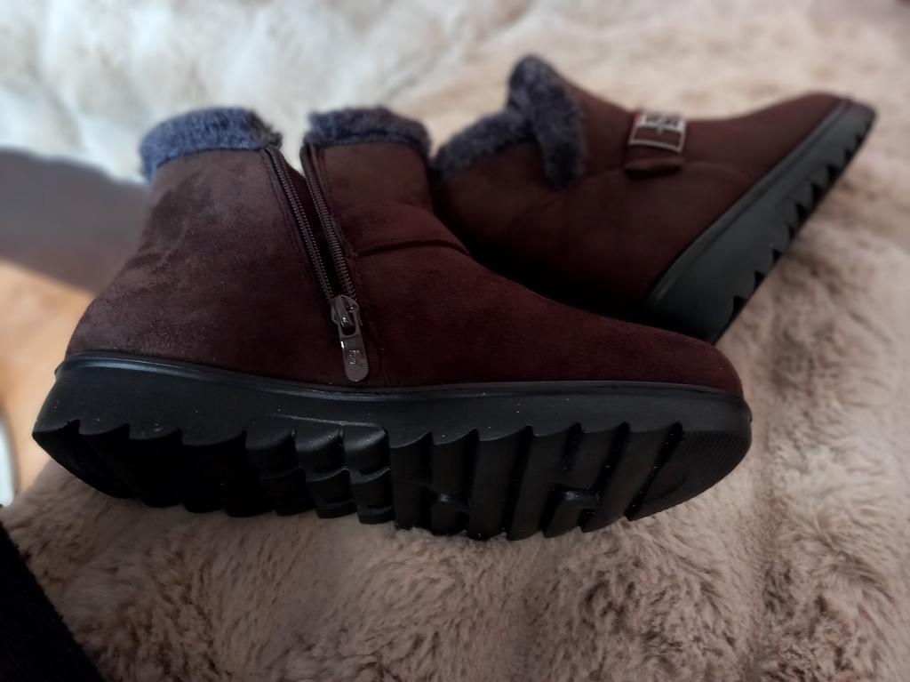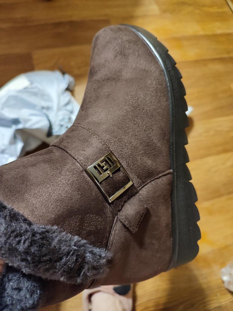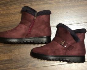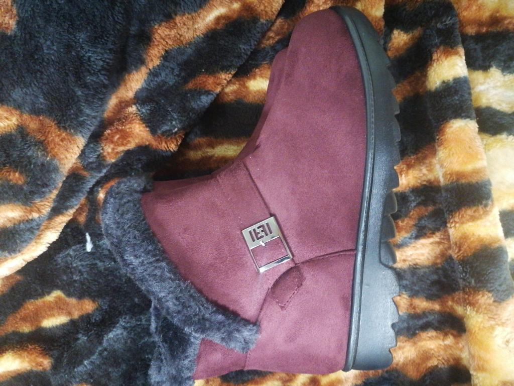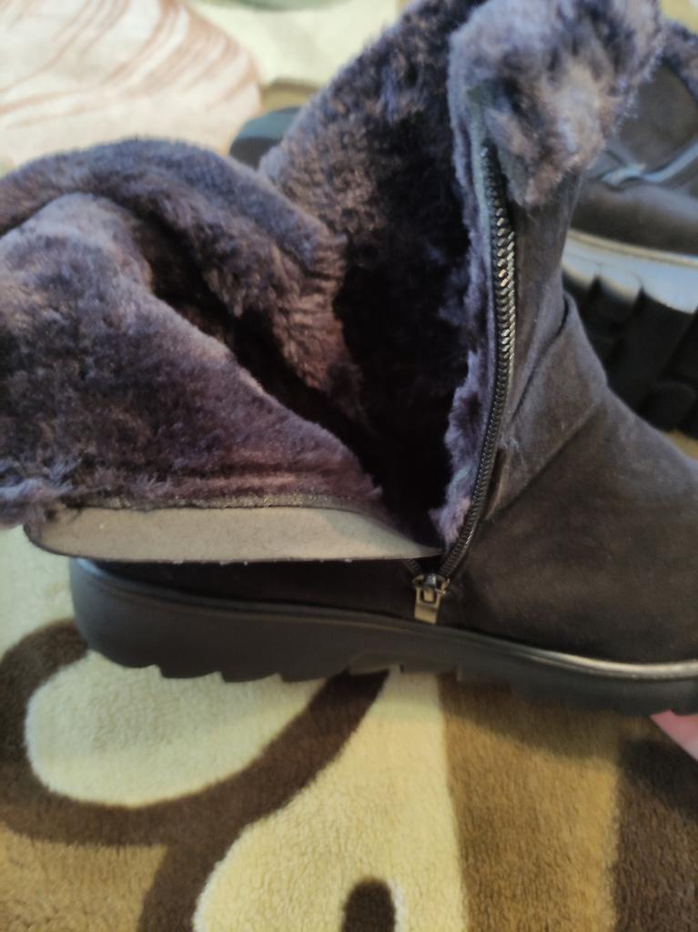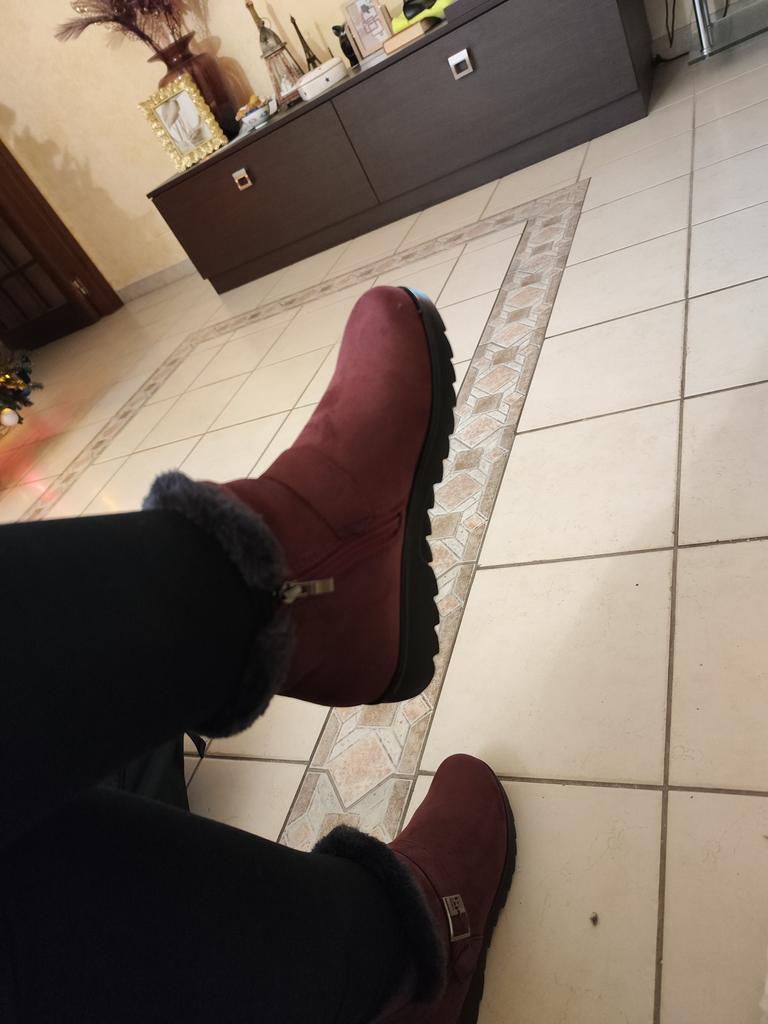 The boots were on their way to me for a month. The parcel lay in the city of Guangzhou for three weeks. The product itself is excellent for the money. The color is not as bright and I wouldn't dare call it burgundy, rather purple-burgundy. For my size 37.5, I took a 40. The sole is a bit slippery, outside it's +1C. The zipper is plastic. The fur is dark gray, not black as on the website. There is no smell. I wore them for two months. The boots started to leak at the seams. The heel shifted, making them uncomfortable to wear.