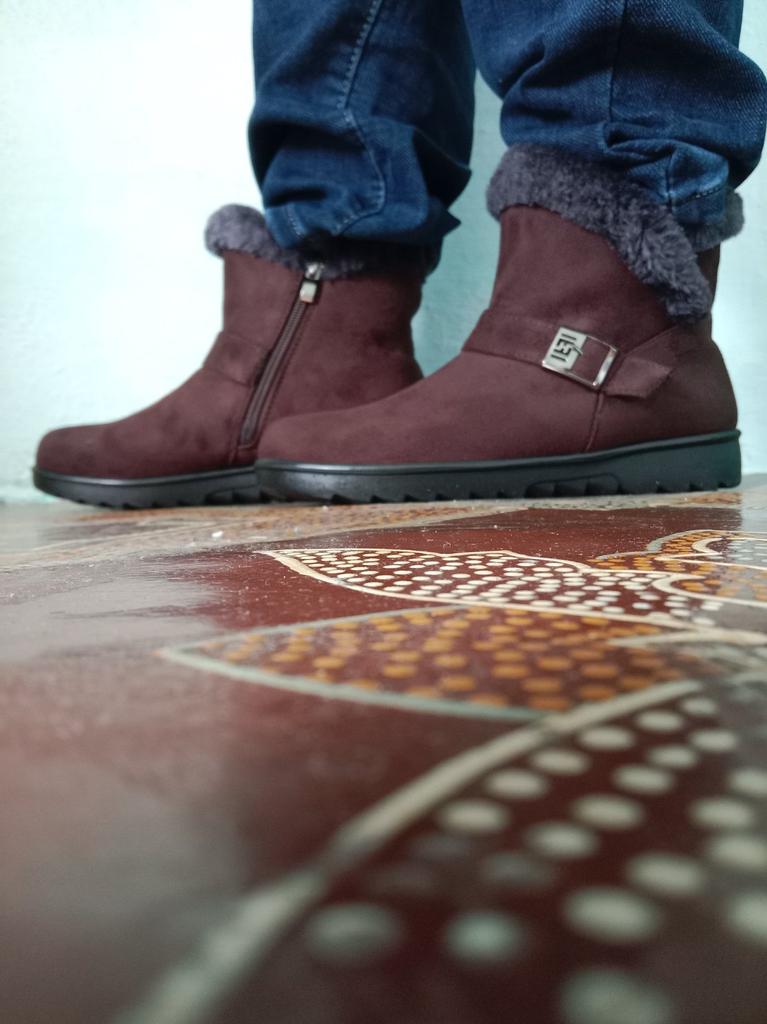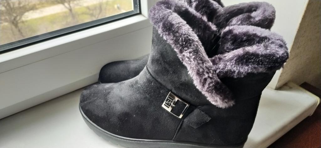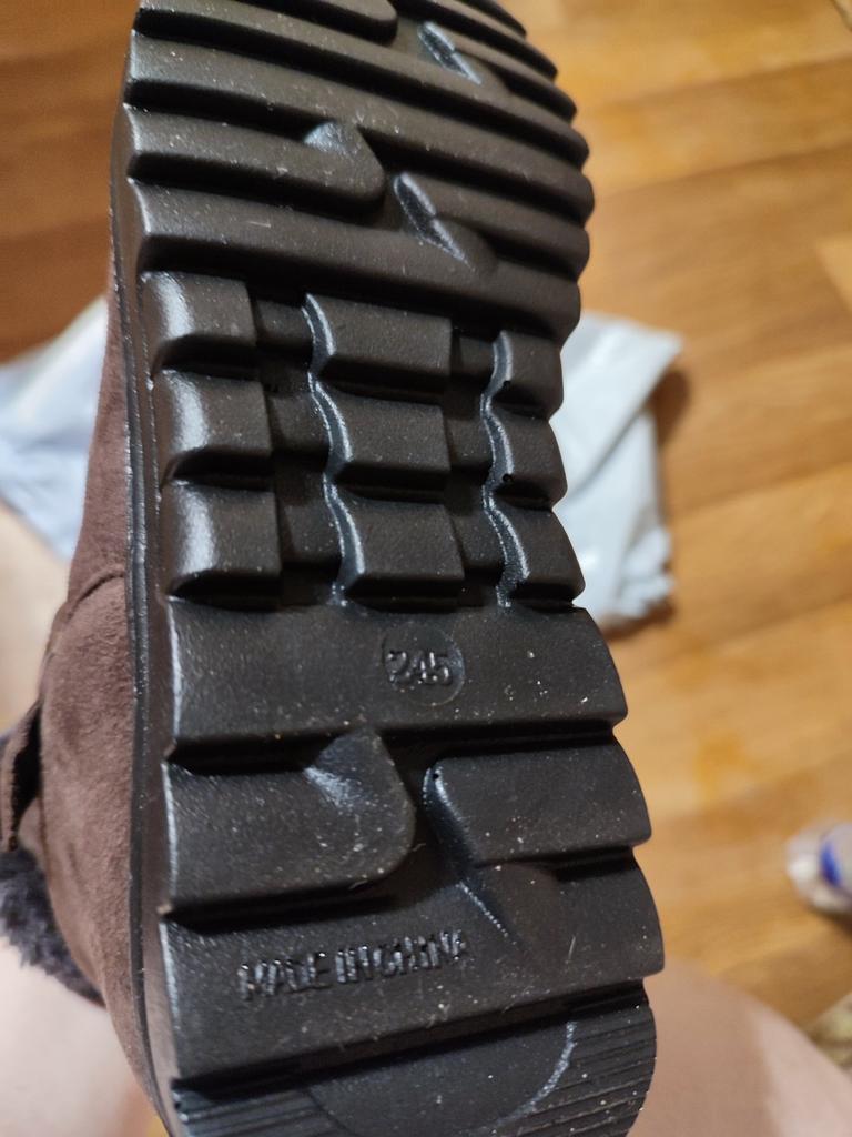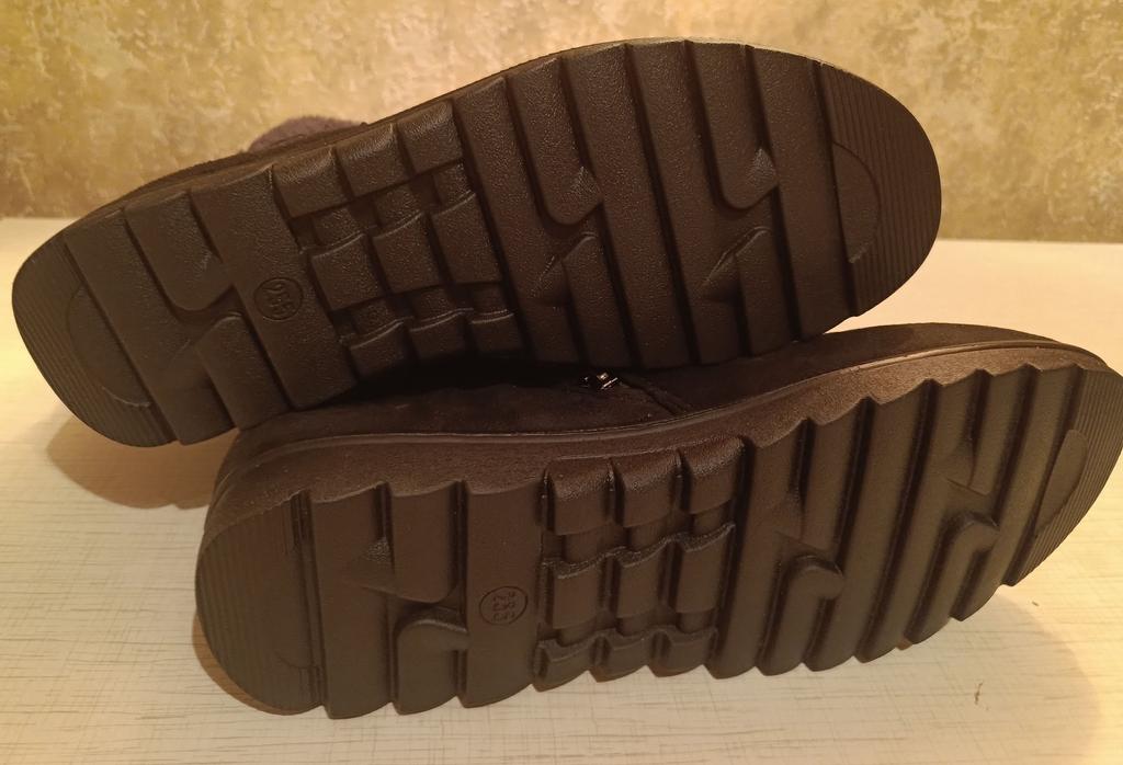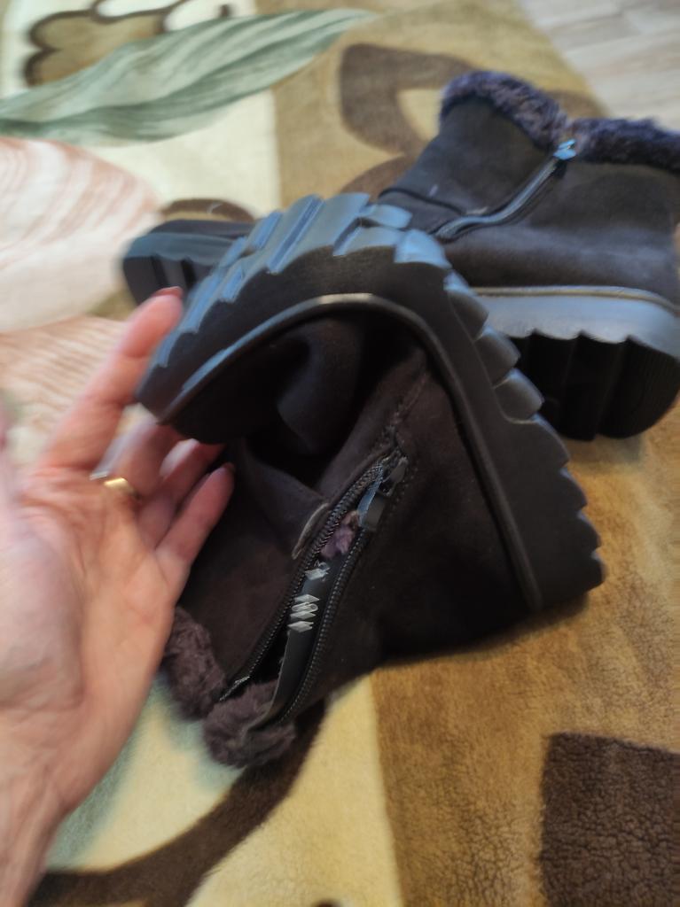 The boots were on their way to me for a month. The parcel lay in the city of Guangzhou for three weeks. The product itself is excellent for the money. The color is not as bright and I wouldn't dare call it burgundy, rather purple-burgundy. For my size 37.5, I took a 40. The sole is a bit slippery, outside it's +1C. The zipper is plastic. The fur is dark gray, not black as on the website. There is no smell. I wore them for two months. The boots started to leak at the seams. The heel shifted, making them uncomfortable to wear.