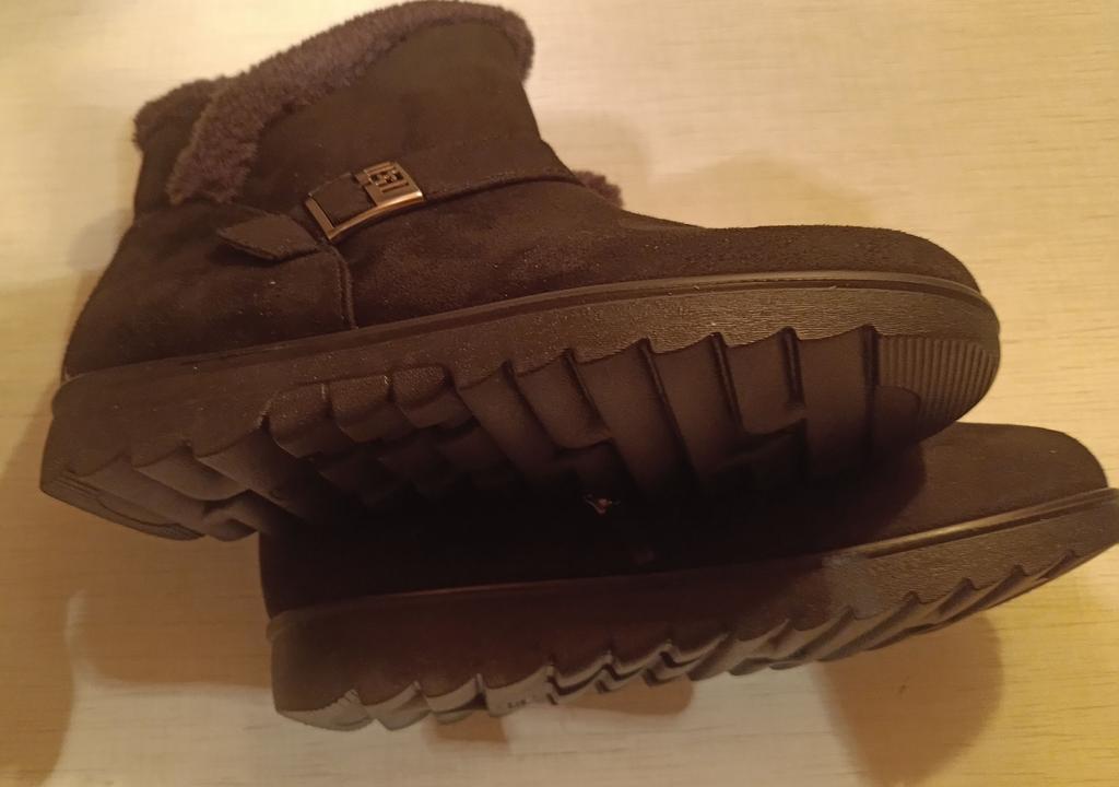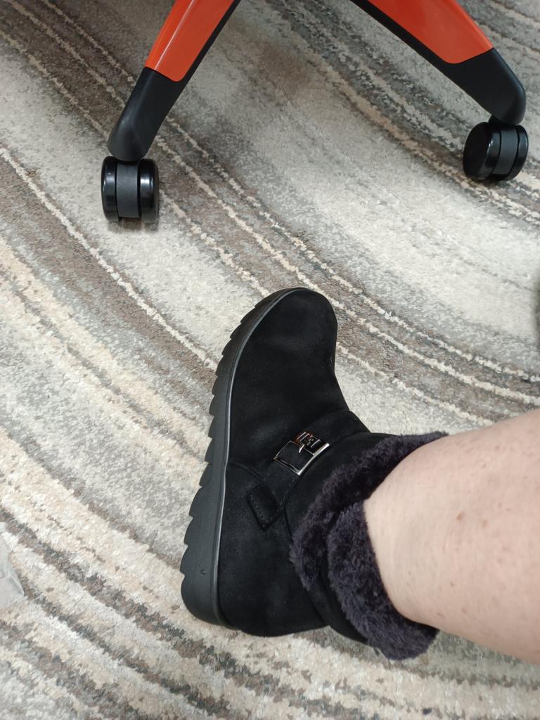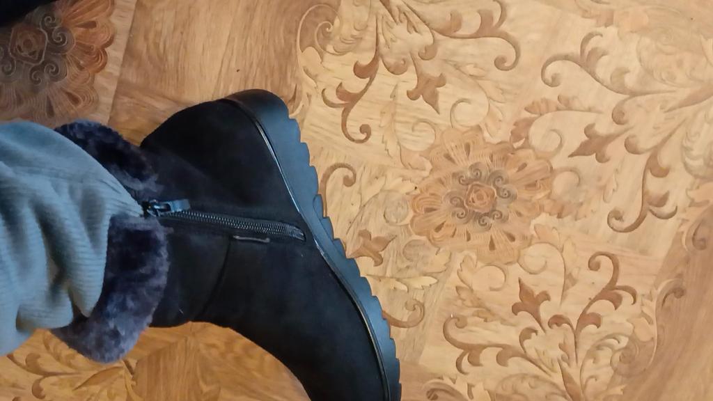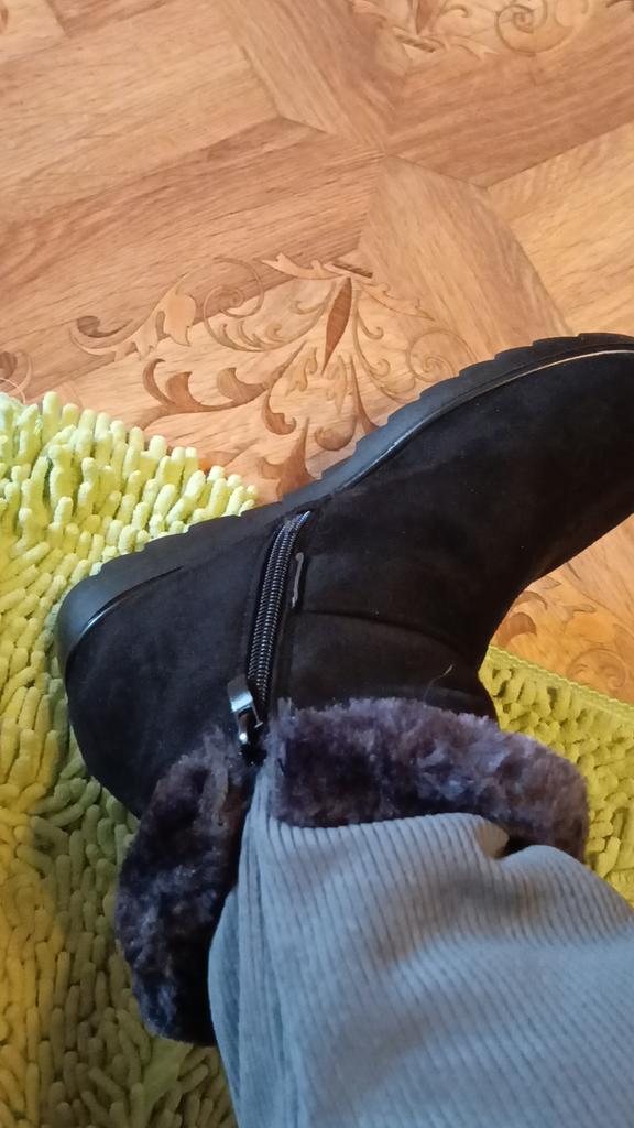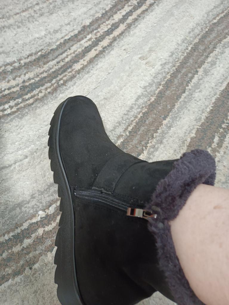 I had serious doubts about whether the boots would suit me, but in vain. Although I have problematic feet, wide and with a bunion, I wear size 41, I bought 43, focusing on the foot length of 26.5. They fit perfectly, soft, comfortable, will be good for dry weather in spring or autumn. I recommend them to everyone, inexpensive, look good.