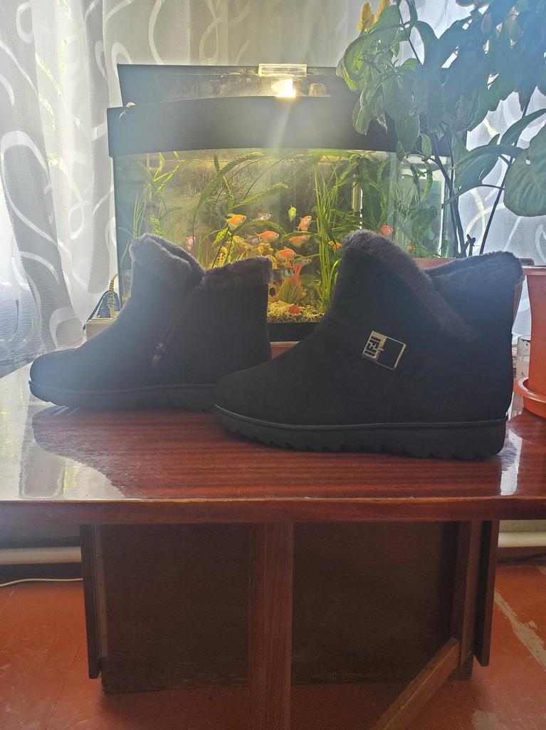 I received the order, packaged well. Black color, artificial. I ordered size 41, put it on, but it’s a bit tight, I’m getting carried away. Made with high quality. I would like to add. They are not suitable for wearing in winter; they are very, very slippery. Only very