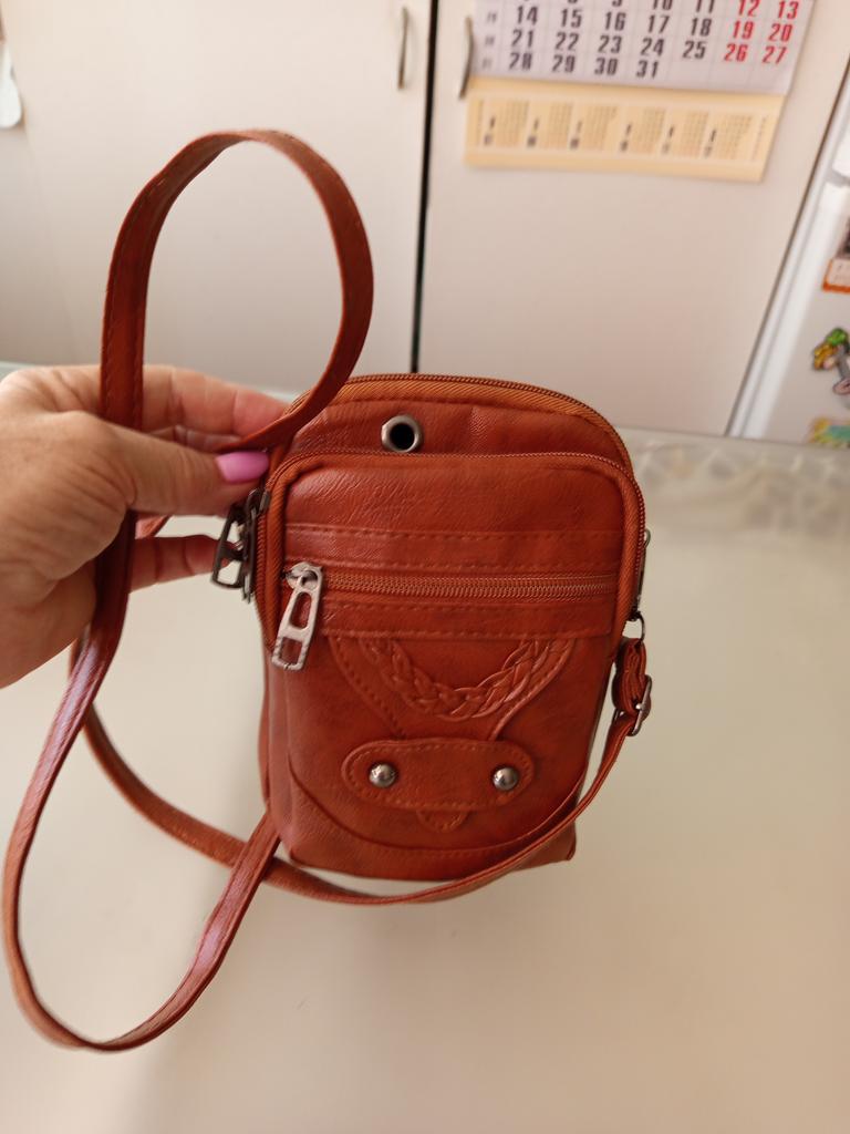 Excellent handbag, pleasant color, soft, everything fits - phone, small wallet, and keys. Recommend
