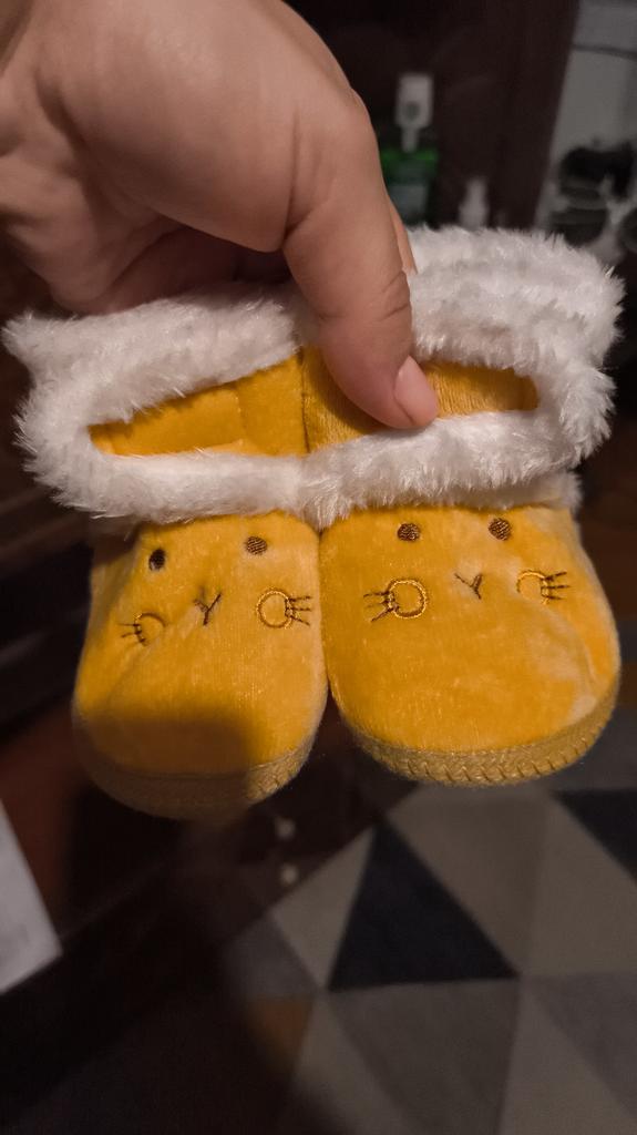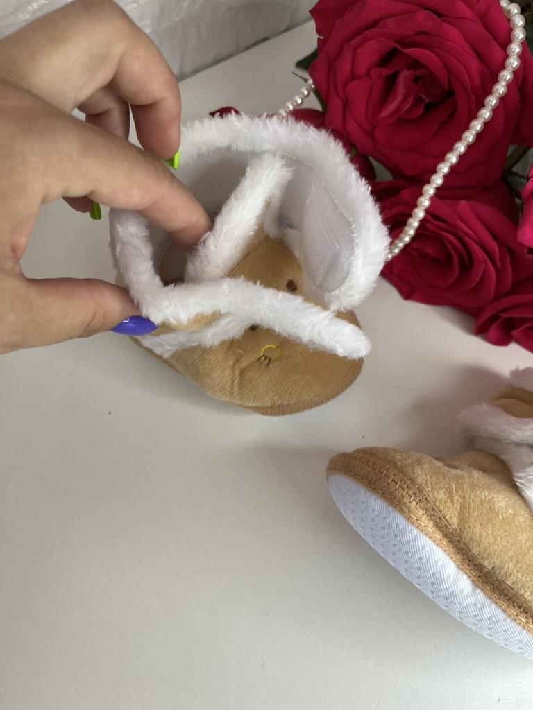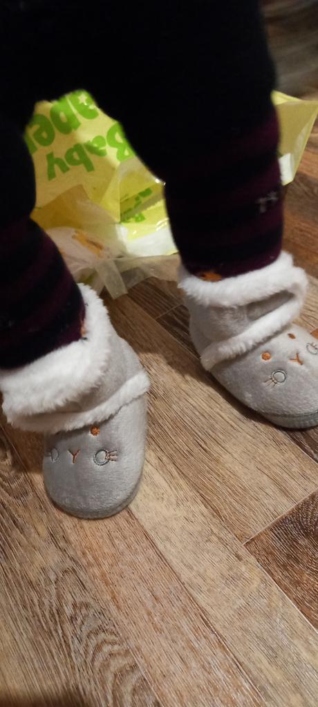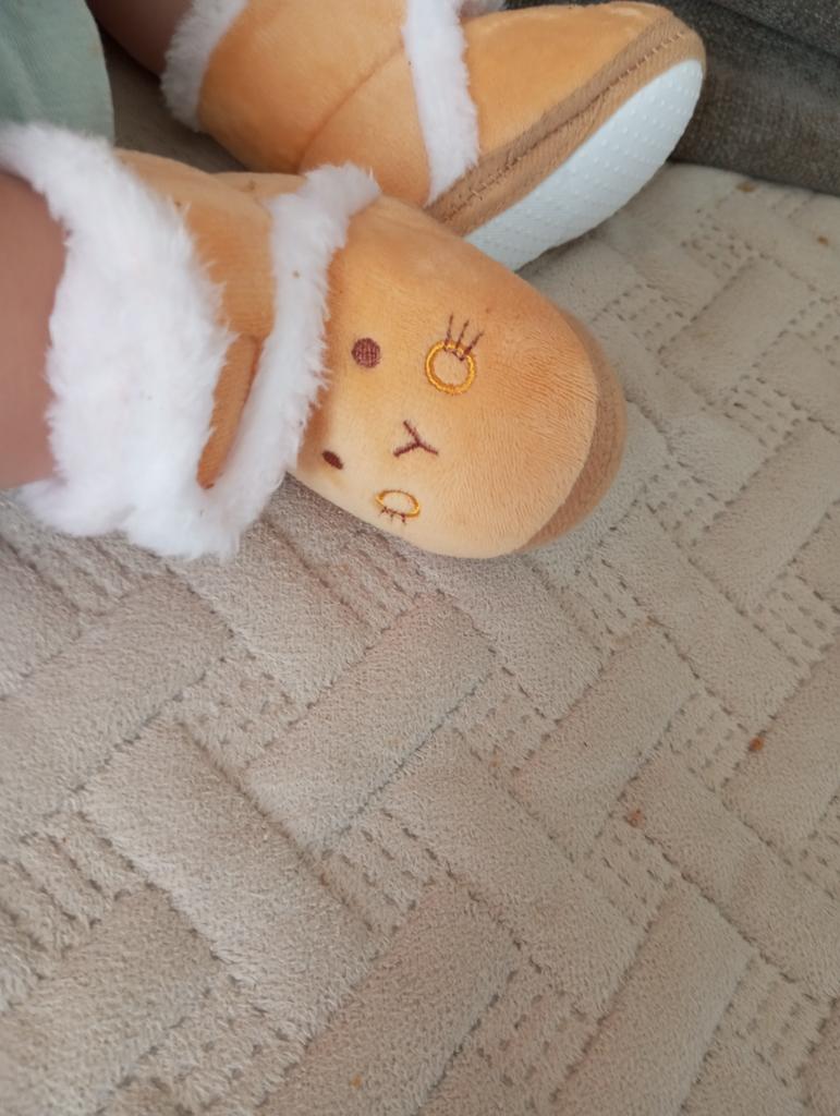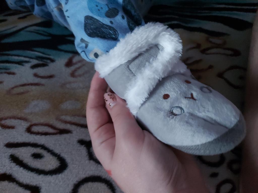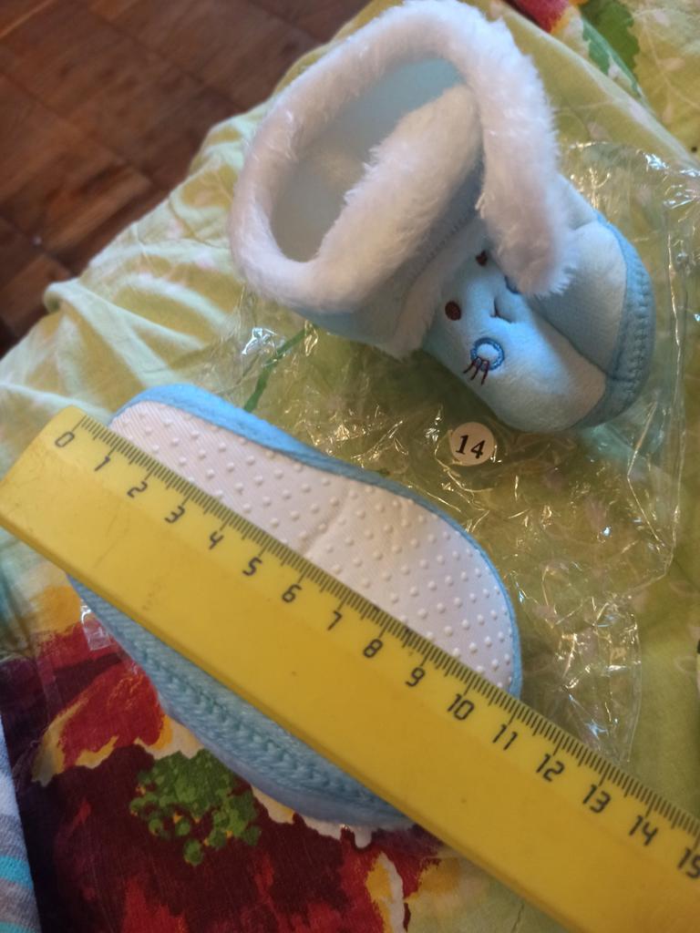 I took 14, we are 1 year and 2 months old, 11.5 cm foot, just right, the Velcro is just a bit weak, but they are beautiful and warm, perfect for running around the house, they don’t slip.