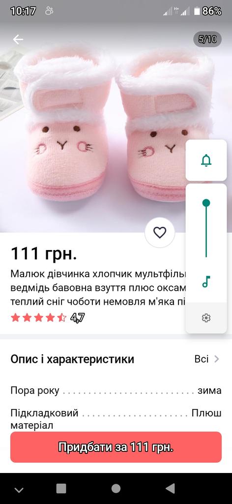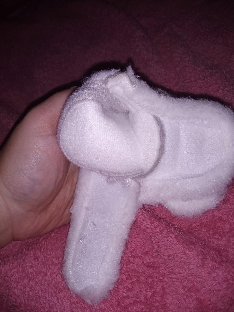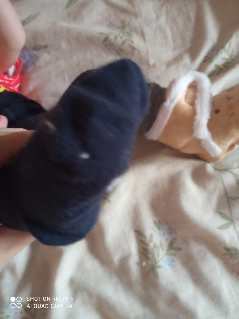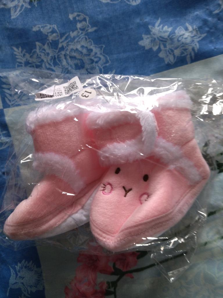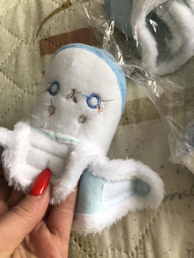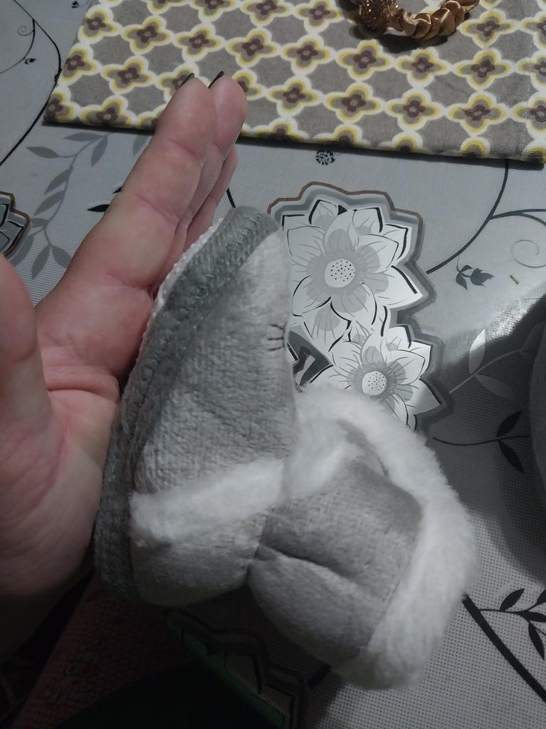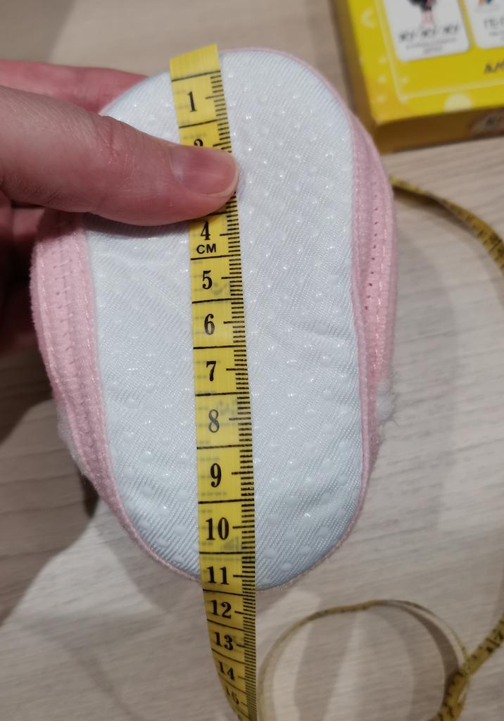 The boots are lovely. Soft, fastened with Velcro. An elastic band is sewn inside above the heel so that it does not slip when moving your legs. The sole is thin, with anti-slip pimples. They haven’t measured it yet, they were just born.