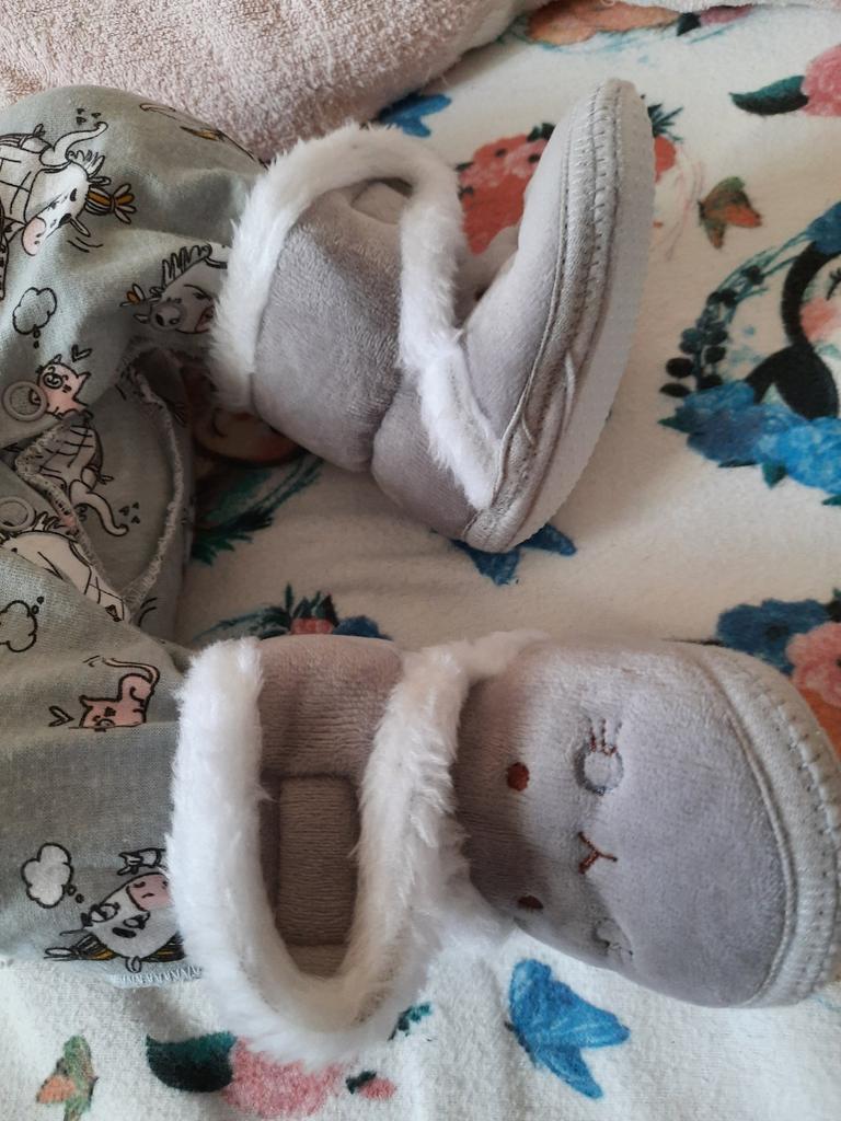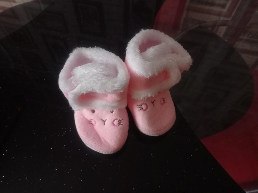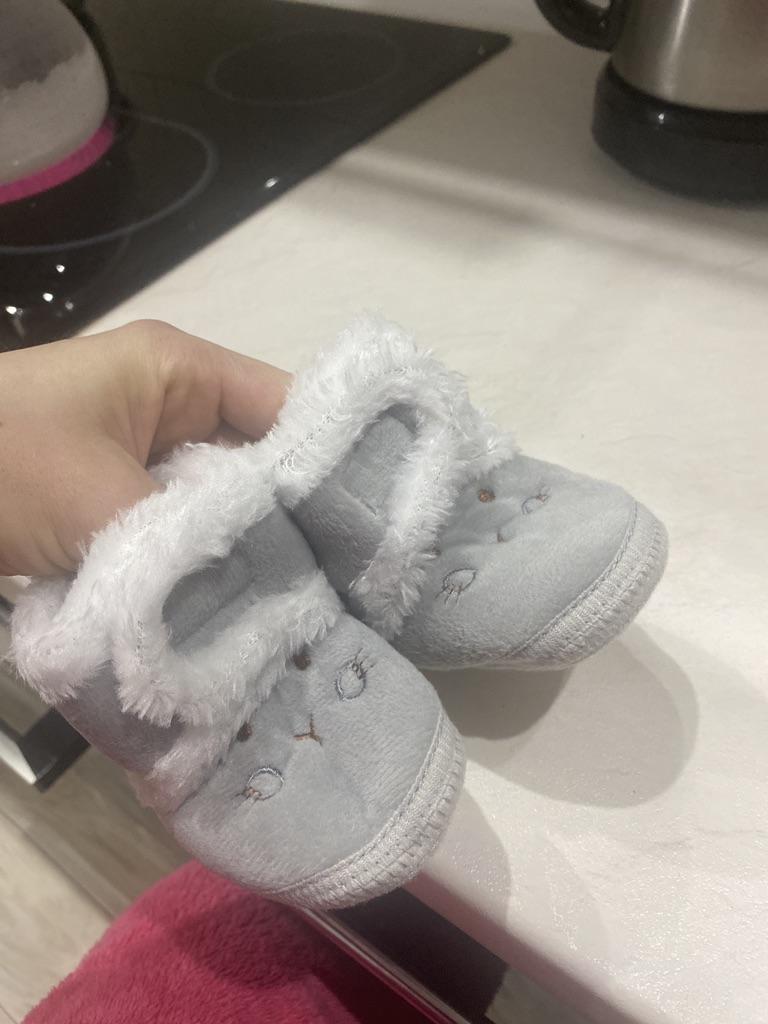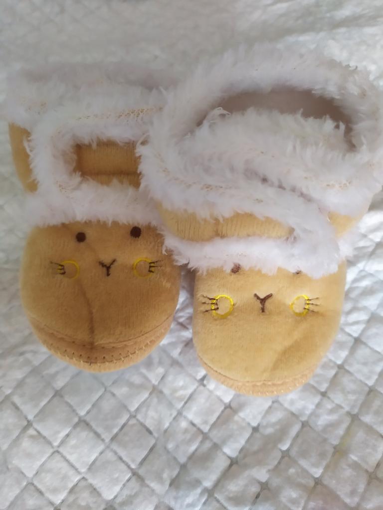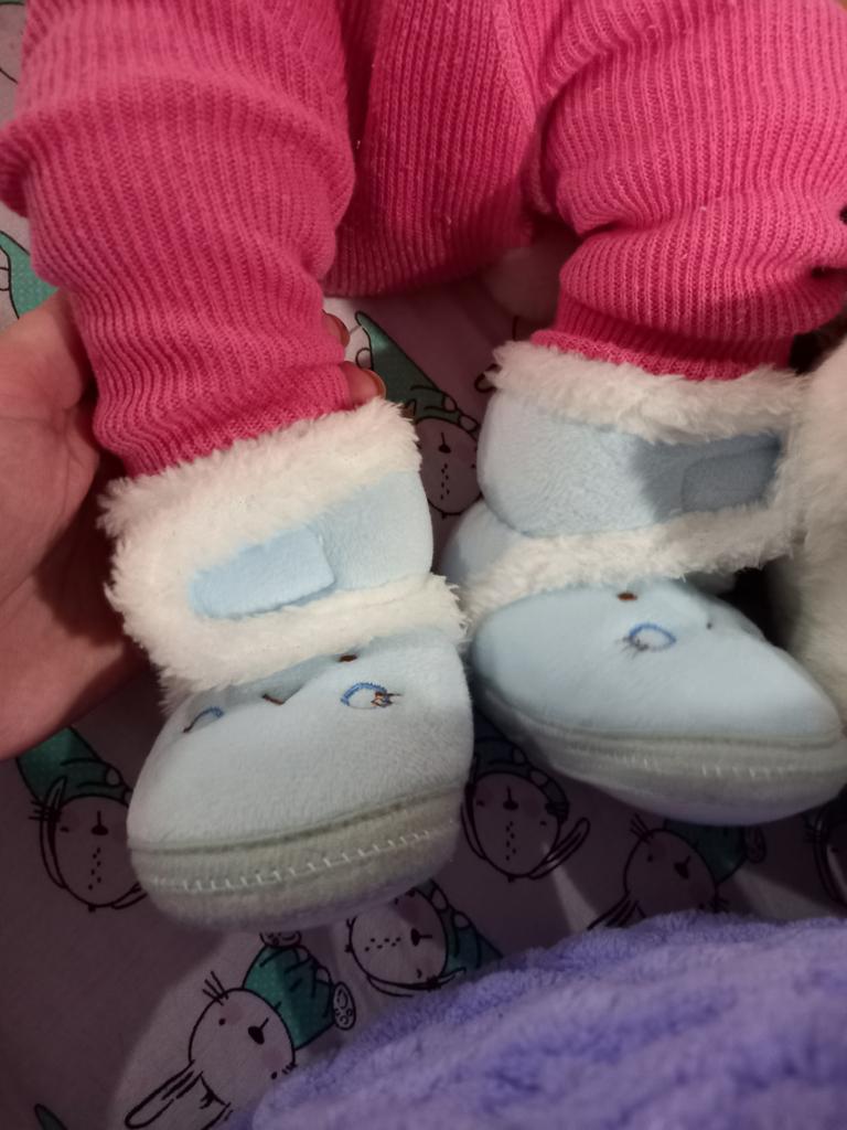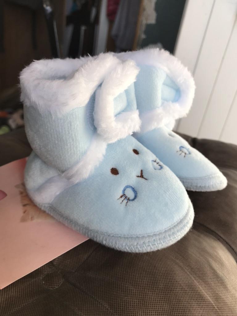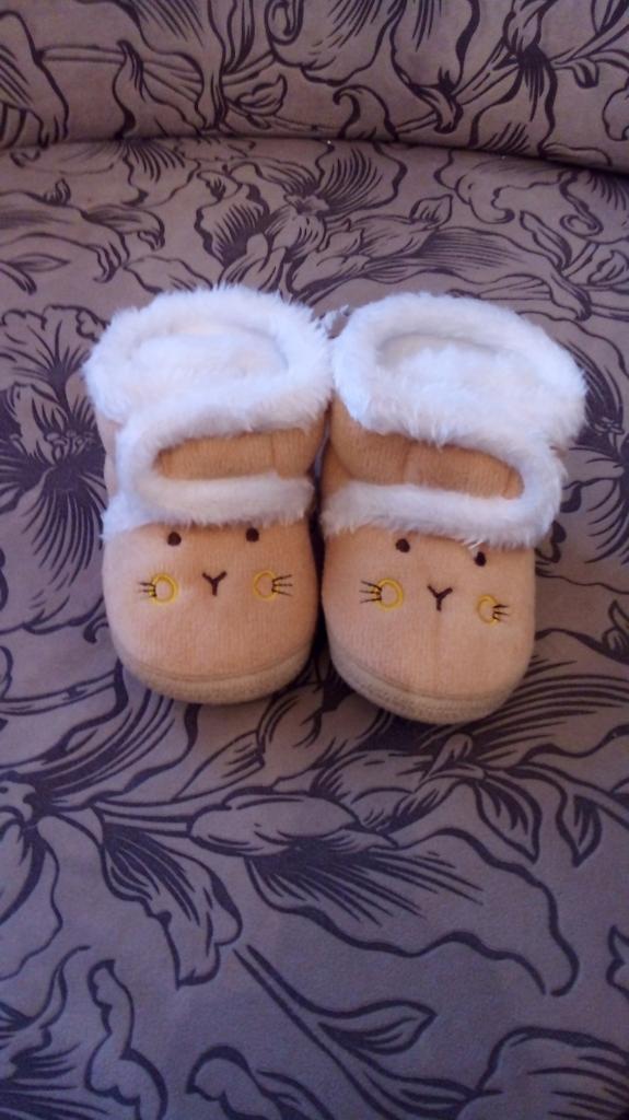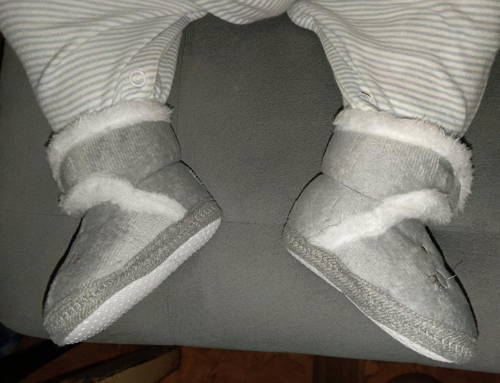 Lovely soft booties. Our first shoes