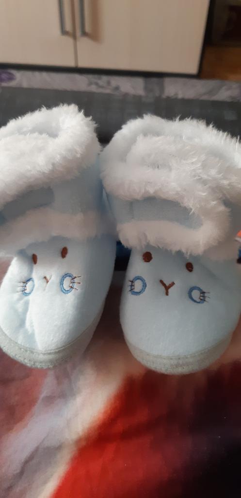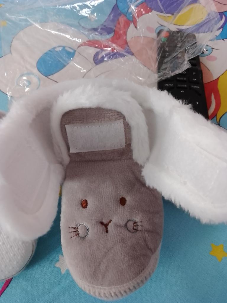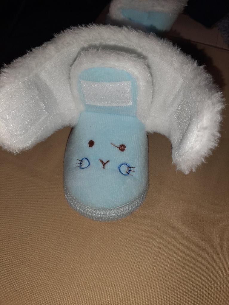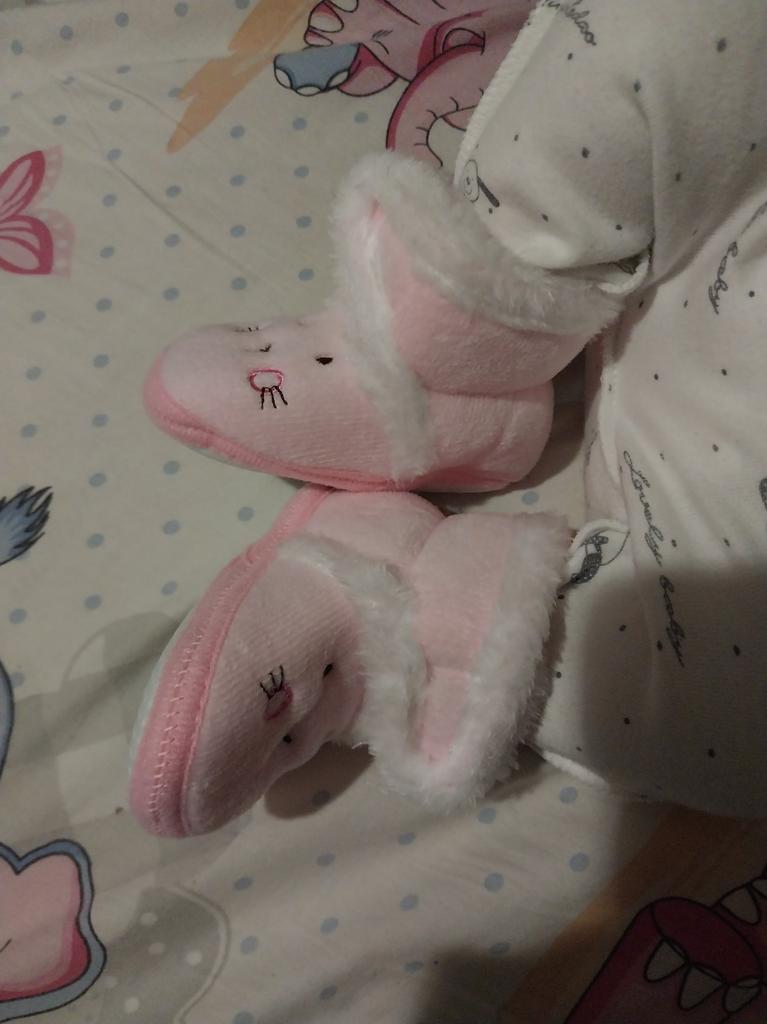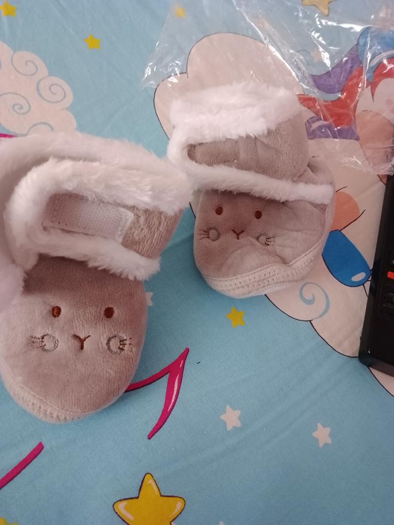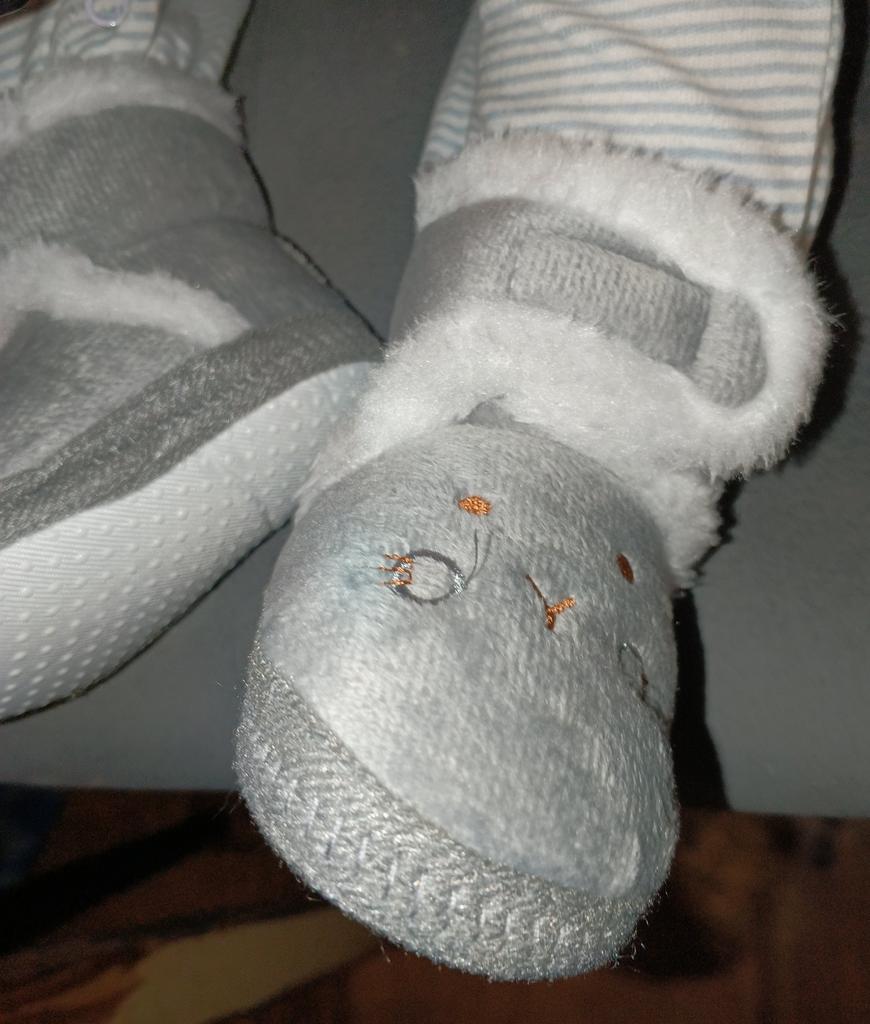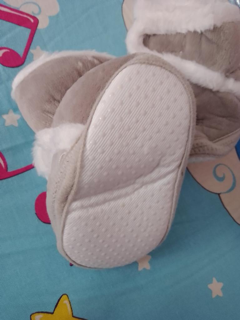 Pretty soft boots for autumn-spring, with Velcro on top of each other, an elastic band on the heel at the back. The sole is thin rubber with anti-slip points. I hope the kid appreciates it!