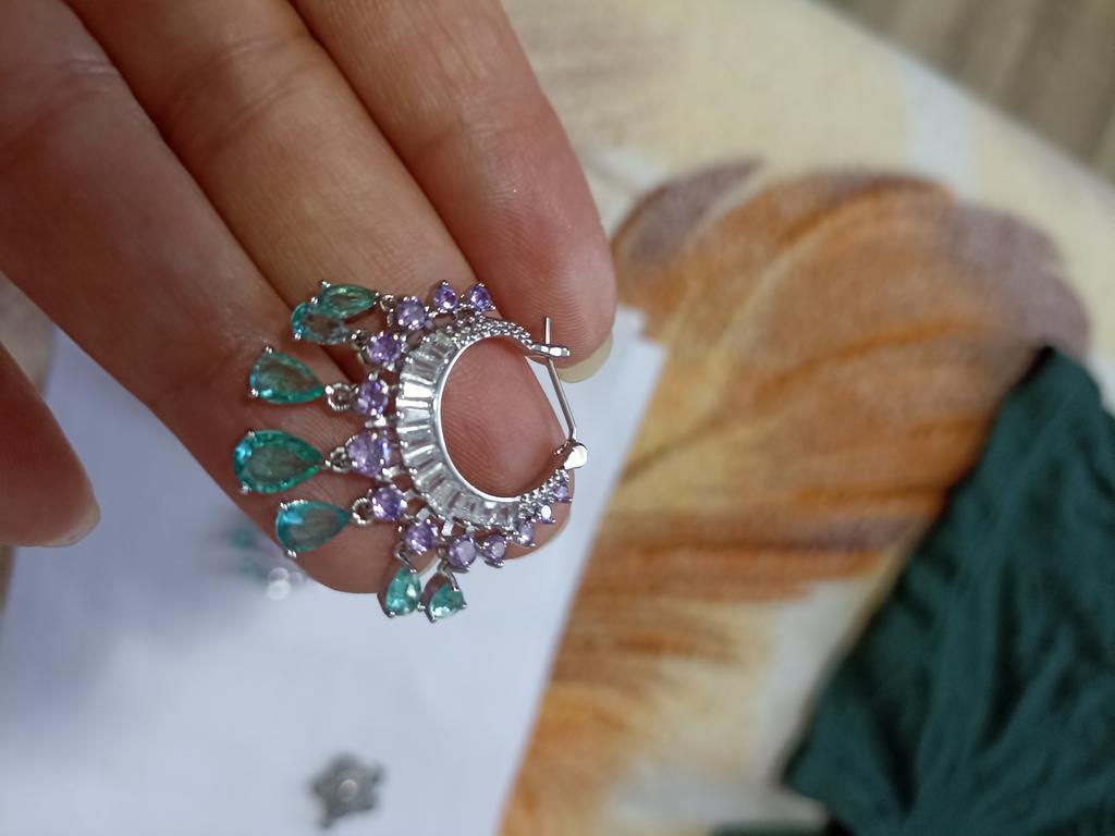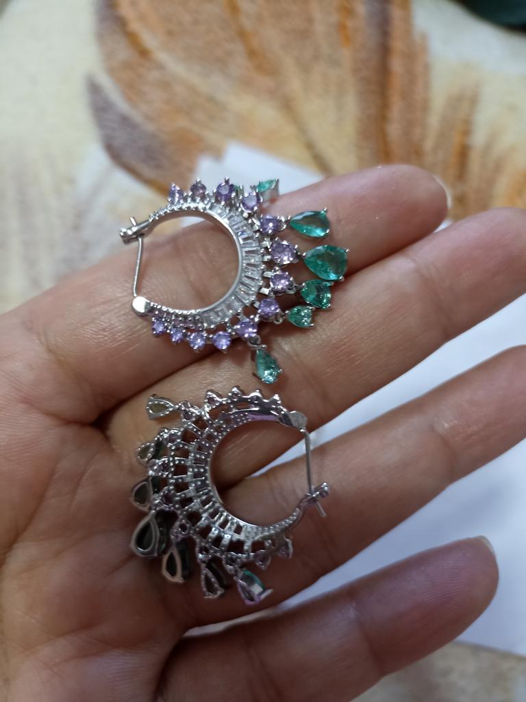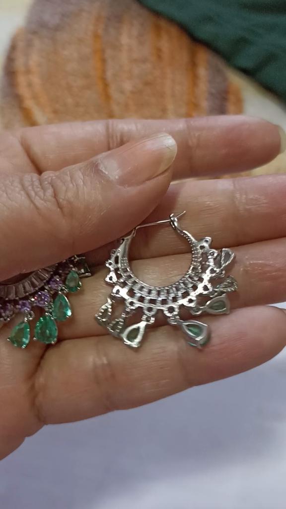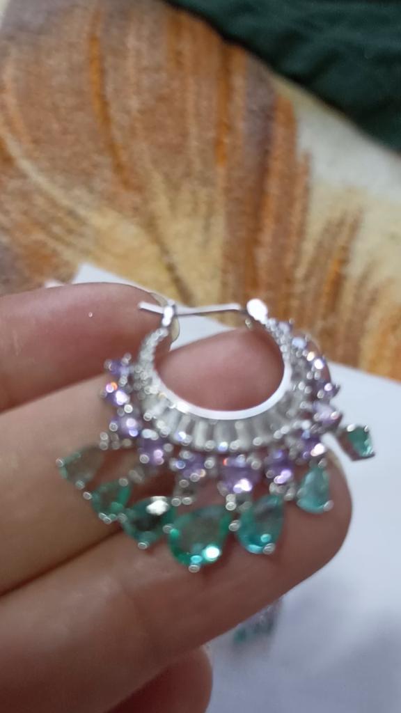 WWJ Big Round Water Drop Zircon Tassel Hoop Earrings