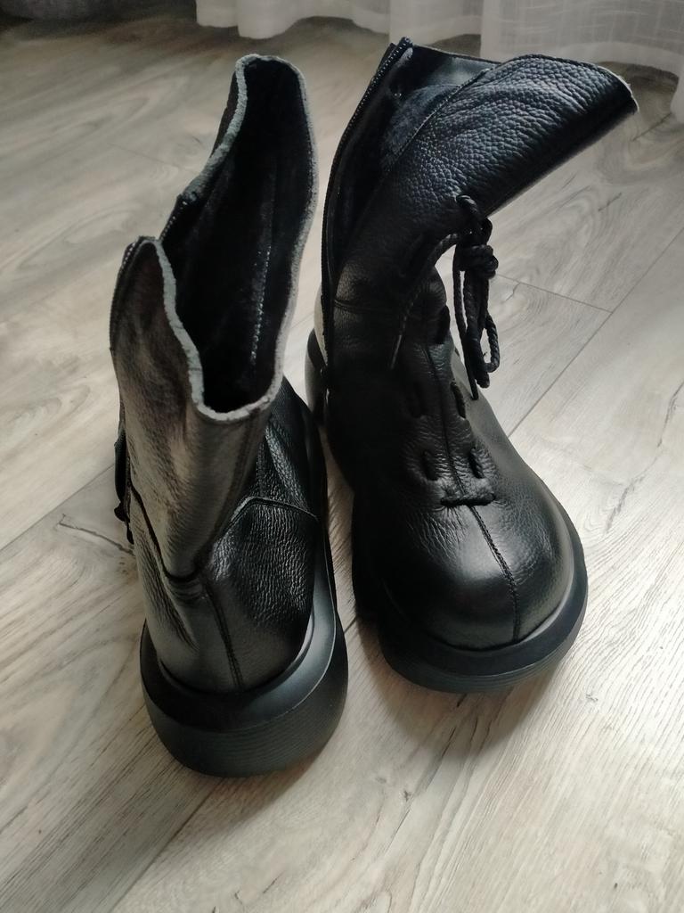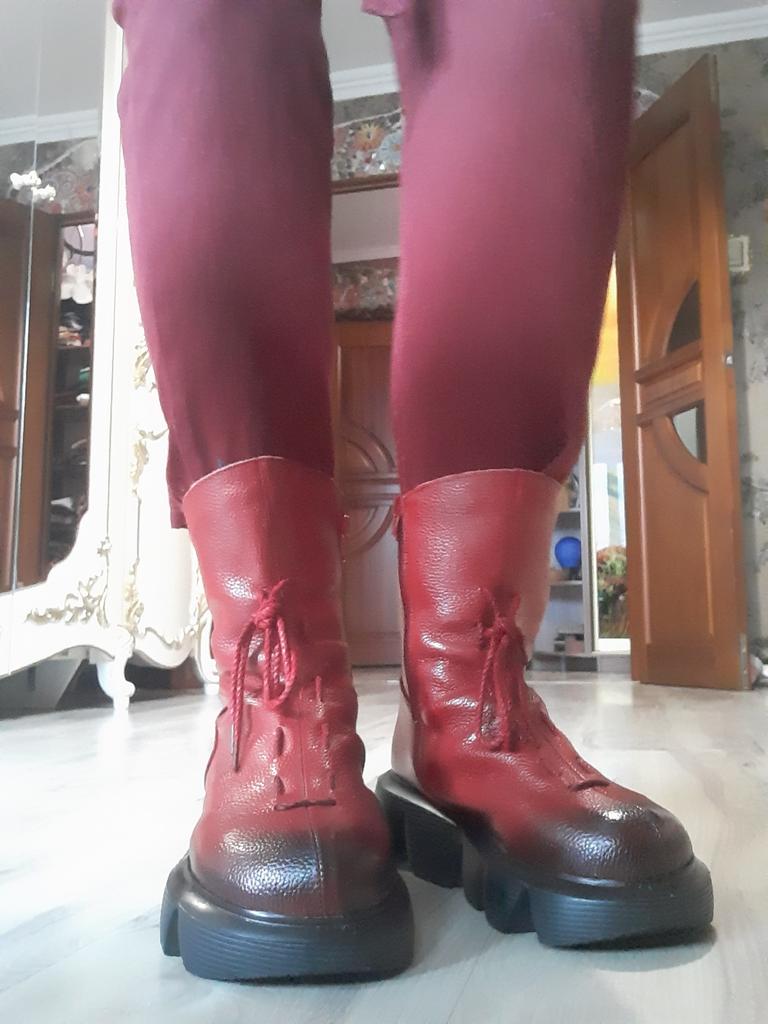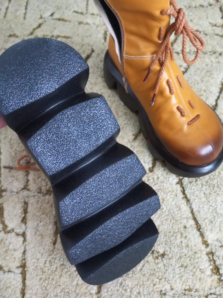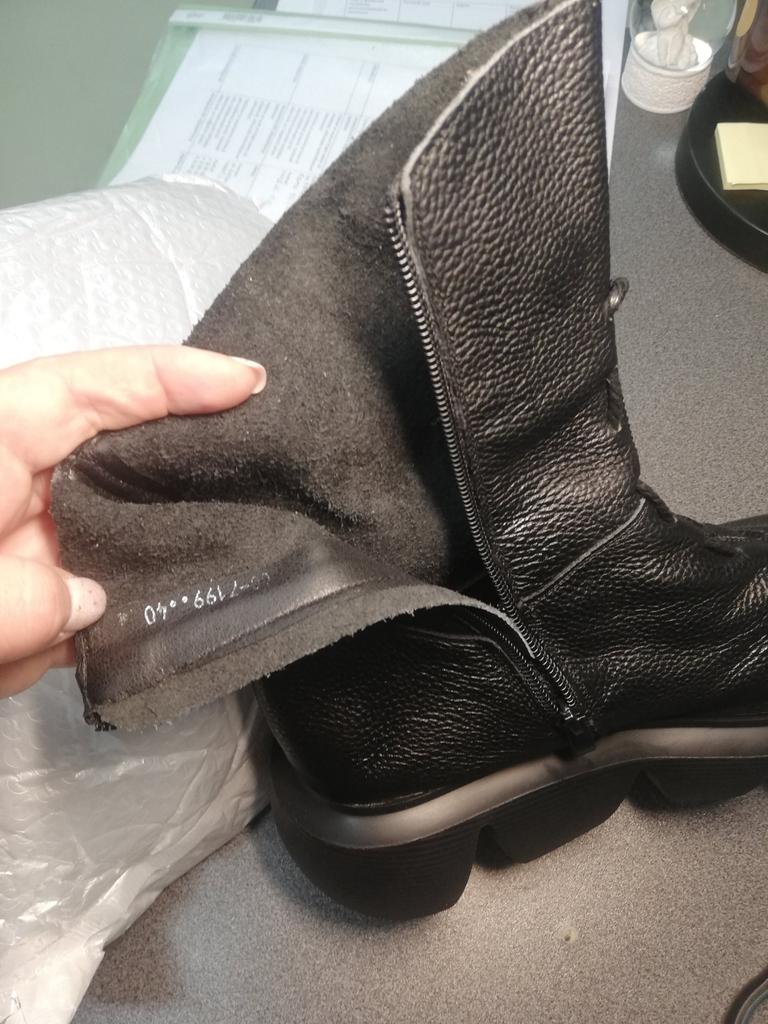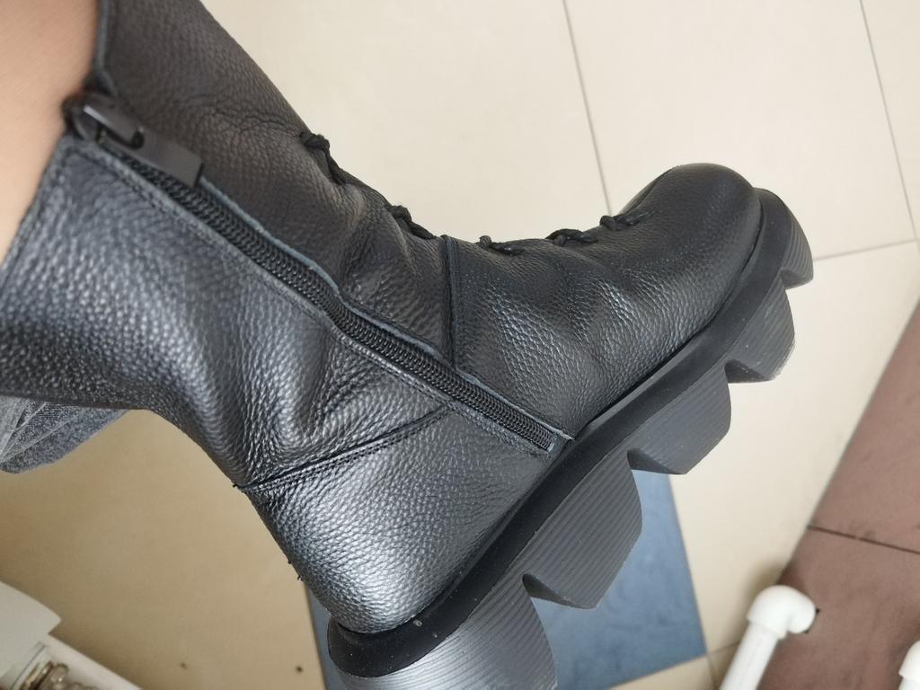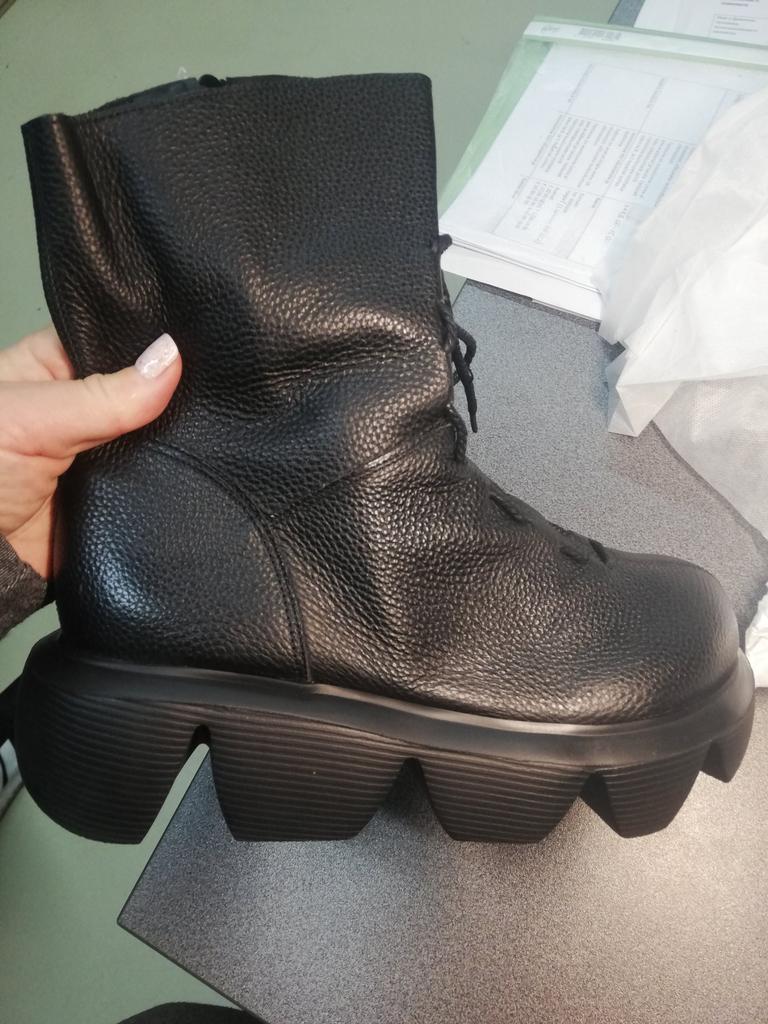 Boots with high soles, beautiful, genuine leather, no lining, i.e. The skin is clean, they run small, although my wide ones are 38.5, I ordered 40 and they fit me right. Looks beautiful on the leg