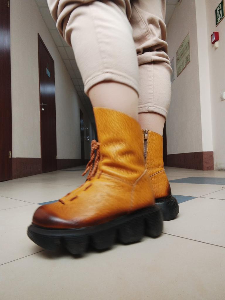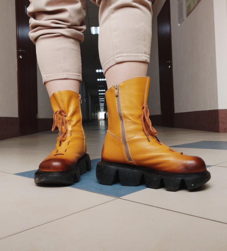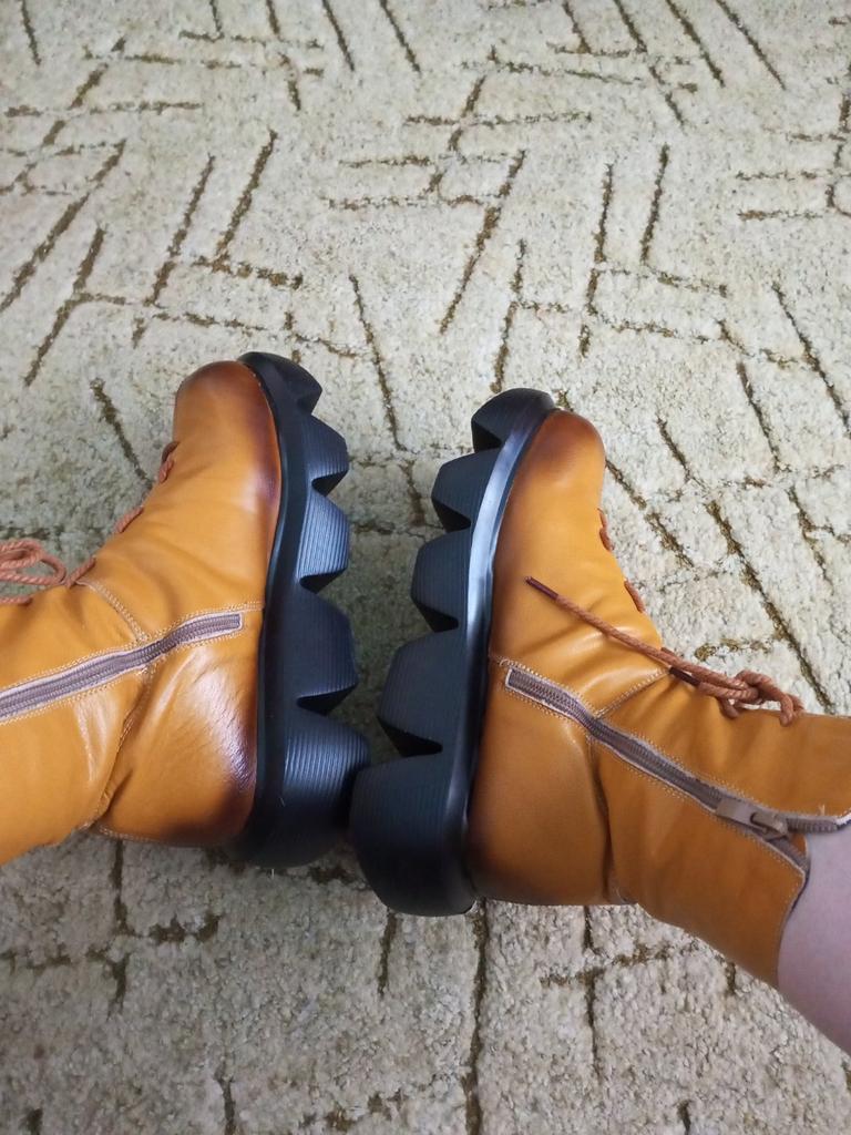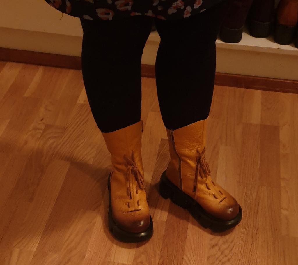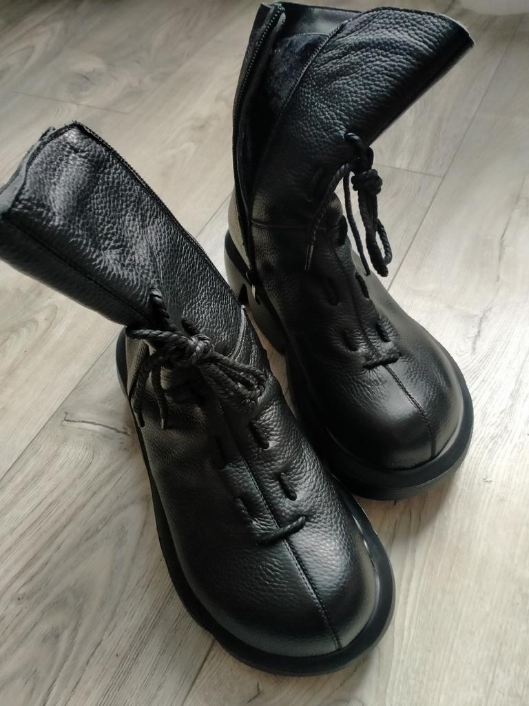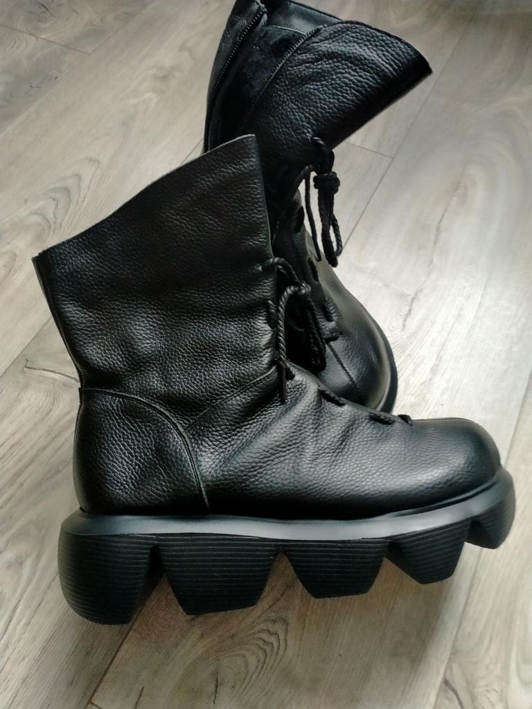 Boots with high soles, beautiful, genuine leather, no lining, i.e. The skin is clean, they run small, although my wide ones are 38.5, I ordered 40 and they fit me right. Looks beautiful on the leg