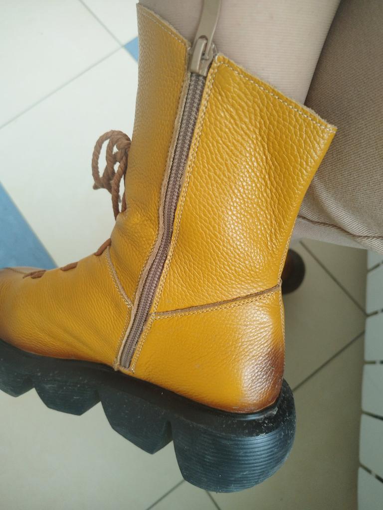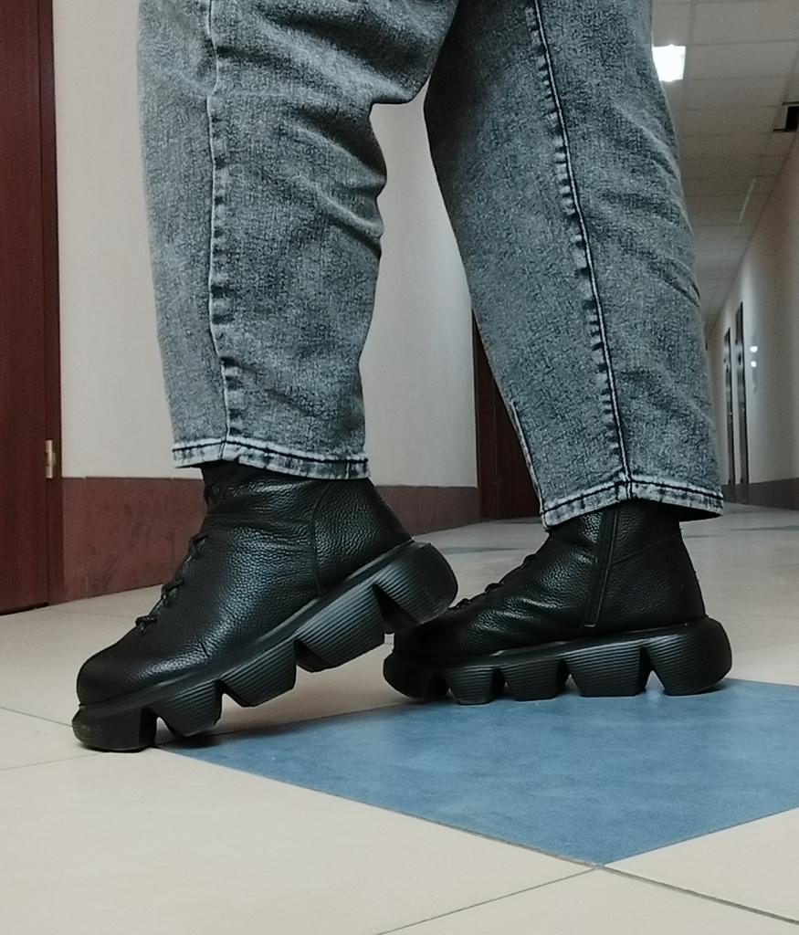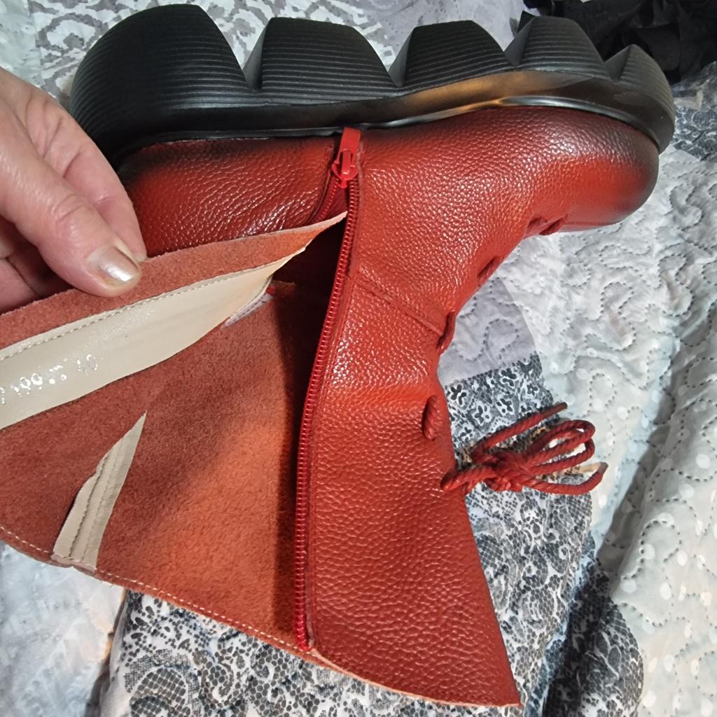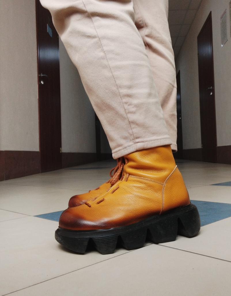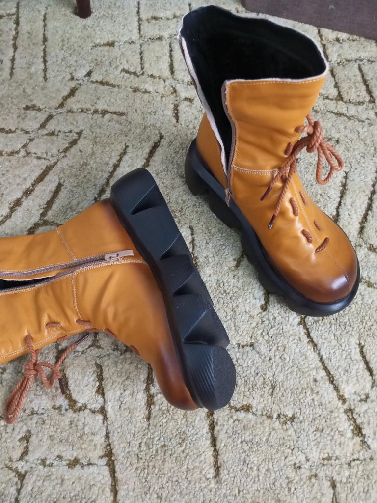 Boots with high soles, beautiful, genuine leather, no lining, i.e. The skin is clean, they run small, although my wide ones are 38.5, I ordered 40 and they fit me right. Looks beautiful on the leg