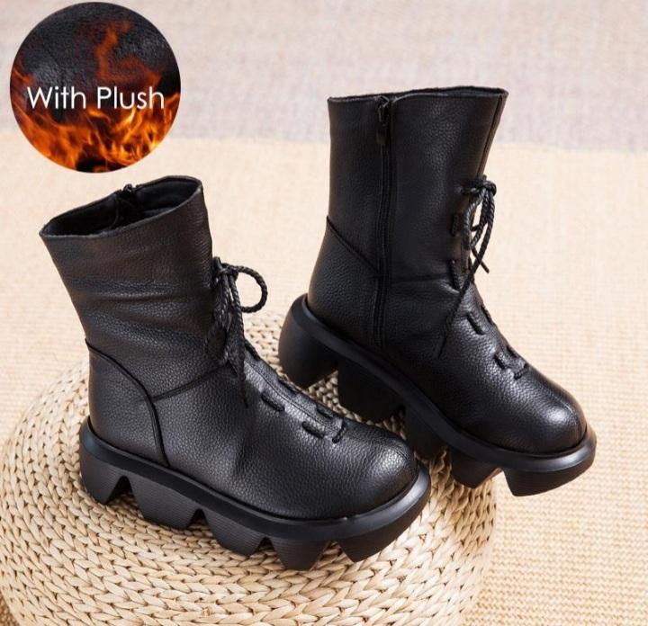Fashion Women Mid Calf Boots Wedges Shoes Female Platform Boots Genuine Leather Winter Shoes Woman 2021 Botas
