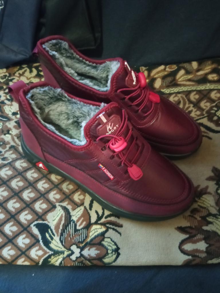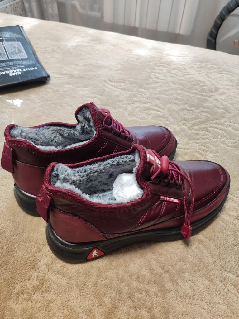 I received some sports boots, a beautiful color. They fit, as they are very soft. Although they are fur-lined, they are not suitable for frosts, they are demi-season. As always, I bought a size larger, I thought they would not fit, they seemed small. The rest later. It is not the season now.