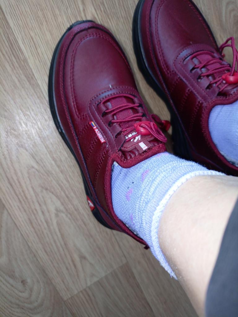 I ordered black, but they received cherry. I'm happy with the shoes, comfortable, soft, but... very, very, very slippery soles. I walk in them like a ballerina.