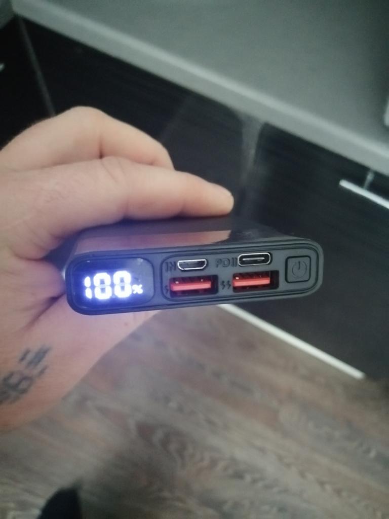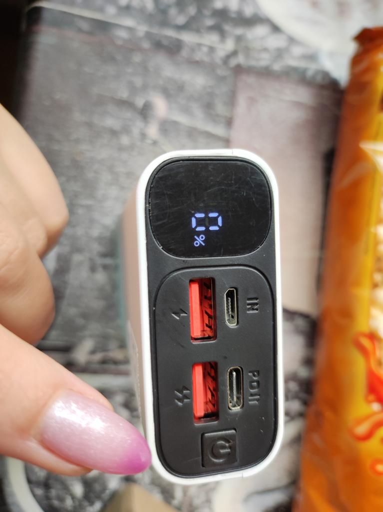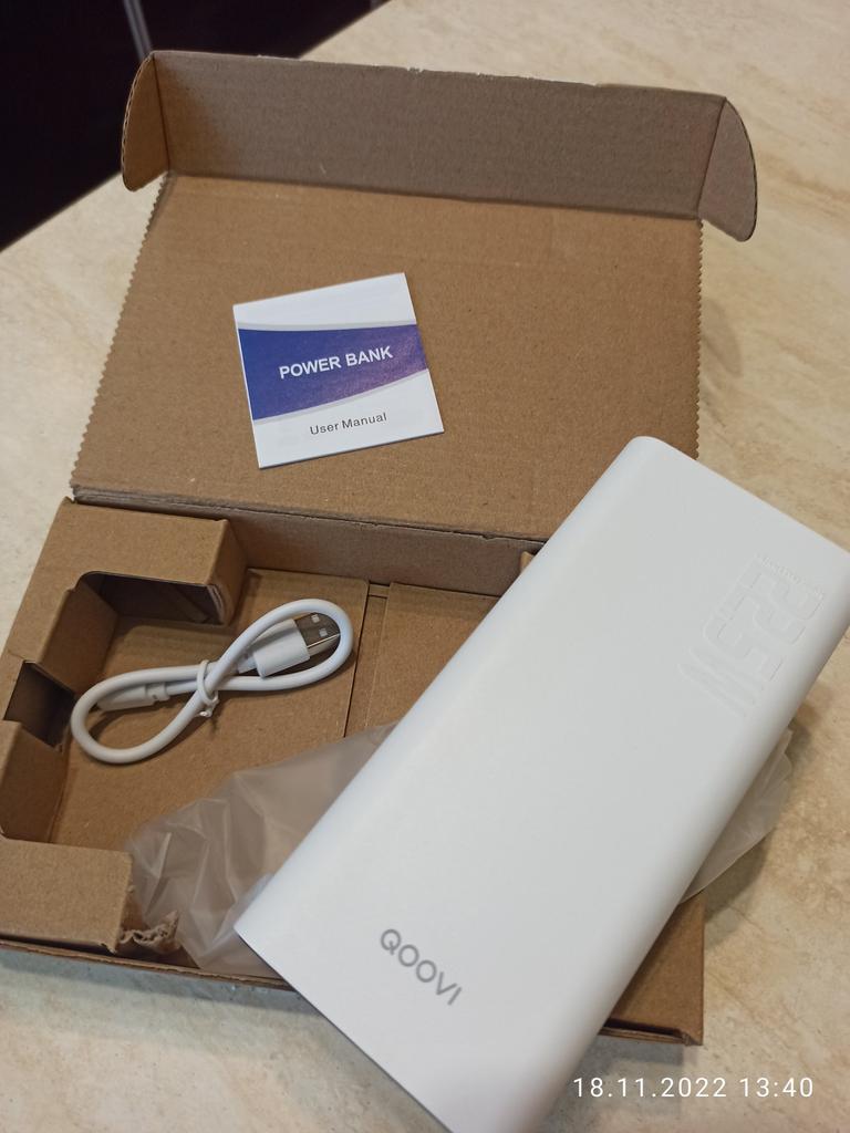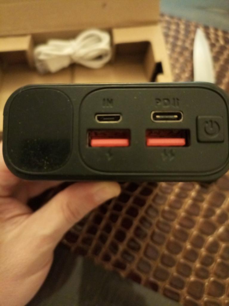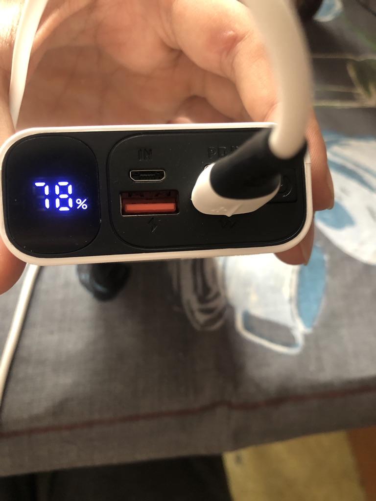 An excellent power bank, it corresponds in terms of charging speed, in terms of mah too. It's frustrating just when it was delivered, its "ideal" appearance would have been destroyed, the film was slightly peeled off (seen in the photo). Comes with a cord that supports fast charging.