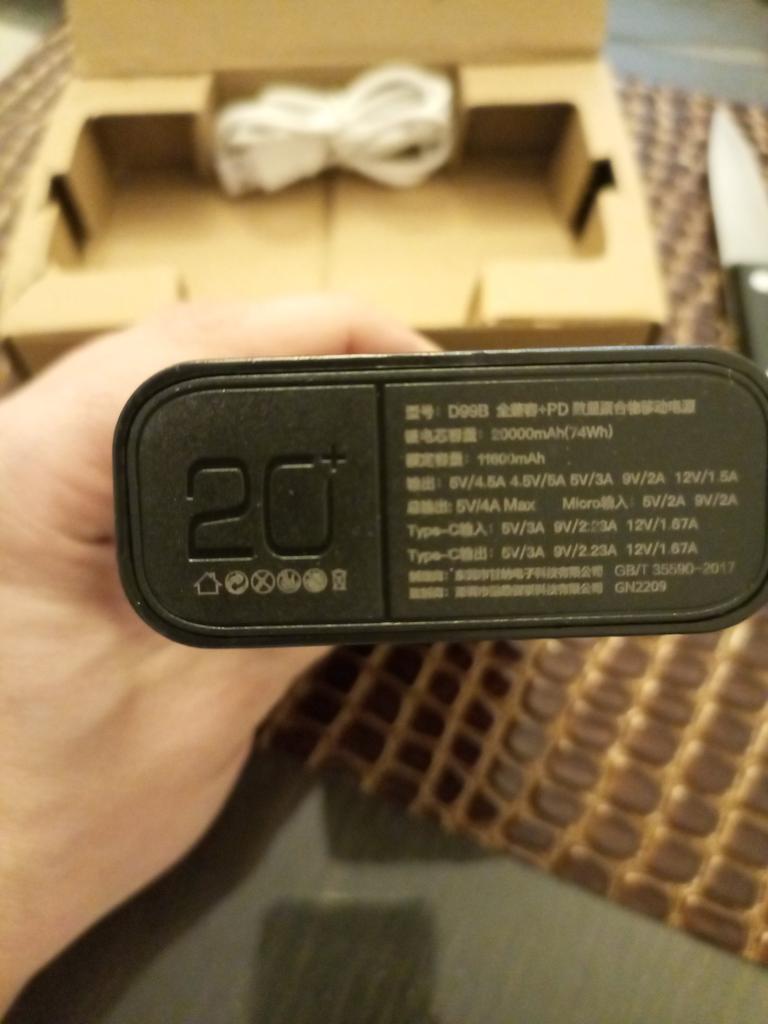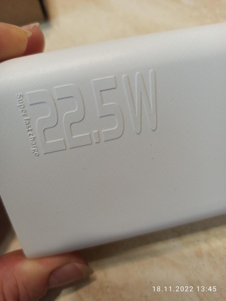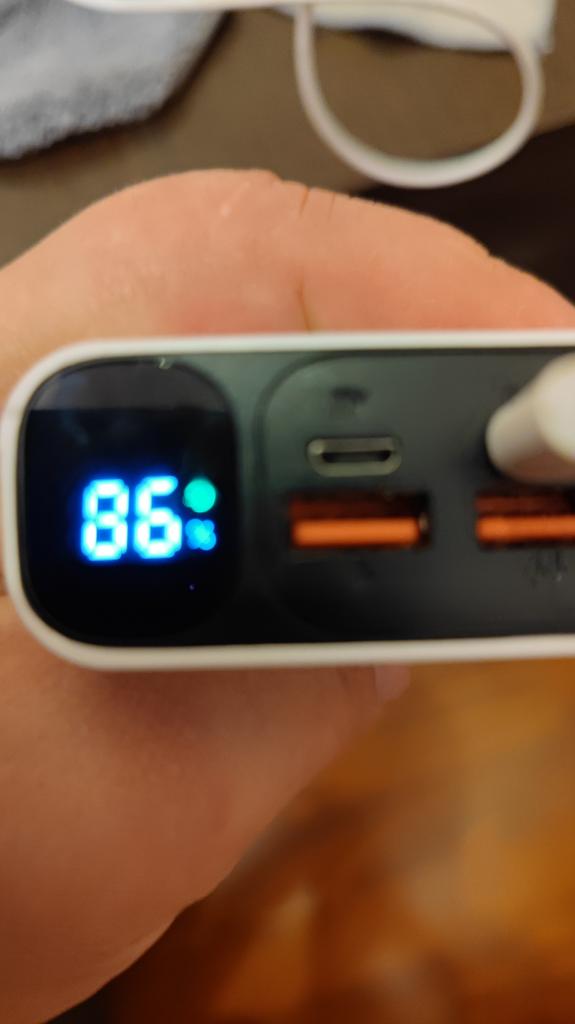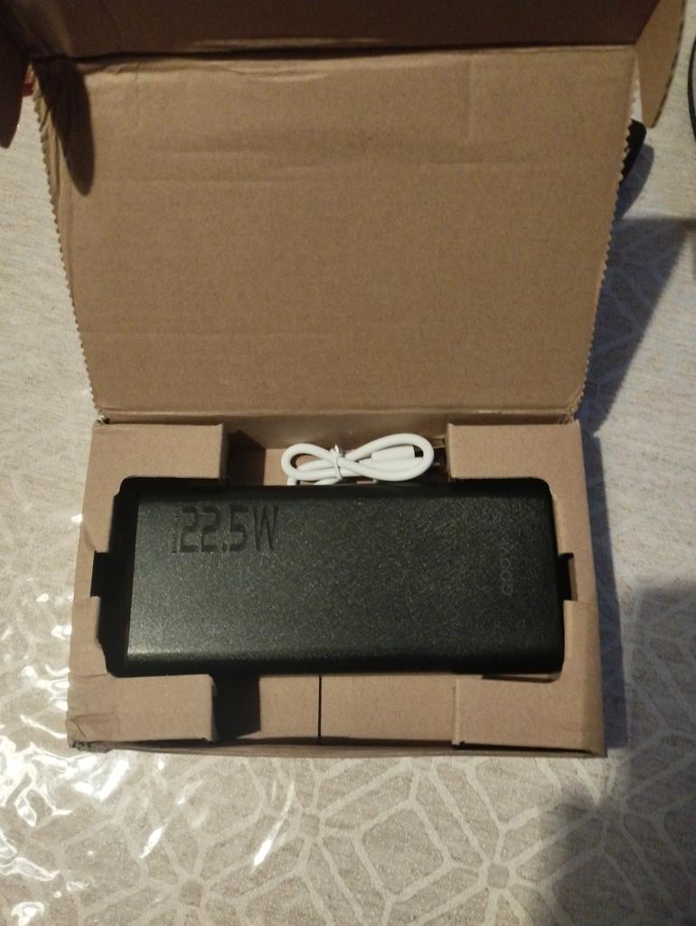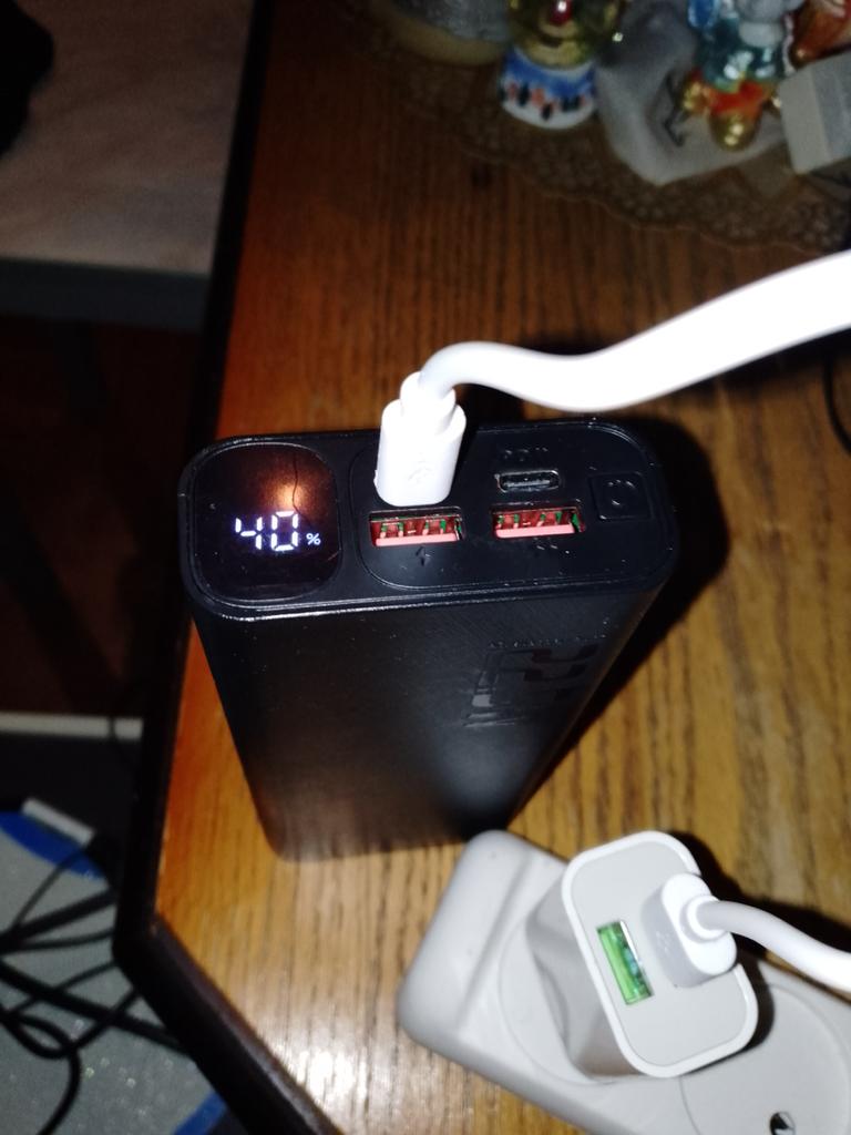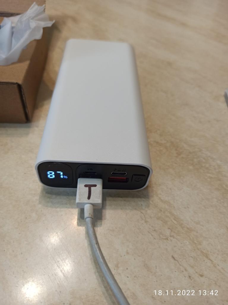 An excellent power bank, it corresponds in terms of charging speed, in terms of mah too. It's frustrating just when it was delivered, its "ideal" appearance would have been destroyed, the film was slightly peeled off (seen in the photo). Comes with a cord that supports fast charging.