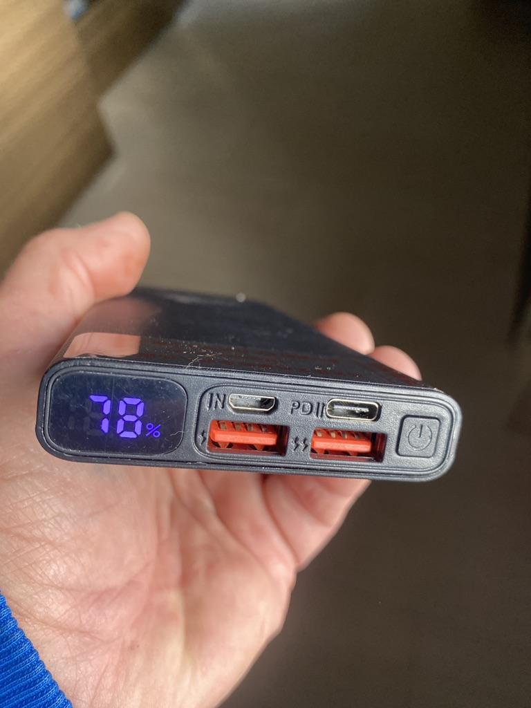Excellent Power bank charged by 85%, pleasant to the touch