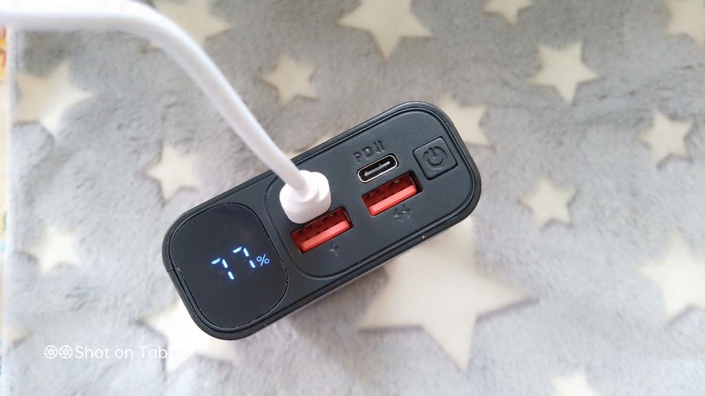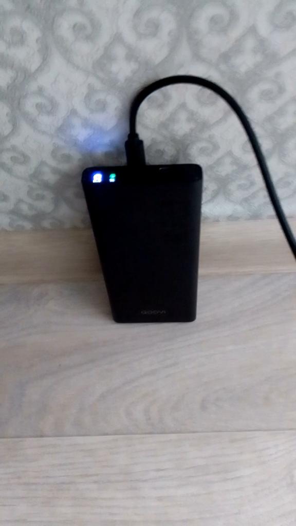 A good solid storage device with an indicator and fast charging. I didn't measure the battery capacity, so I can't say for sure. I charged my smartphone with it three times.