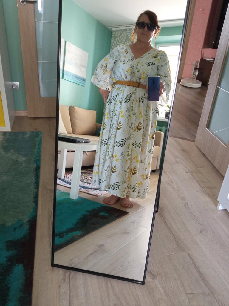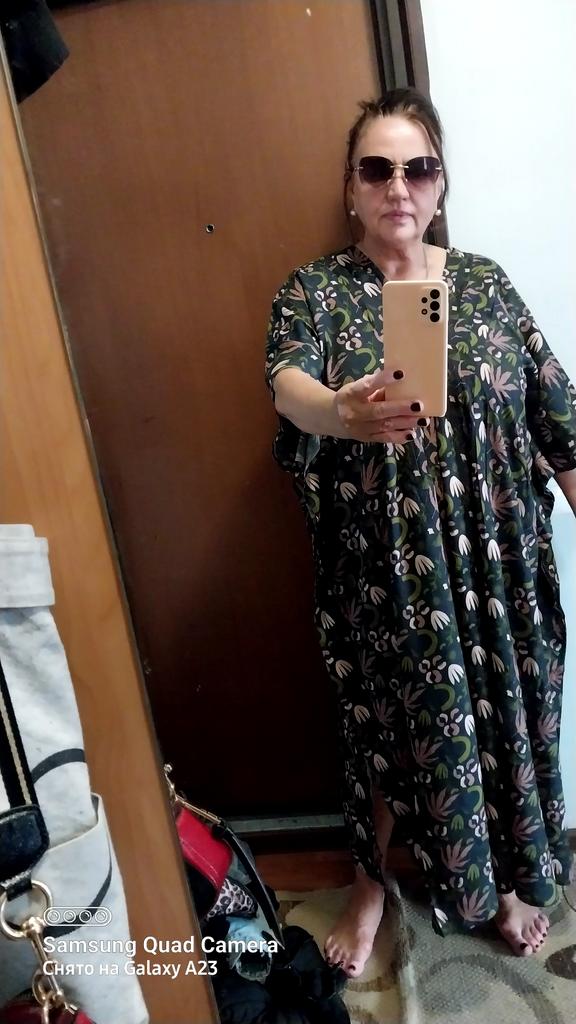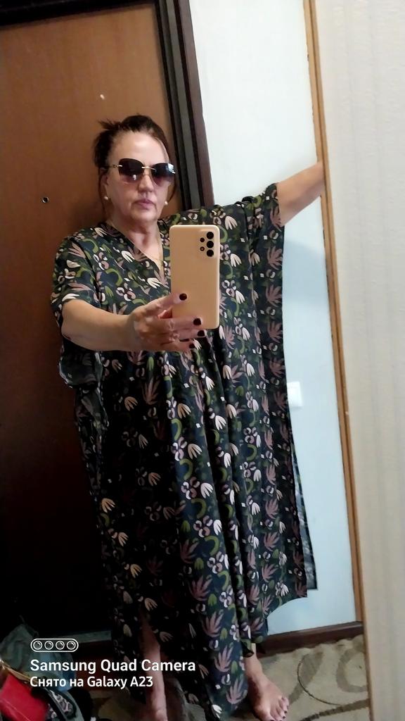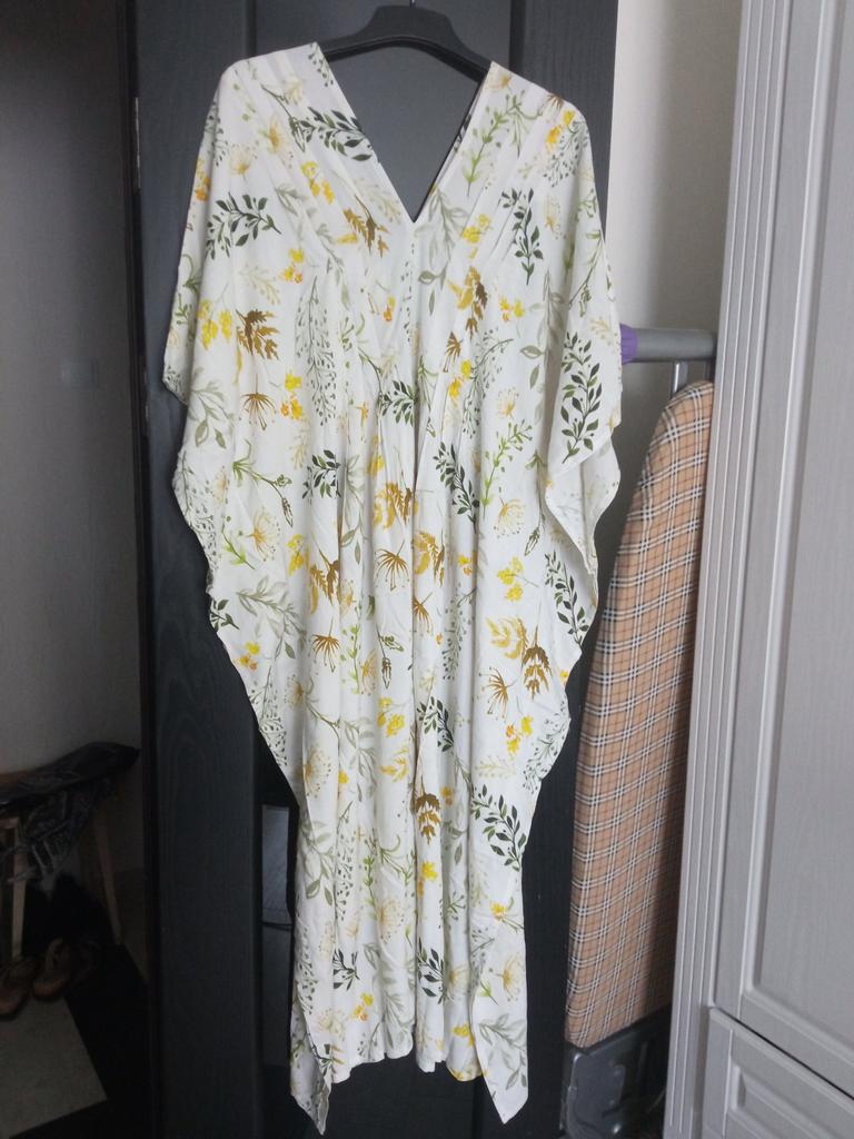 This moomaya kaftan can be worn day into night, as a swimsuit cover-up and long dress at the beach, as well as a sleep dress, or even as a maternity maxi dress. The sidelines are opened, thus making people look gorgeous and sexy. It features all-over prints, v neck, both side slit, long length, long pleated kaftan, pleated detail on neck, straight hem.